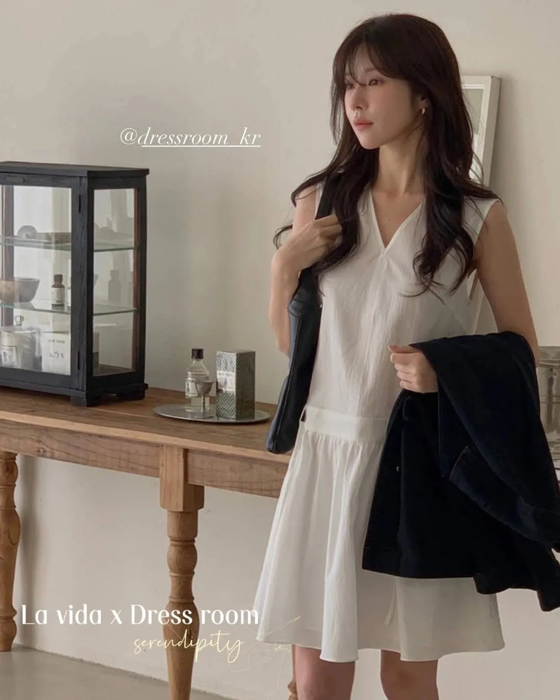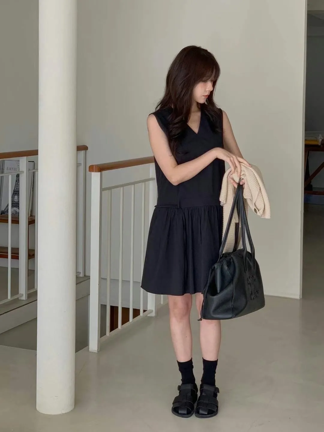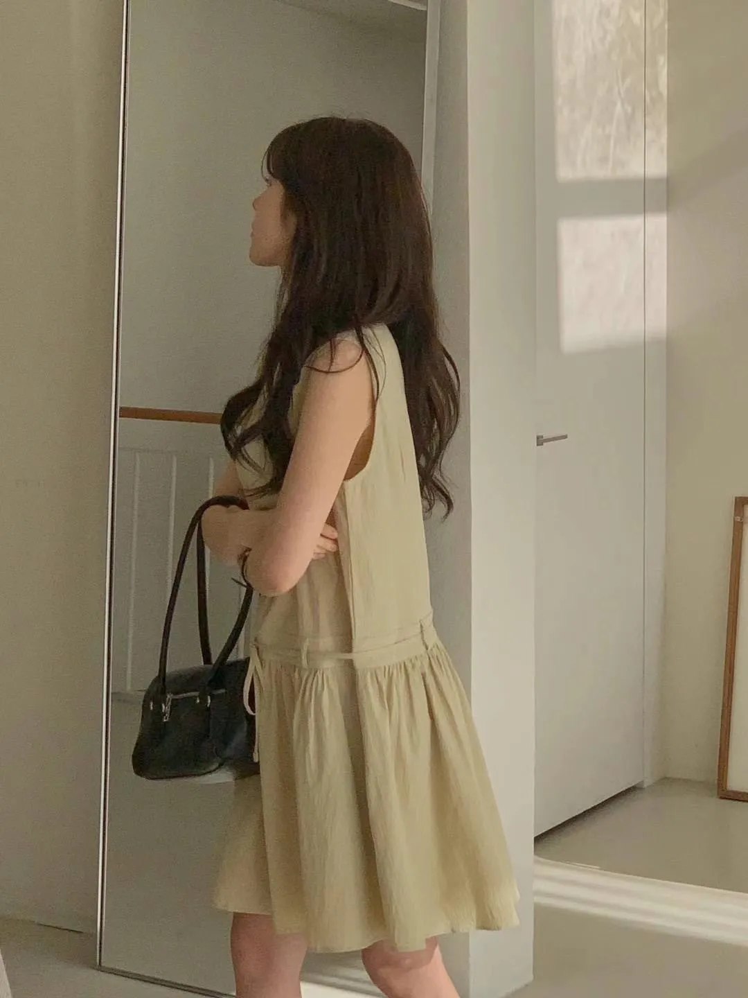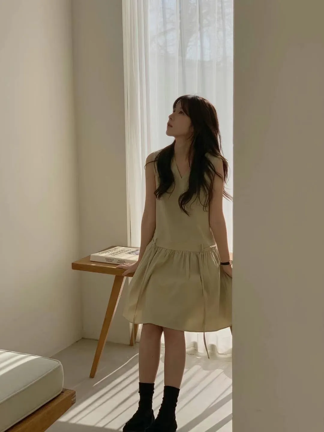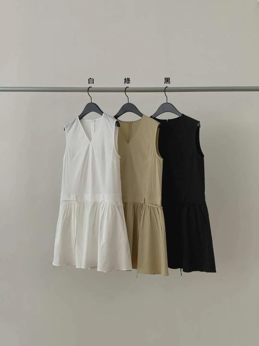 棉+天絲+尼龍+彈力 親膚舒適 V領顯瘦 腰綁帶 Aline裙襬 有口袋
