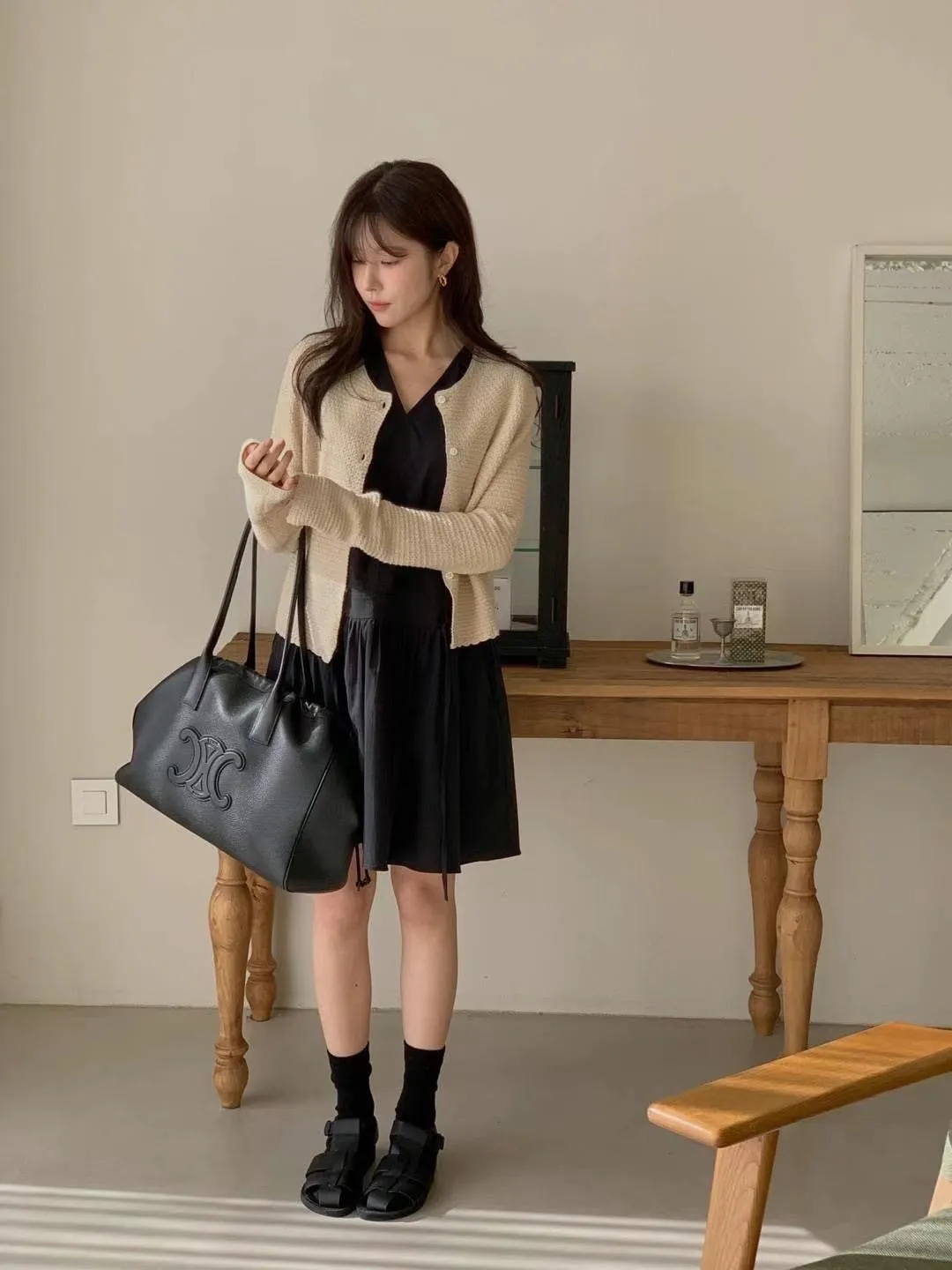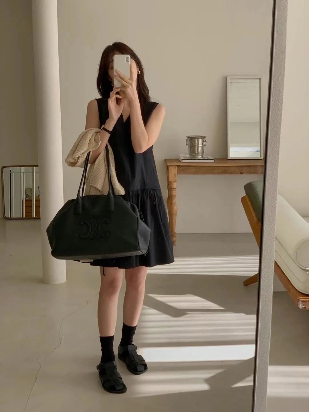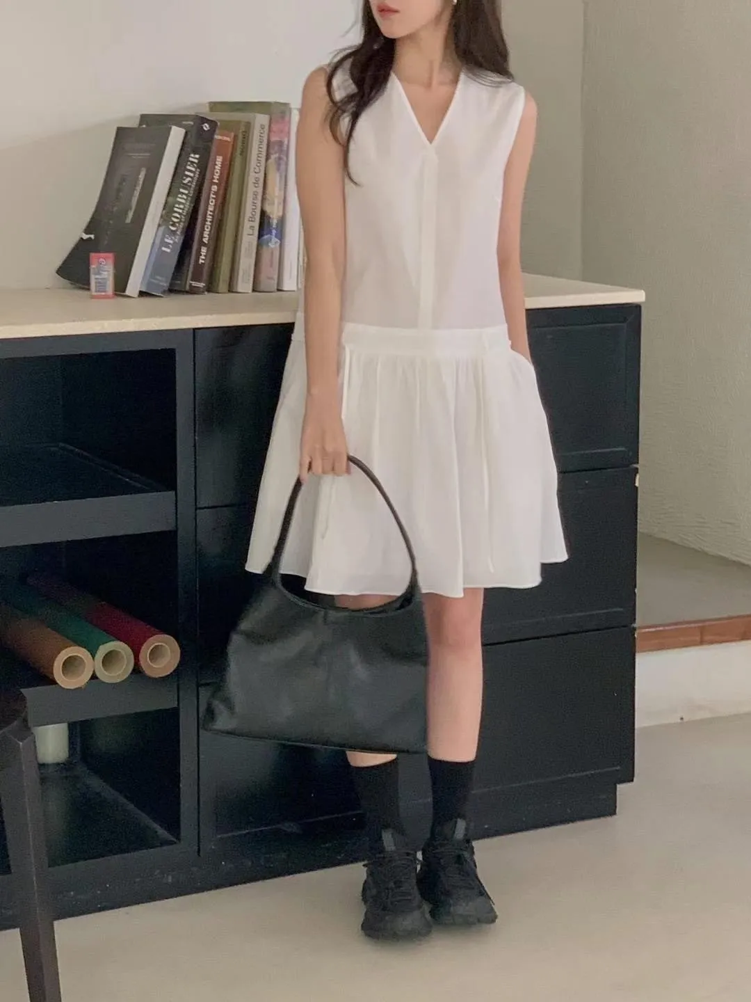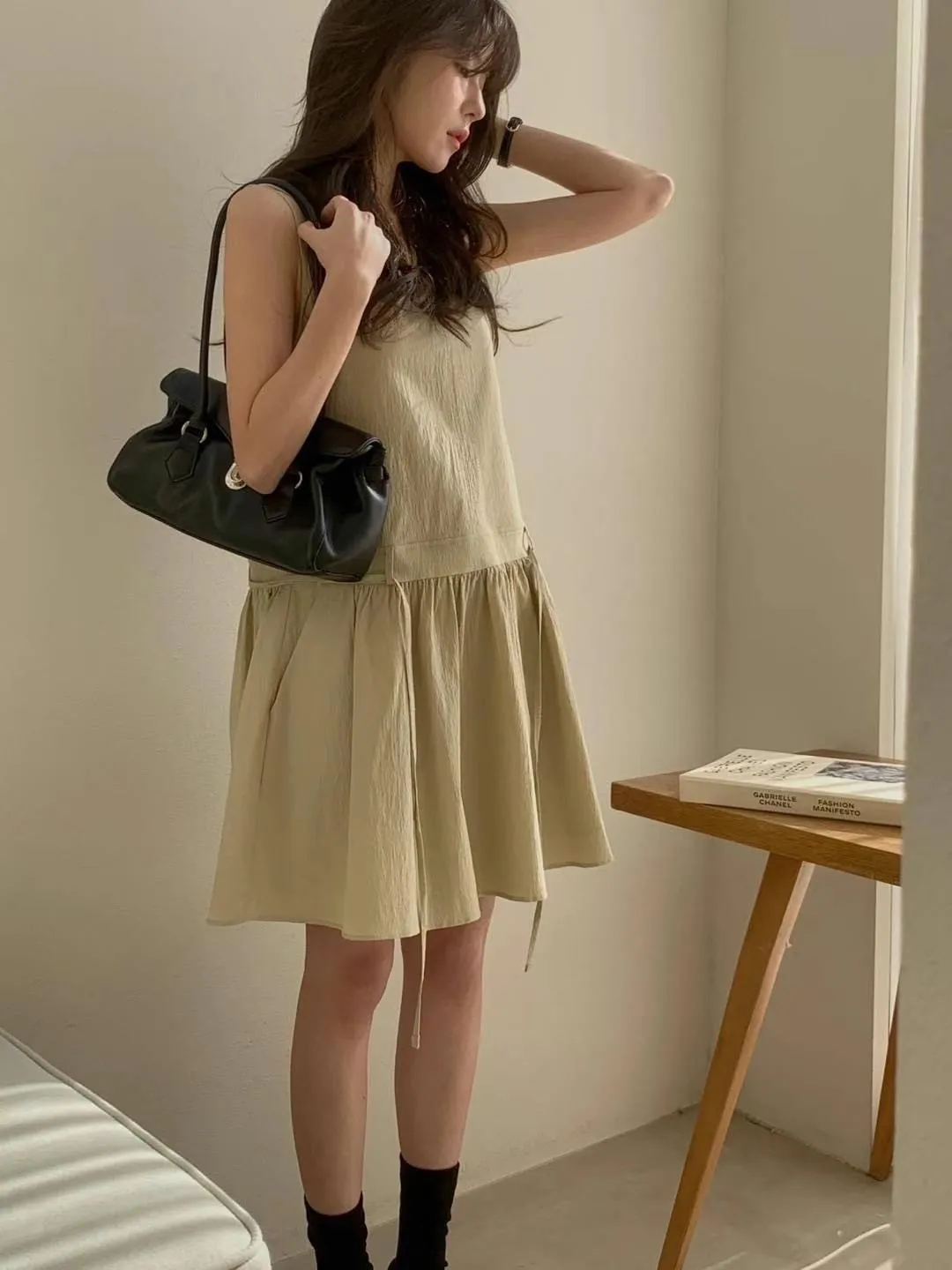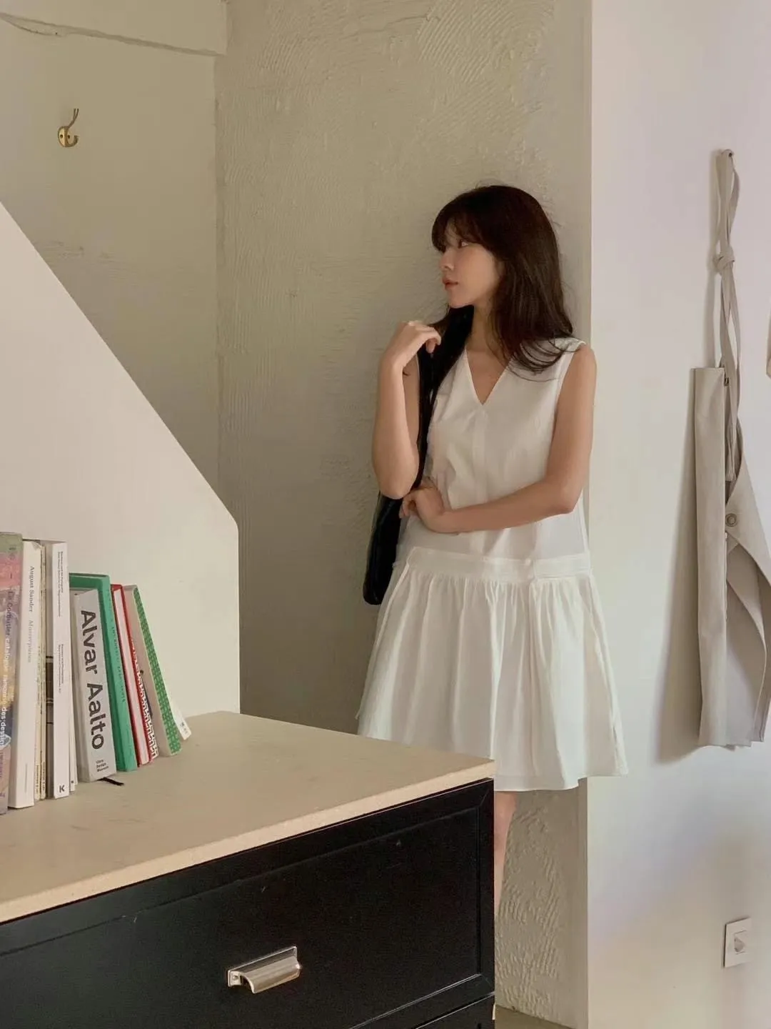 棉+天絲+尼龍+彈力 親膚舒適 V領顯瘦 腰綁帶 Aline裙襬 有口袋