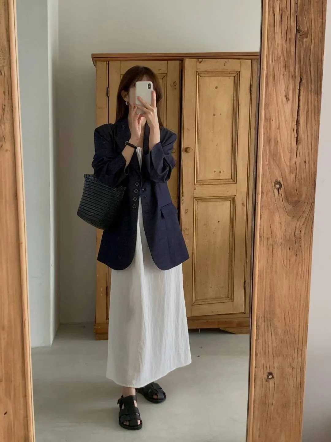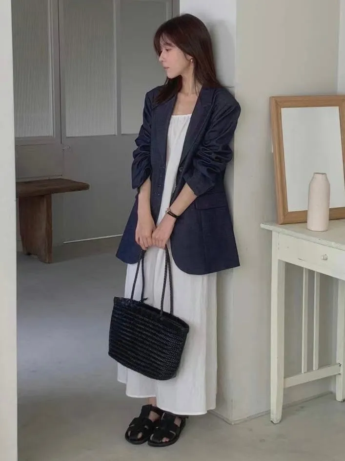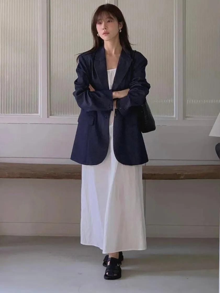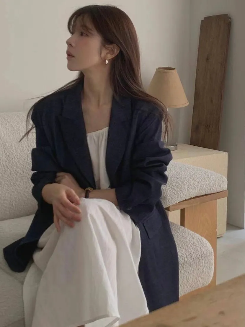 西裝面料+縲縈+彈力 空間寬鬆 L號友善 有口袋 微墊肩