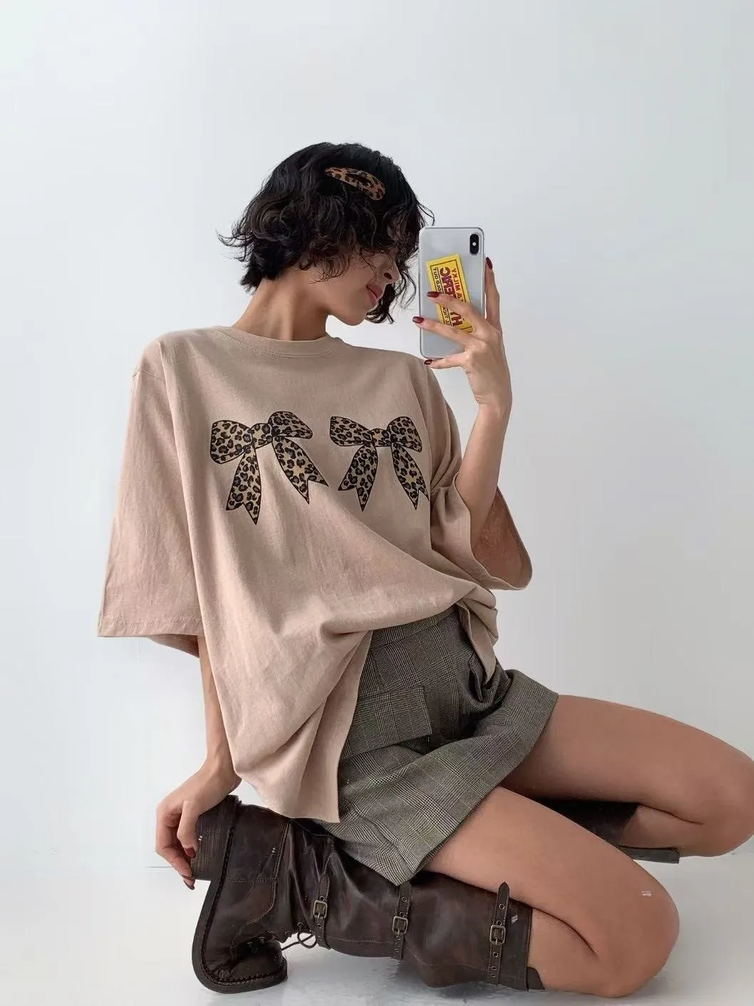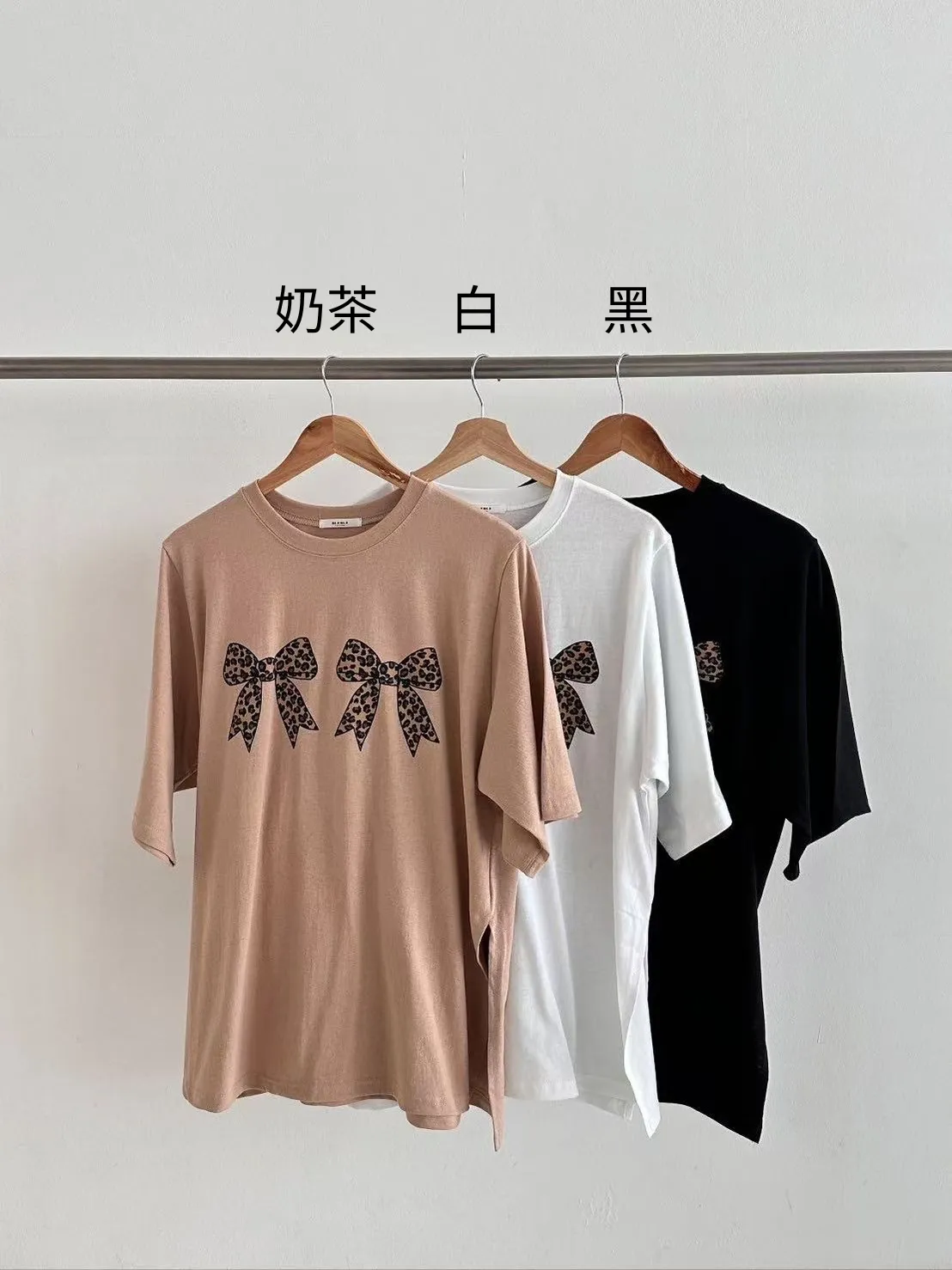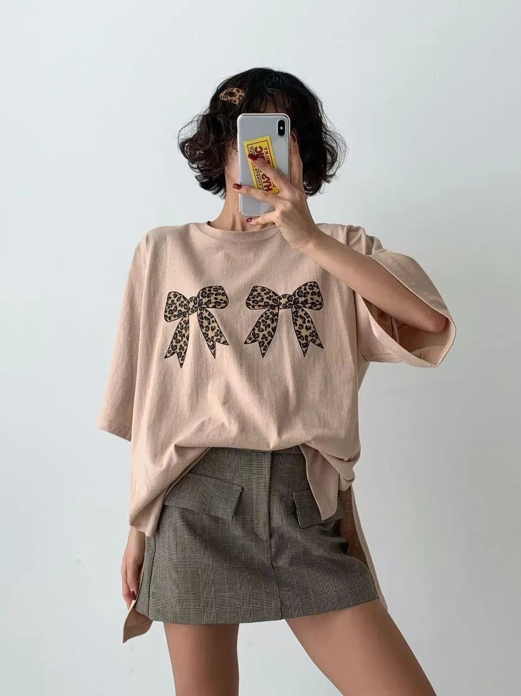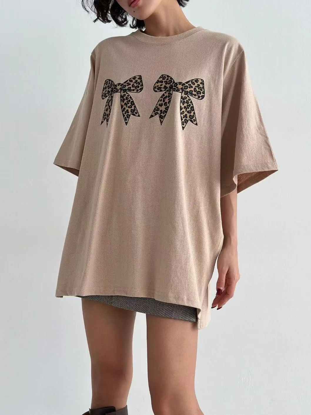 棉 薄款微挺不透 豹紋雙蝴蝶結 寬鬆舒適 適合夏天