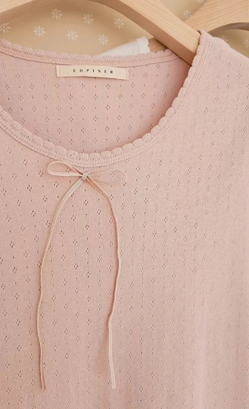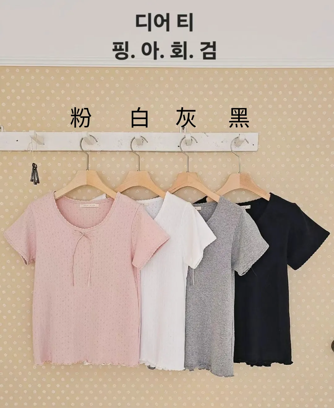 棉 簍空花紋 微露鎖骨修飾胸型 領口袖口花瓣邊 不透有彈性 小L友善