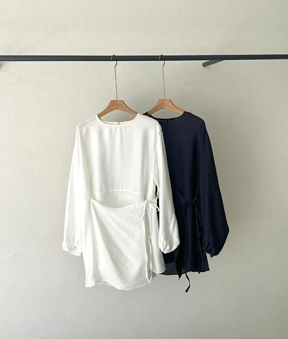 聚酯84%+尼龍17% 側腰綁帶 簡單好看 輕盈質地