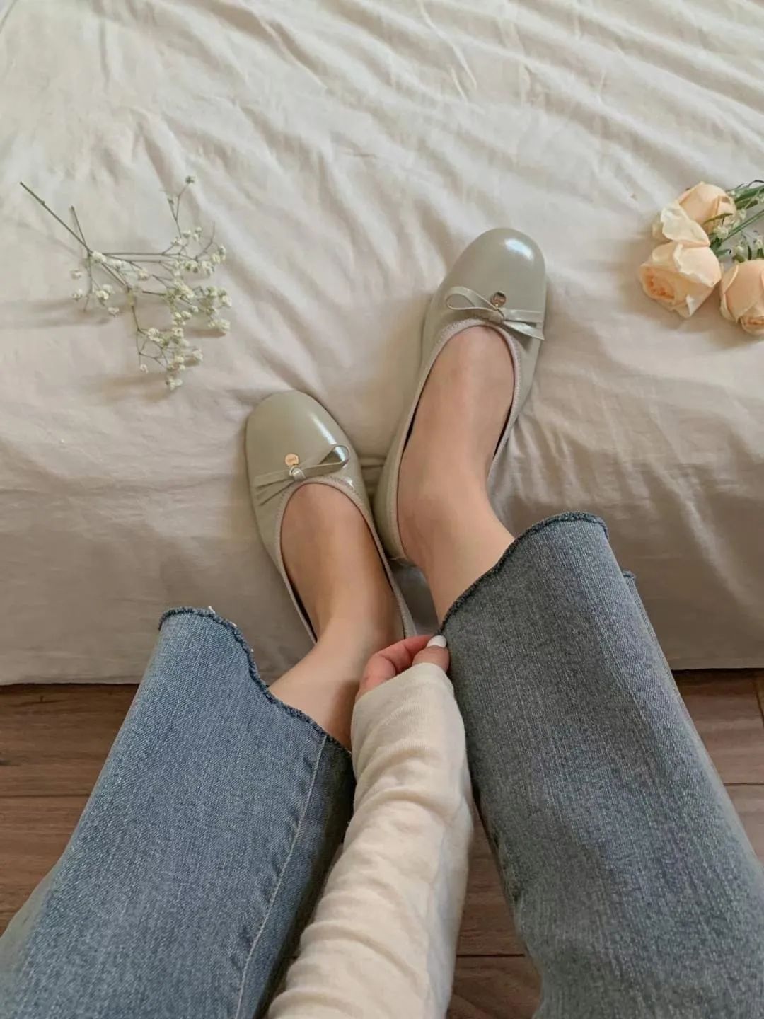 合成皮革 蝴蝶鞋 小小金幣標 鞋底舒適 底部防滑
