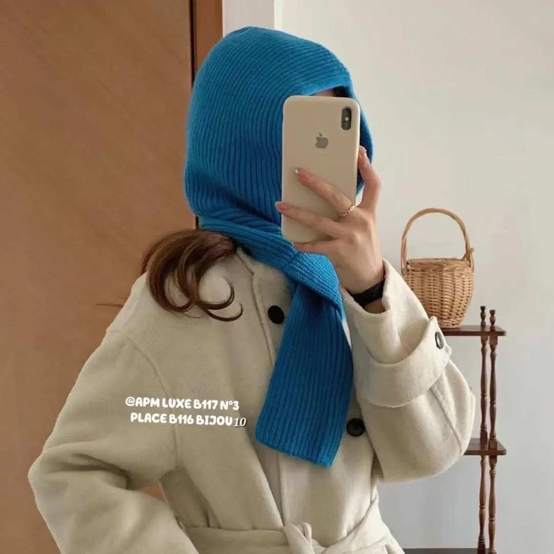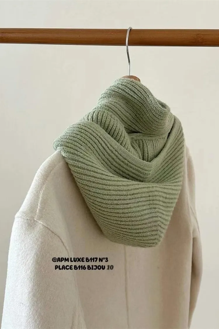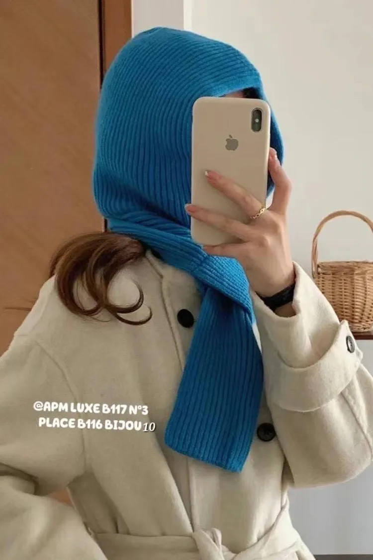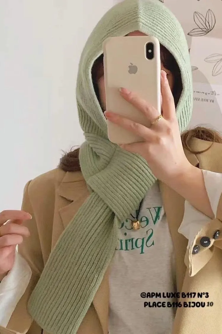 AN017可愛圍巾造型款坑條針織帽 白 綠 藍 紫 焦糖 灰 咖 黑 線上價$390 官網價$420