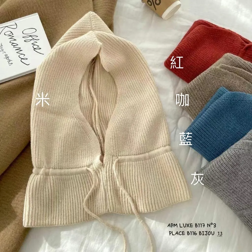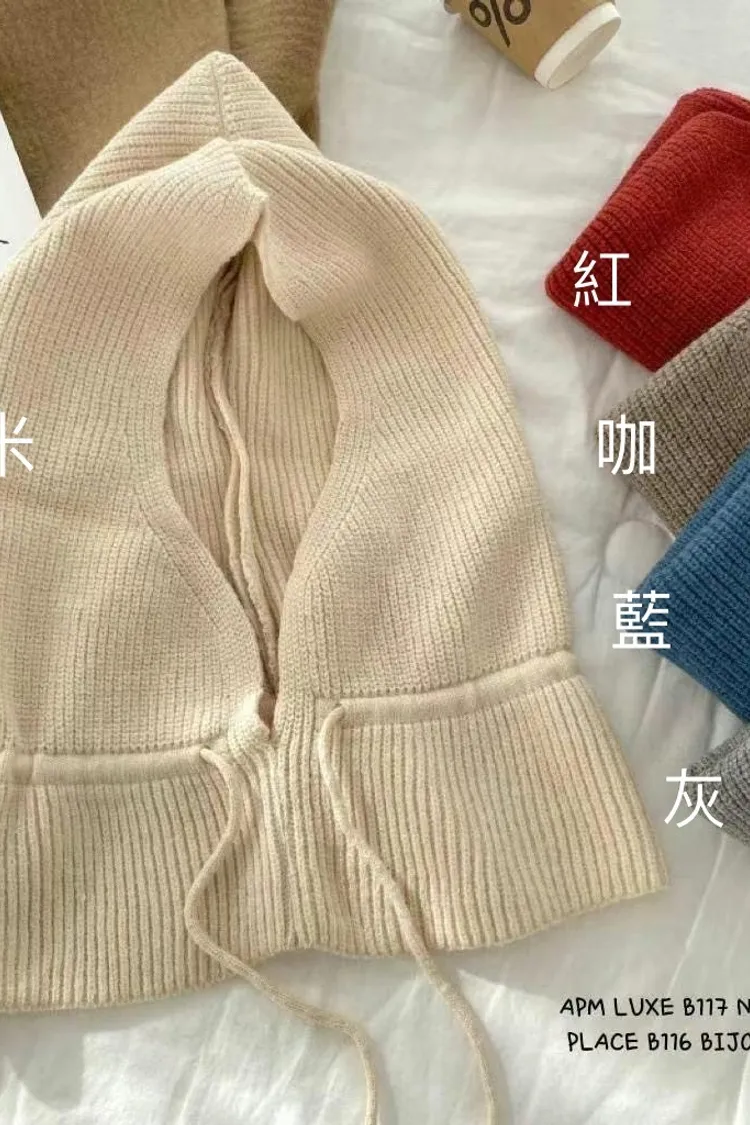 AN018無釦綁帶披肩小紅帽款針織帽 米 紅 咖 藍 灰 黑 線上價$469 官網價$499