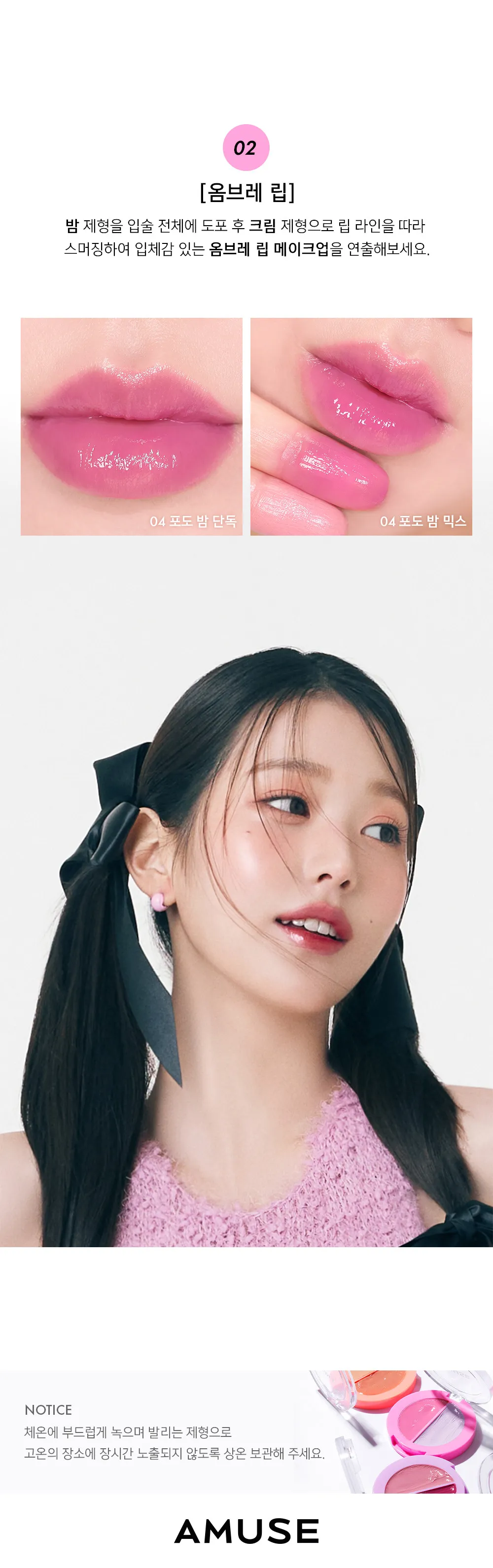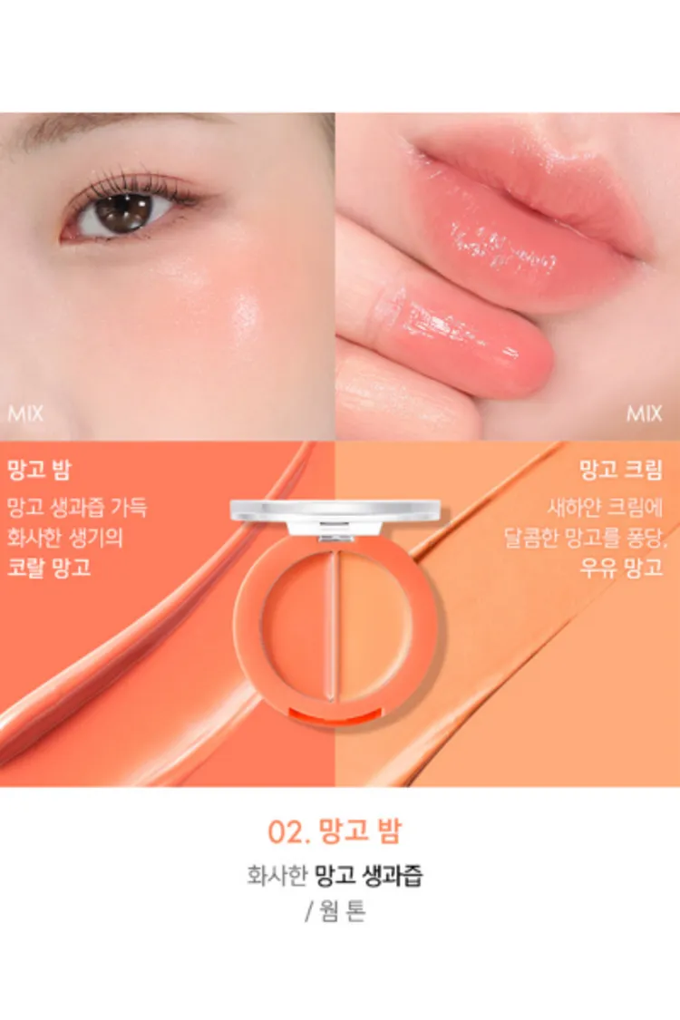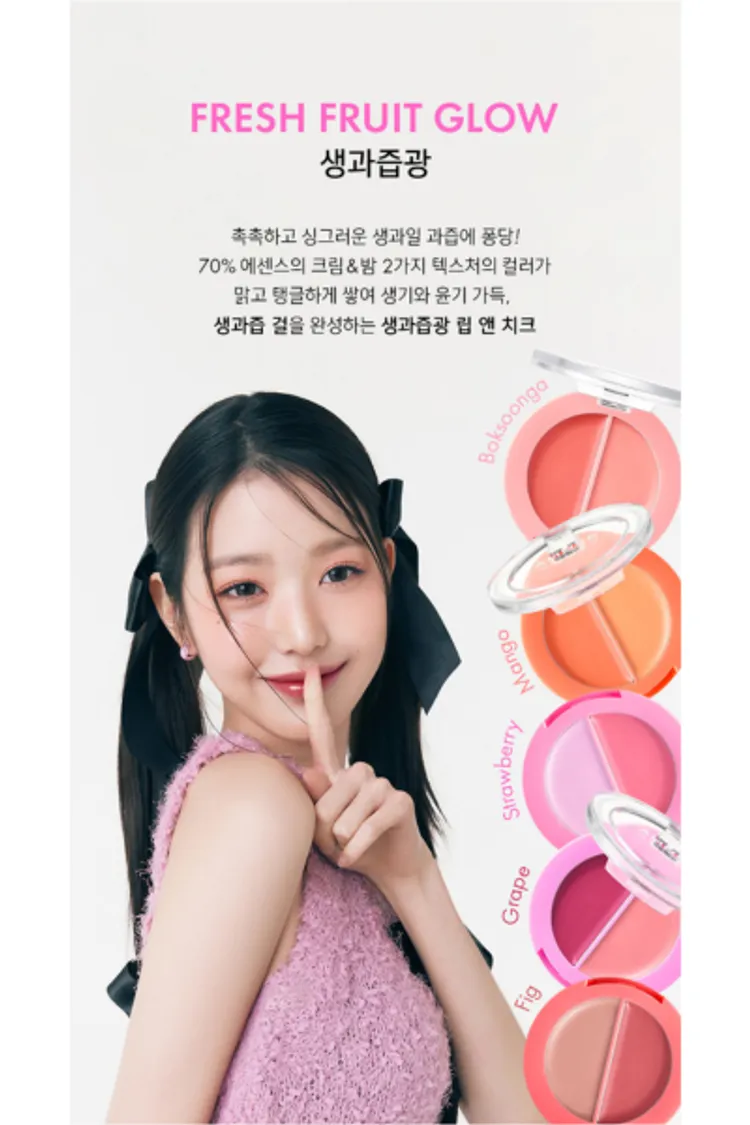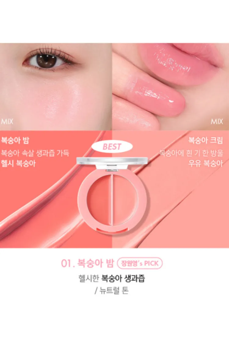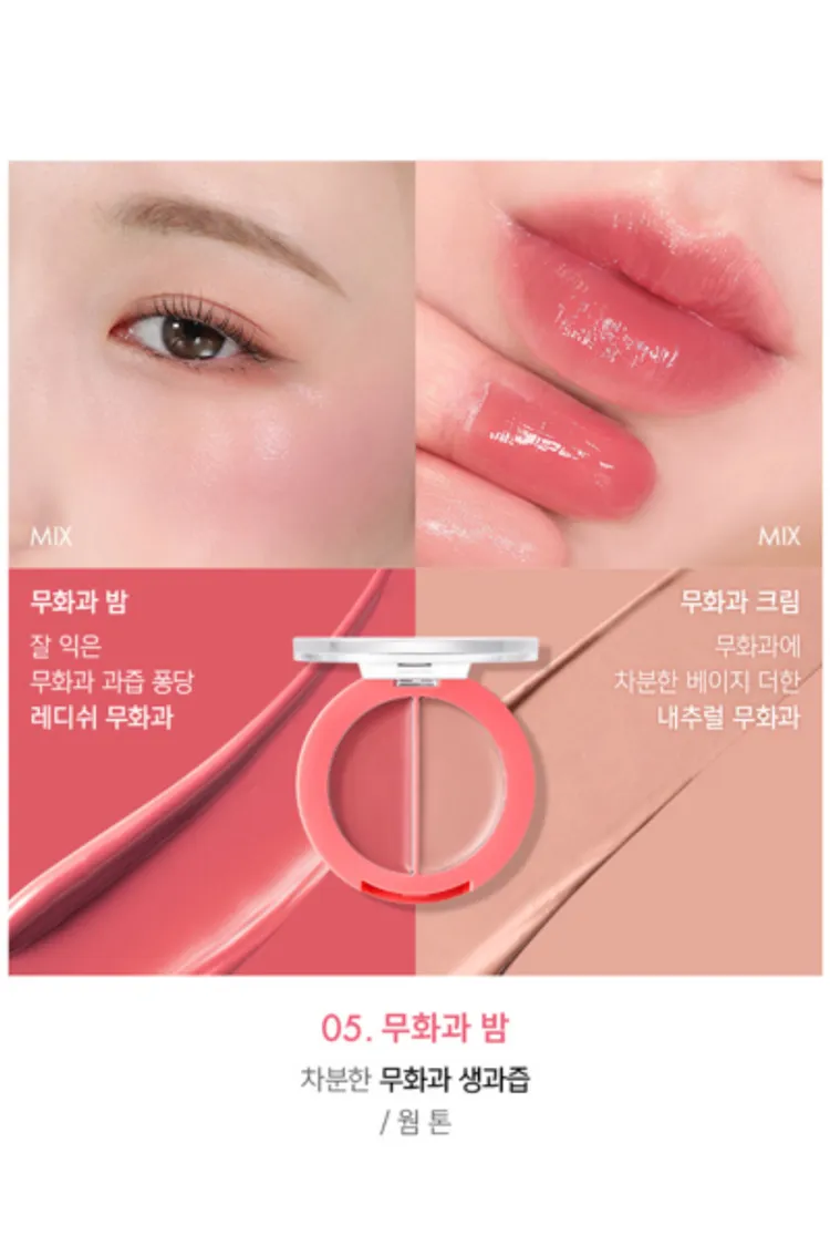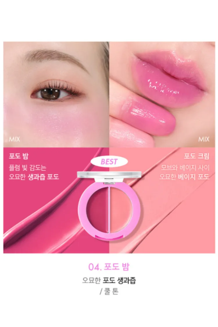 Amuse010張員瑛同款雙色唇頰膏 原價$600 售價$450・膏狀質地帶來高光澤與透明感,瞬間提升氣色;奶霜質地則水潤服貼,顯色度超高!・小巧體積設計,讓你無論在何時何地都能散發迷人光彩!3G/多色任選#01 Boksoonga 水蜜桃 新鮮的中性蜜桃汁#02 Mango 芒果 華麗的暖調芒果汁#03 Strawberry 草莓 清新的冷調草莓汁#04 Grape 葡萄 神秘的冷調葡萄汁#05 Fig 無花果 沈穩的暖調無花果汁