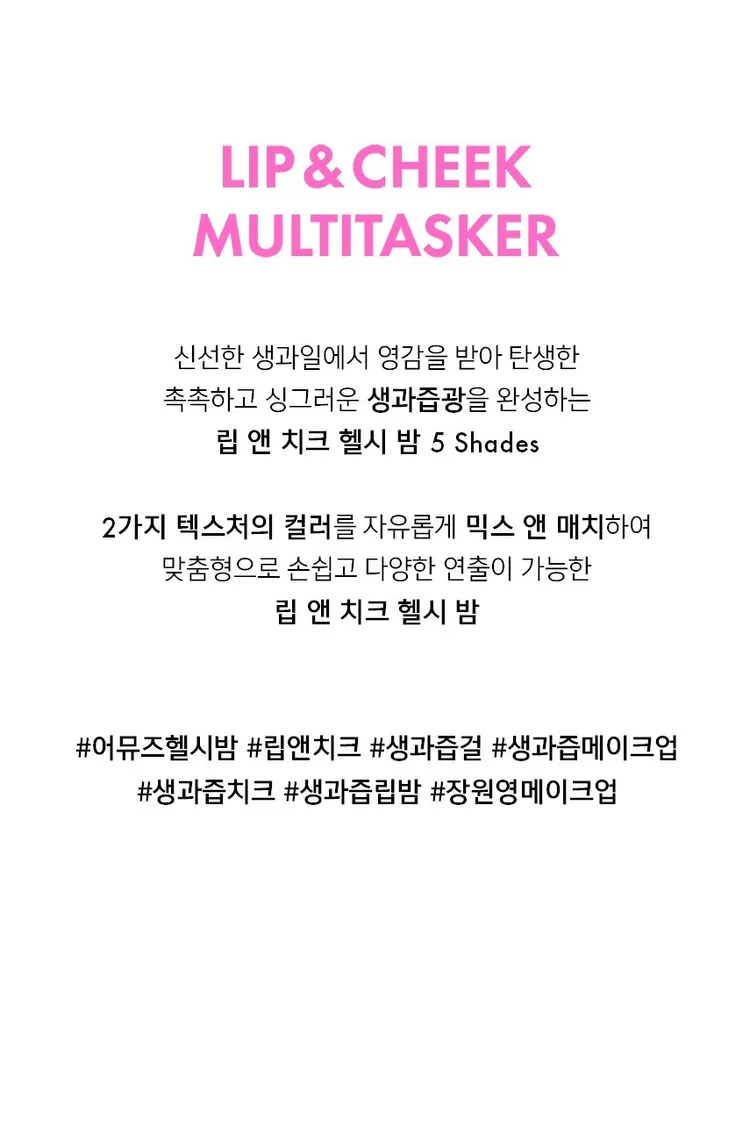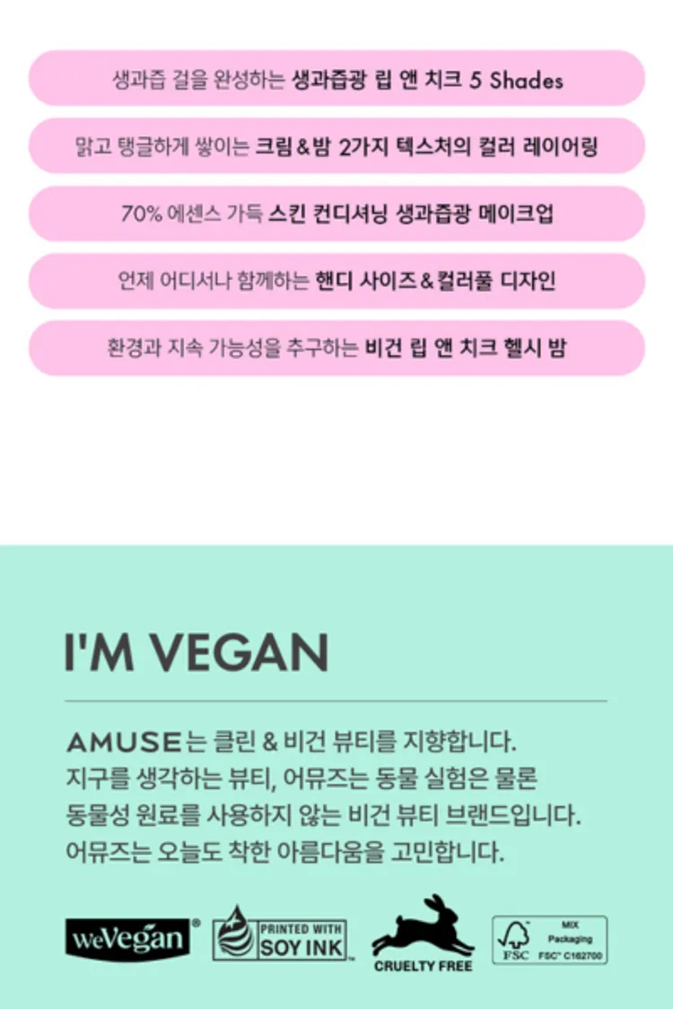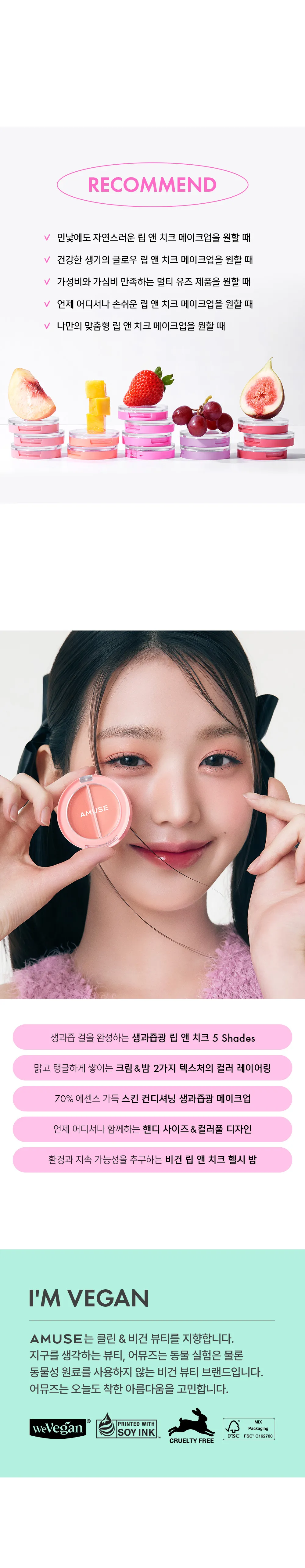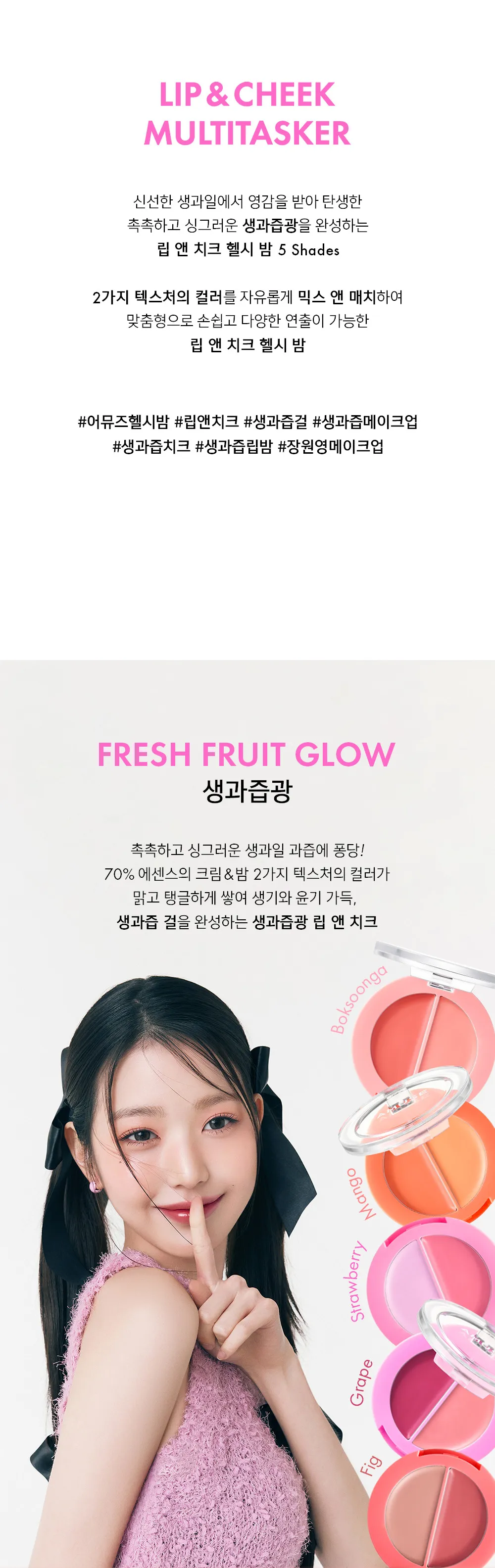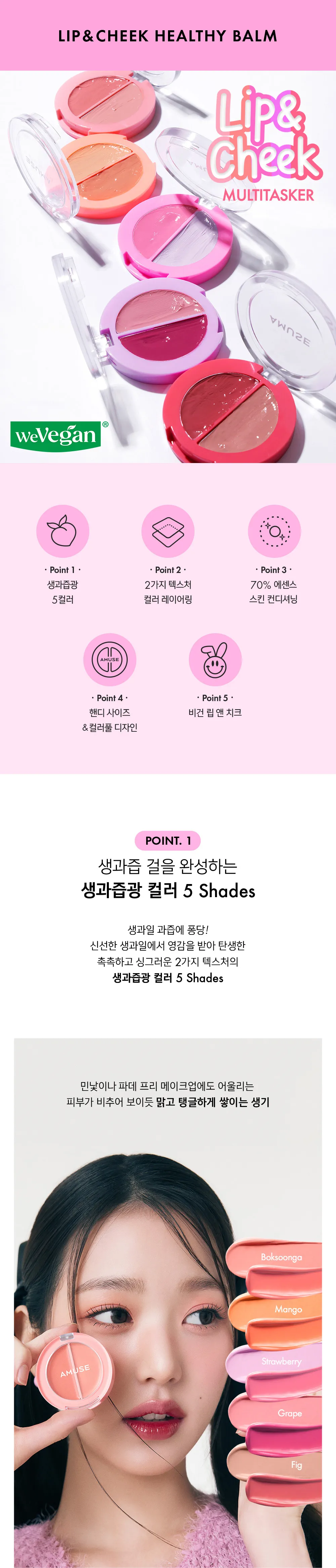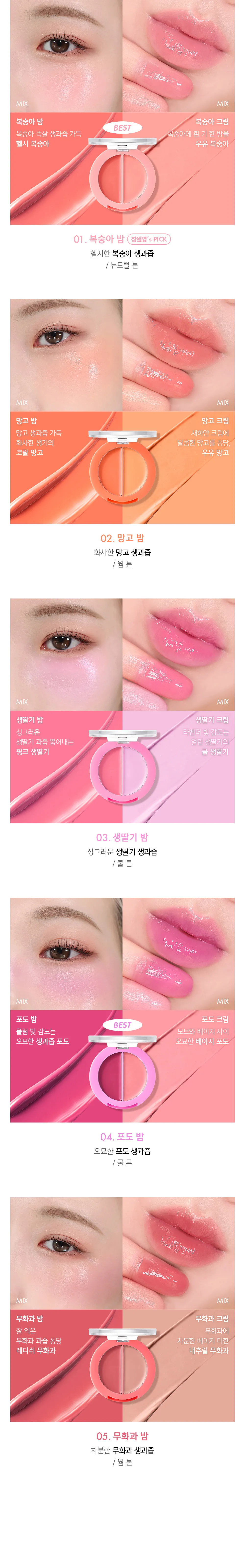 Amuse010張員瑛同款雙色唇頰膏 原價$600 售價$450・膏狀質地帶來高光澤與透明感,瞬間提升氣色;奶霜質地則水潤服貼,顯色度超高!・小巧體積設計,讓你無論在何時何地都能散發迷人光彩!3G/多色任選#01 Boksoonga 水蜜桃 新鮮的中性蜜桃汁#02 Mango 芒果 華麗的暖調芒果汁#03 Strawberry 草莓 清新的冷調草莓汁#04 Grape 葡萄 神秘的冷調葡萄汁#05 Fig 無花果 沈穩的暖調無花果汁