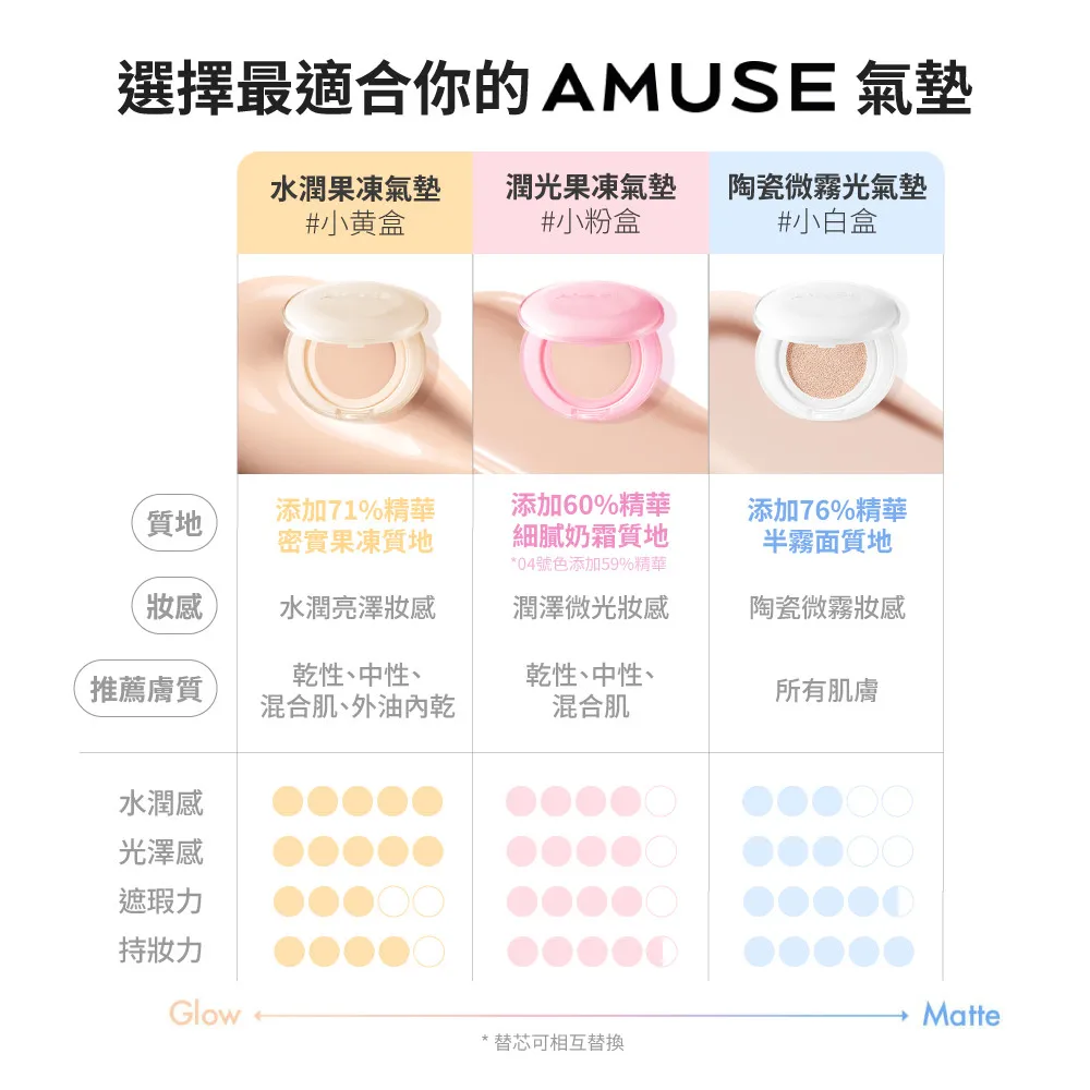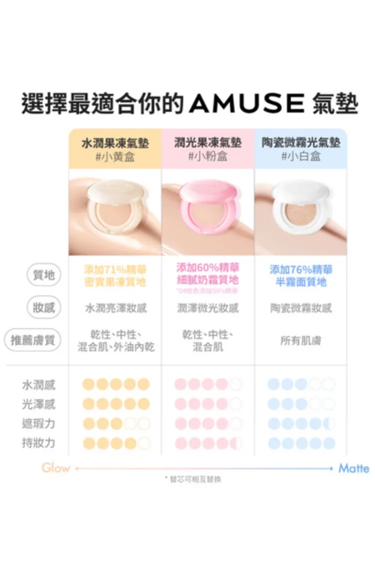 Amuse013潤光果凍氣墊粉餅 售價$・水潤服貼遮瑕,呈現明亮潤澤光!・24小時長效持妝,帶妝一整天也不暗沈15g0.5 純淨 PURE01自然 NATURAL1.5 健康 HEALTHY02 蜂蜜 HONEY03 深膚 TAN