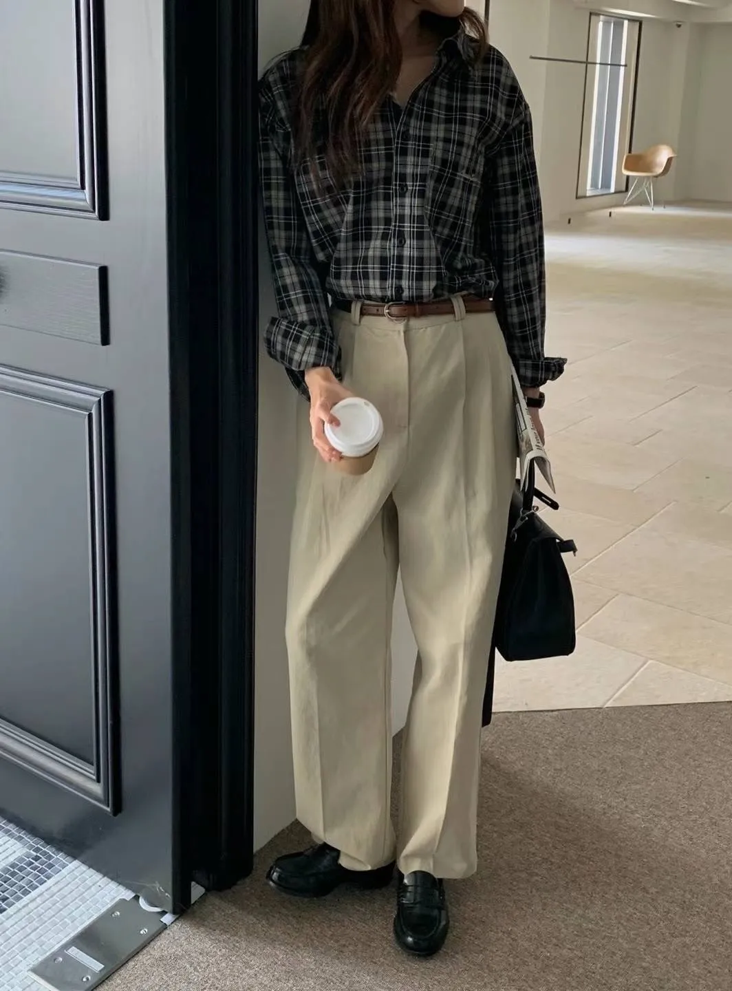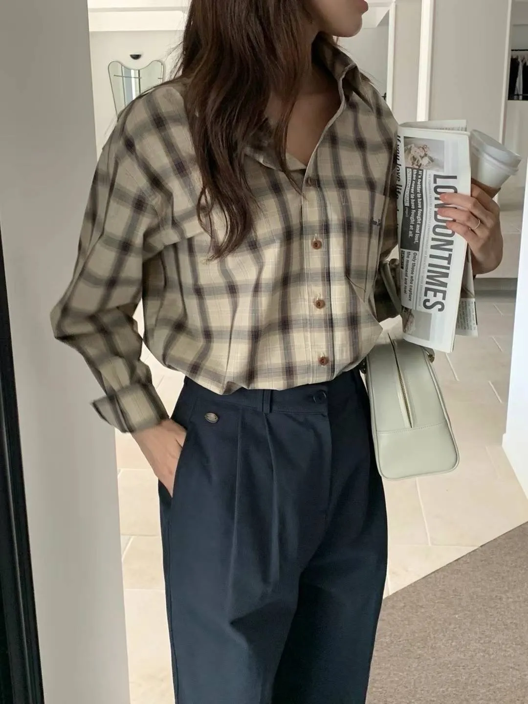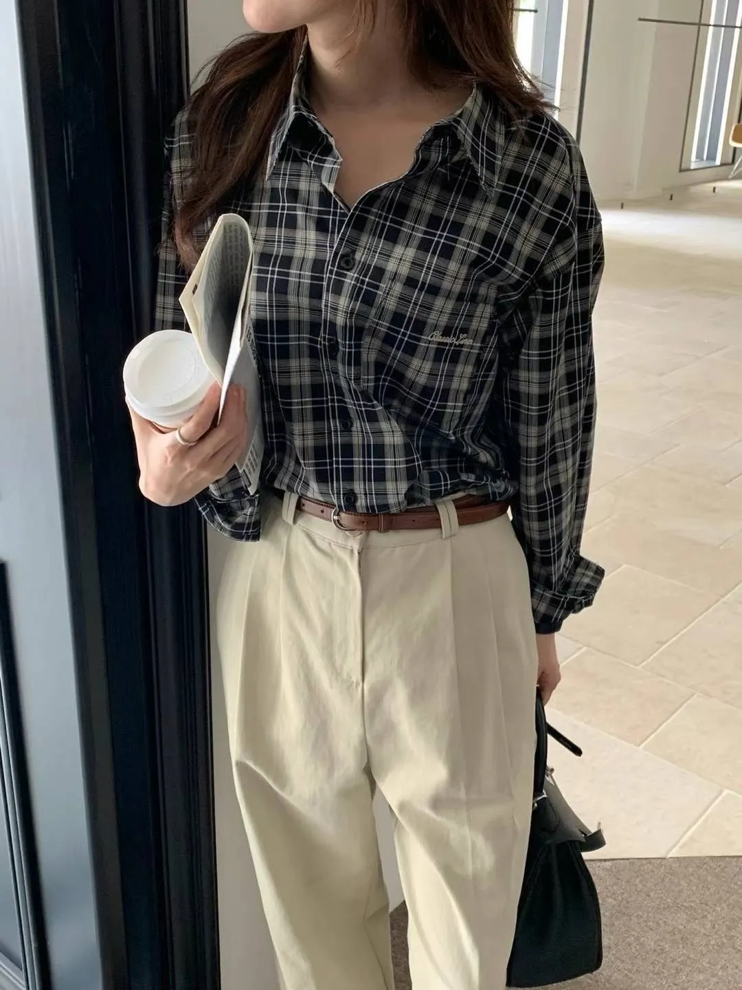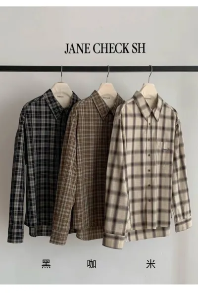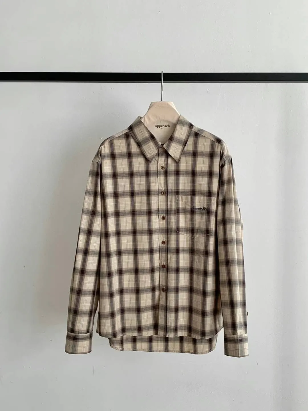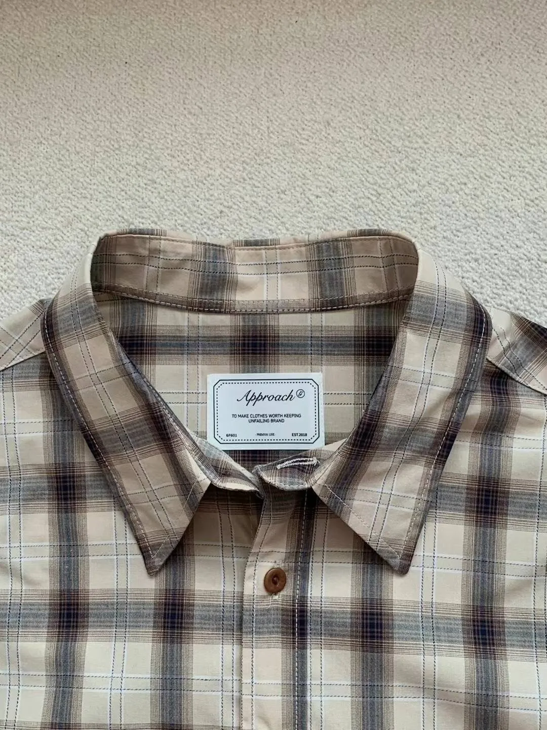 棉100% 薄料 格紋暈染感 胸口袋LOGO刺繡