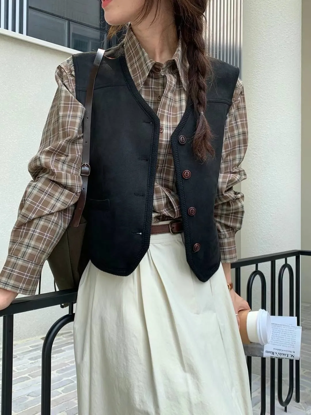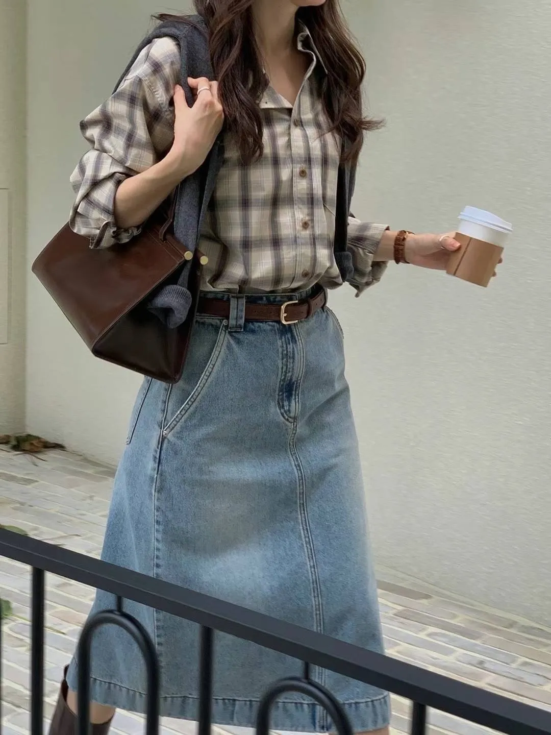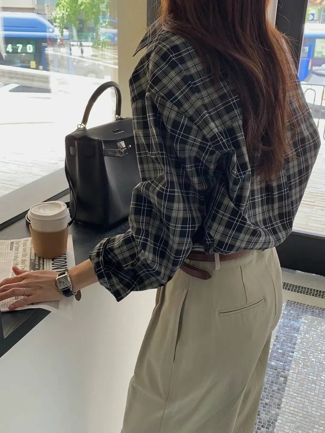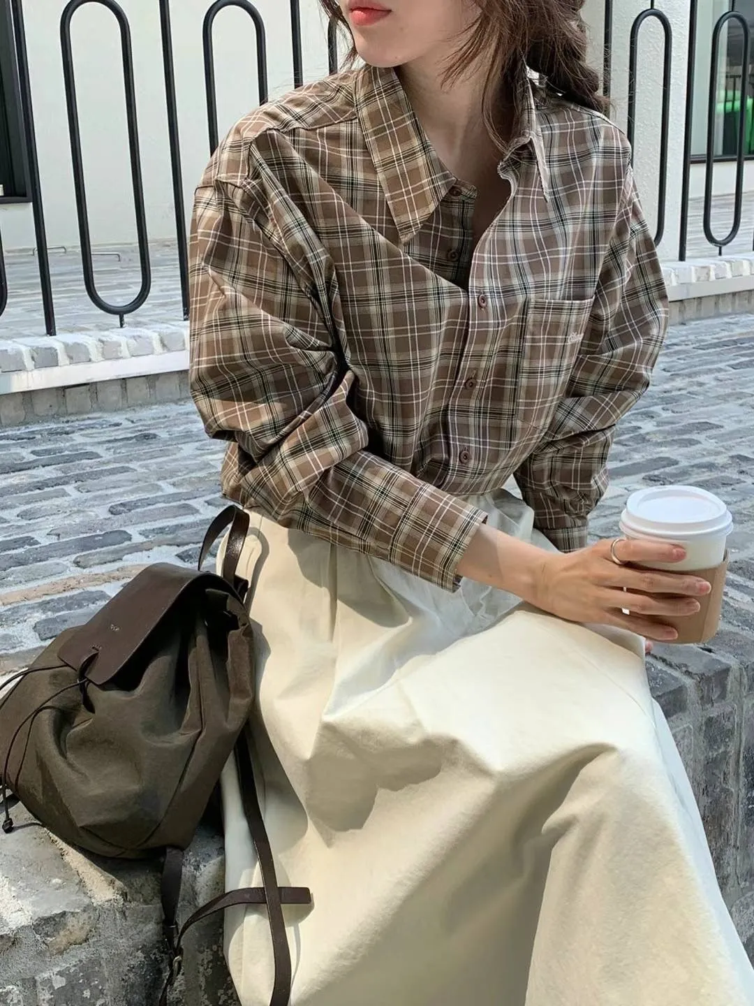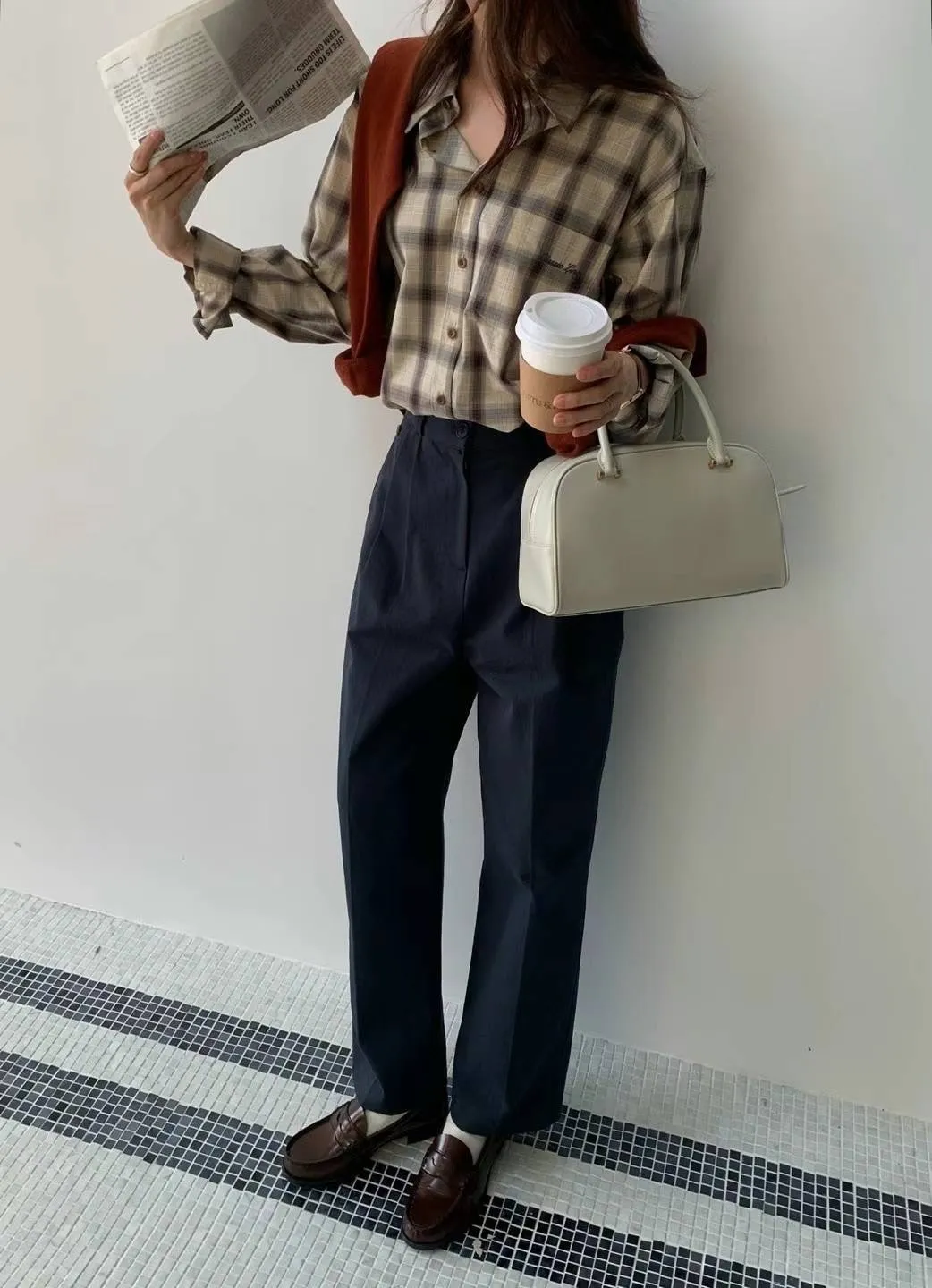 棉100% 薄料 格紋暈染感 胸口袋LOGO刺繡