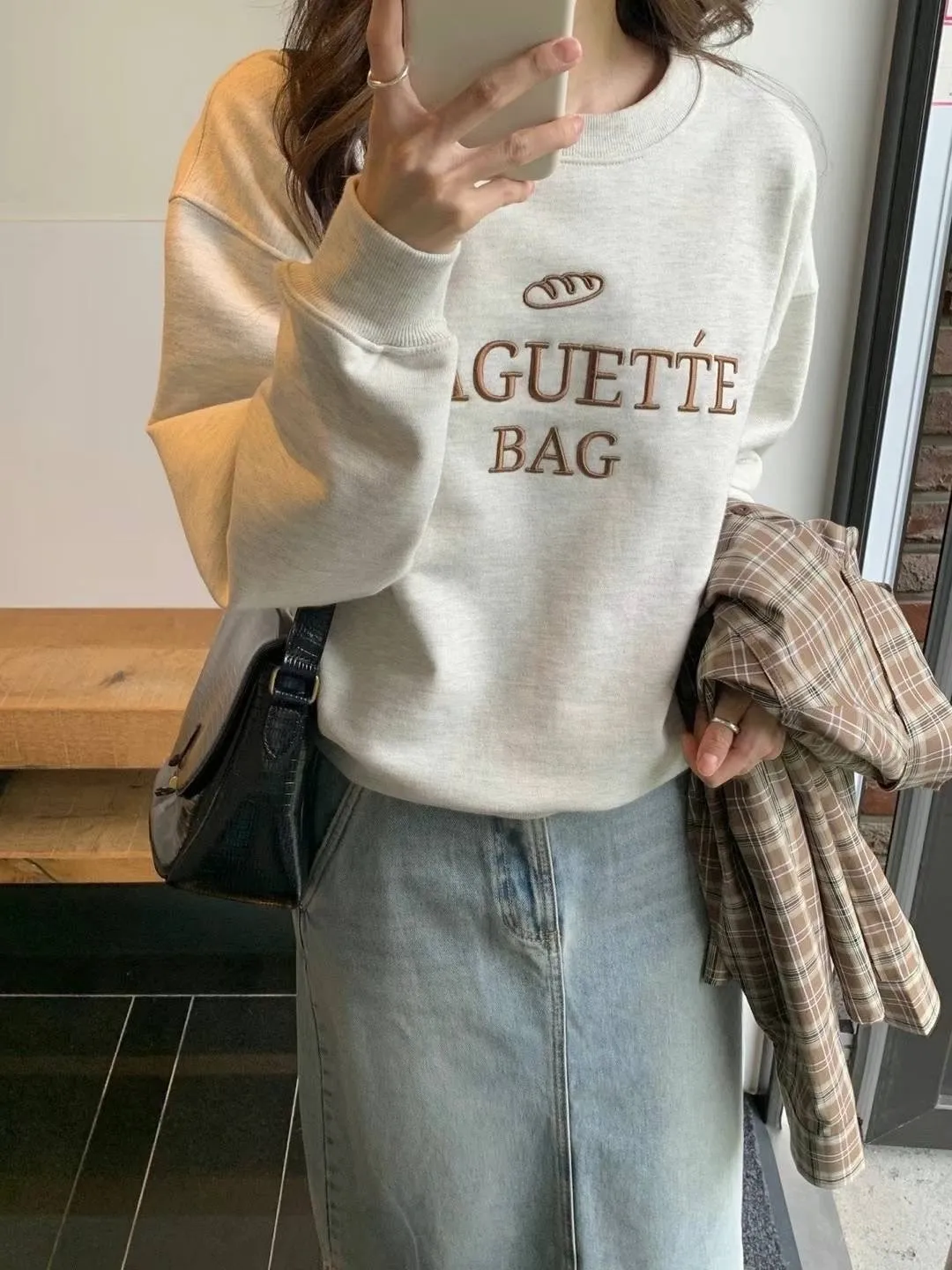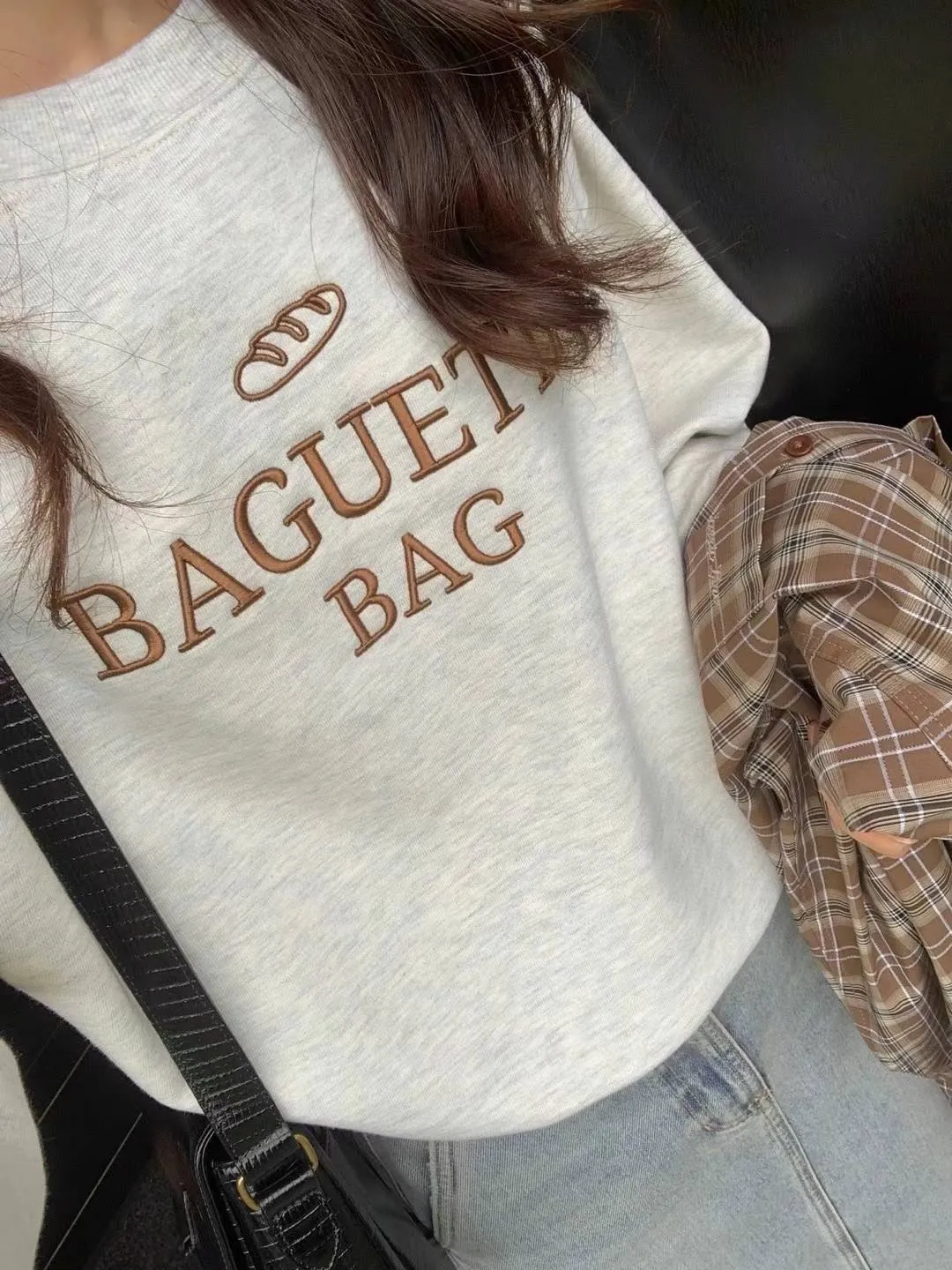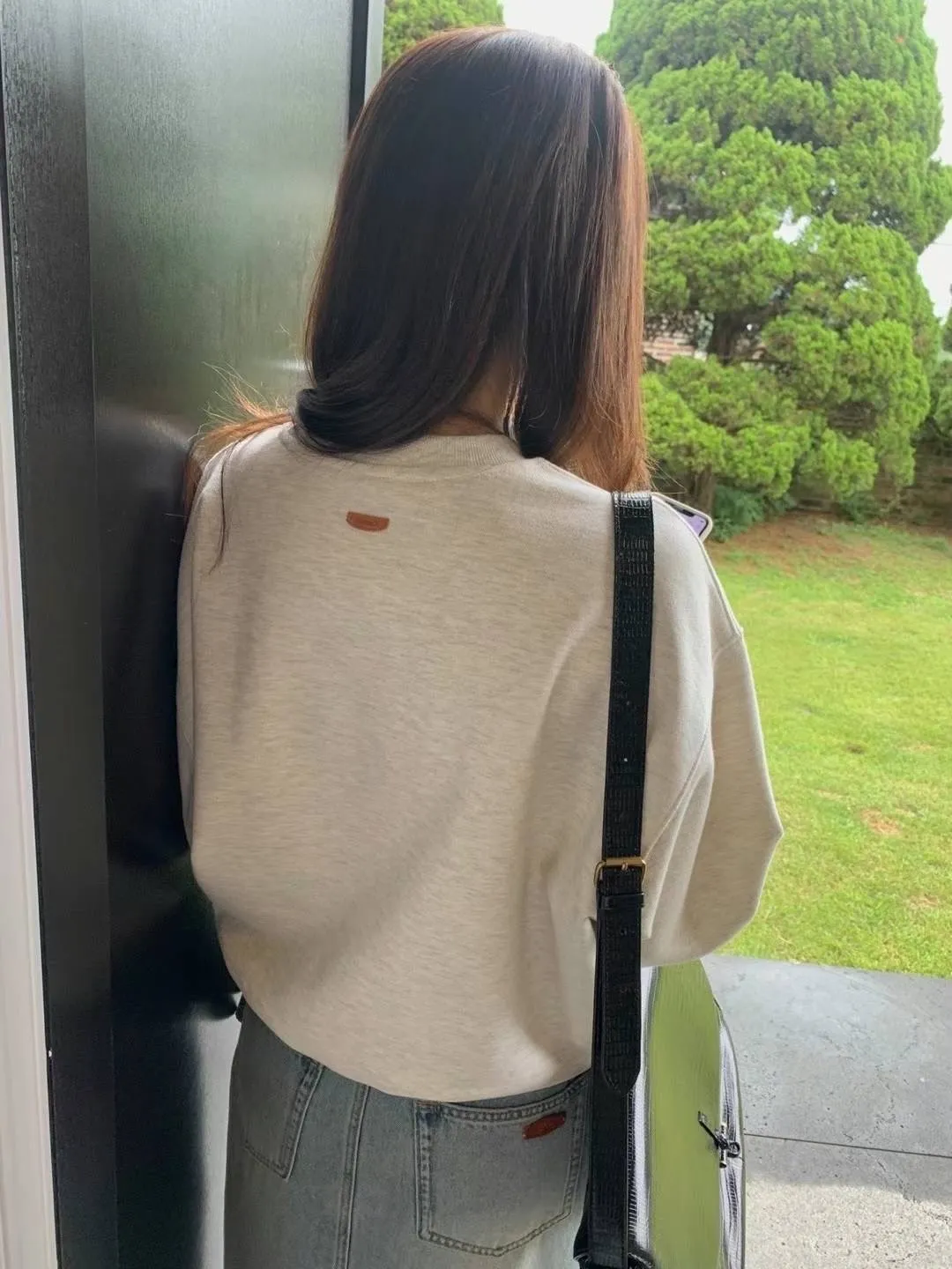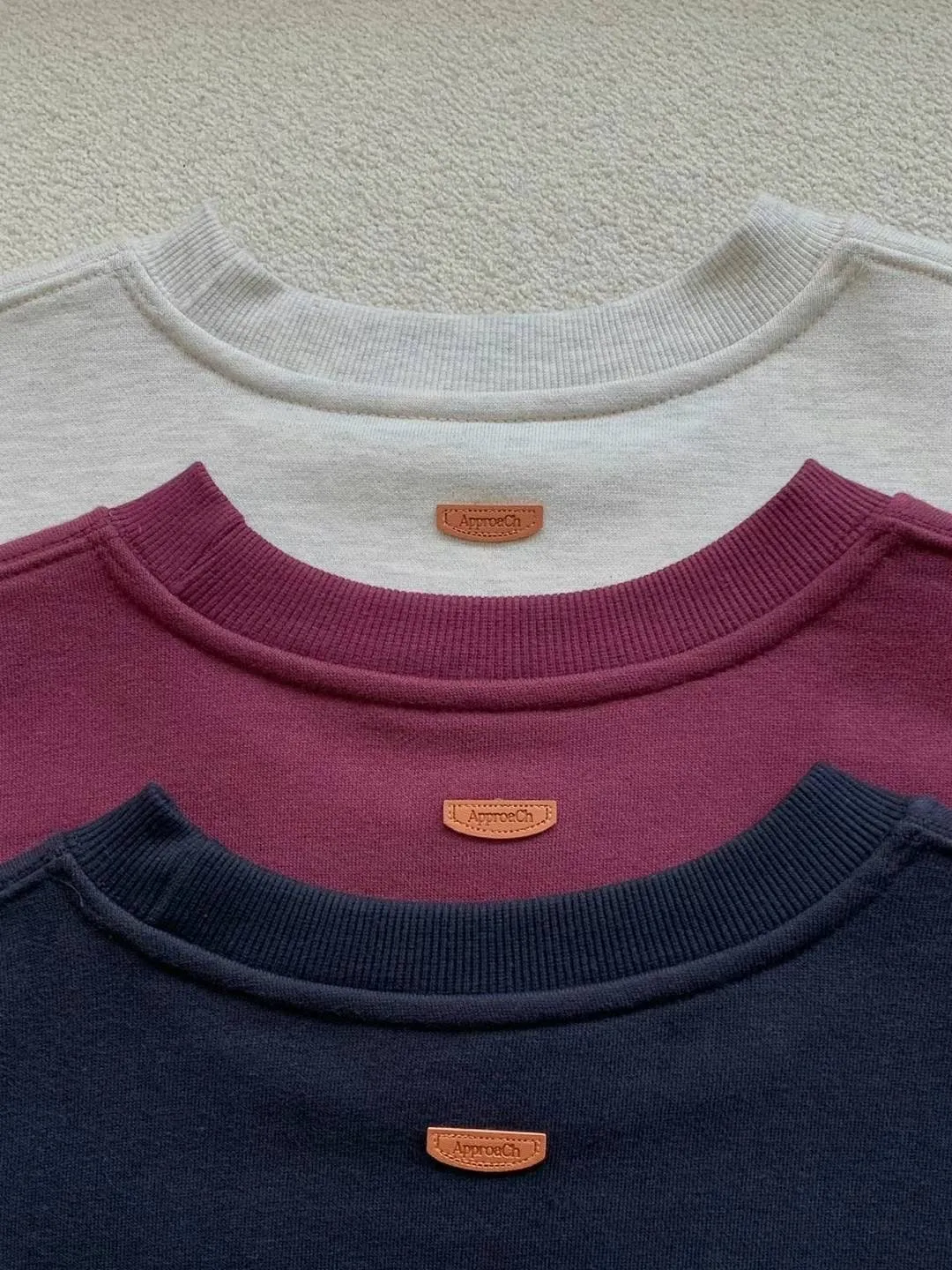 棉 落肩顯瘦 質感刺繡英文 背後小皮革標 空間感佳 下擺袖口鬆緊 無刷毛