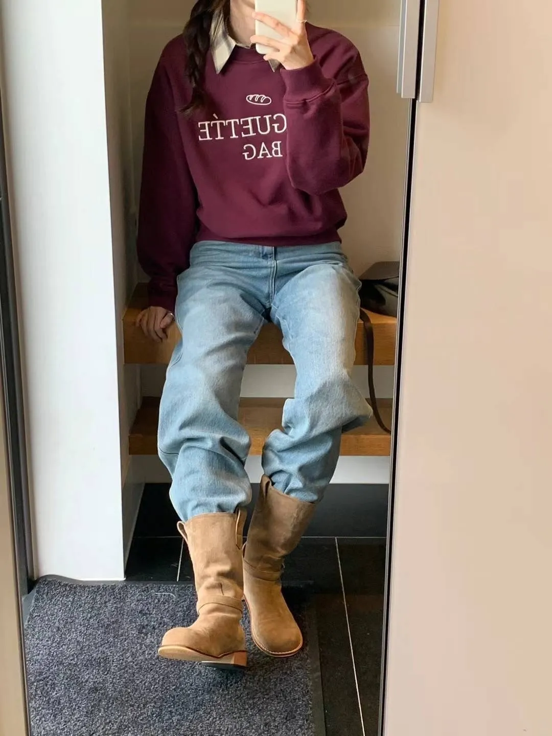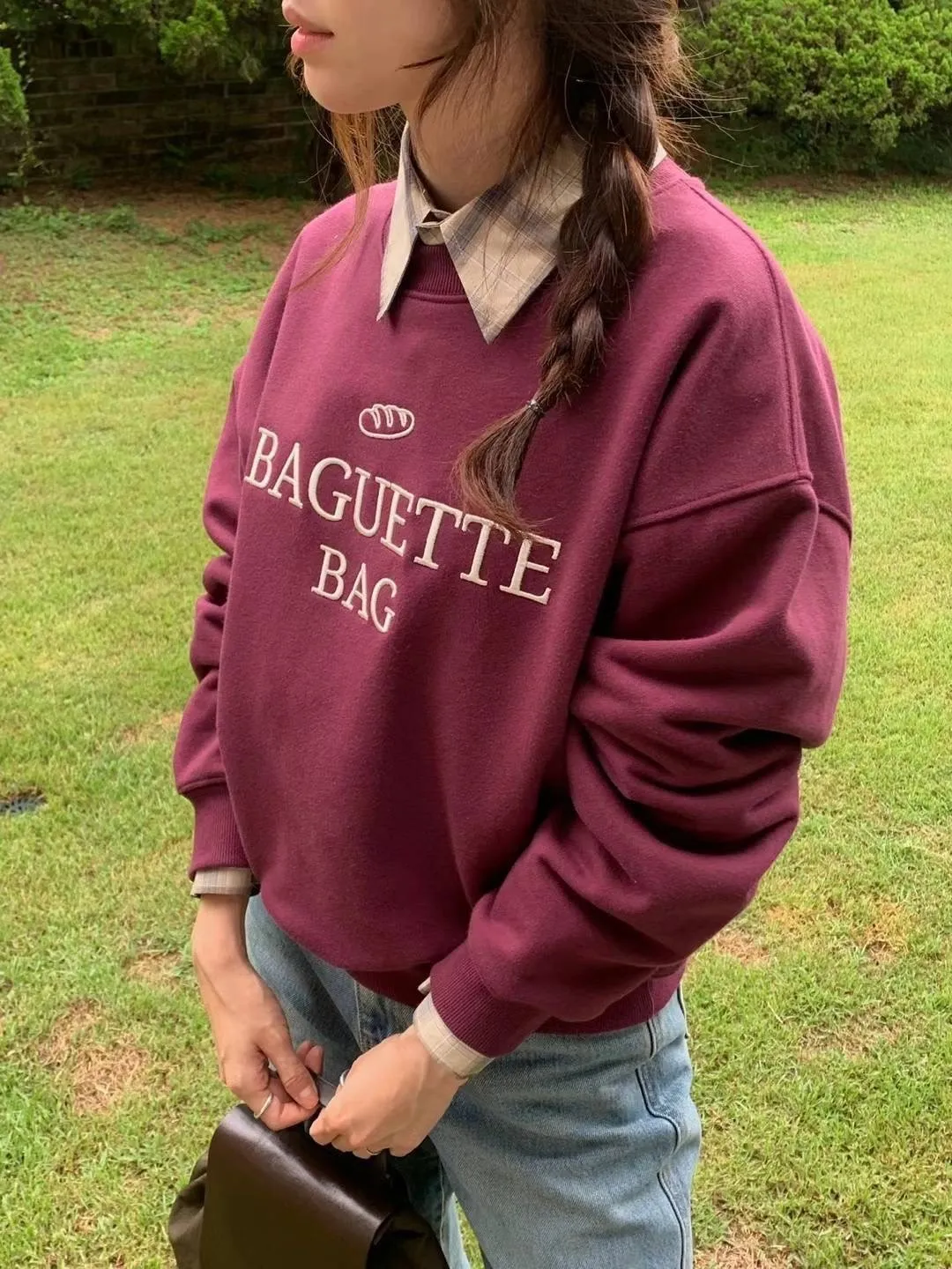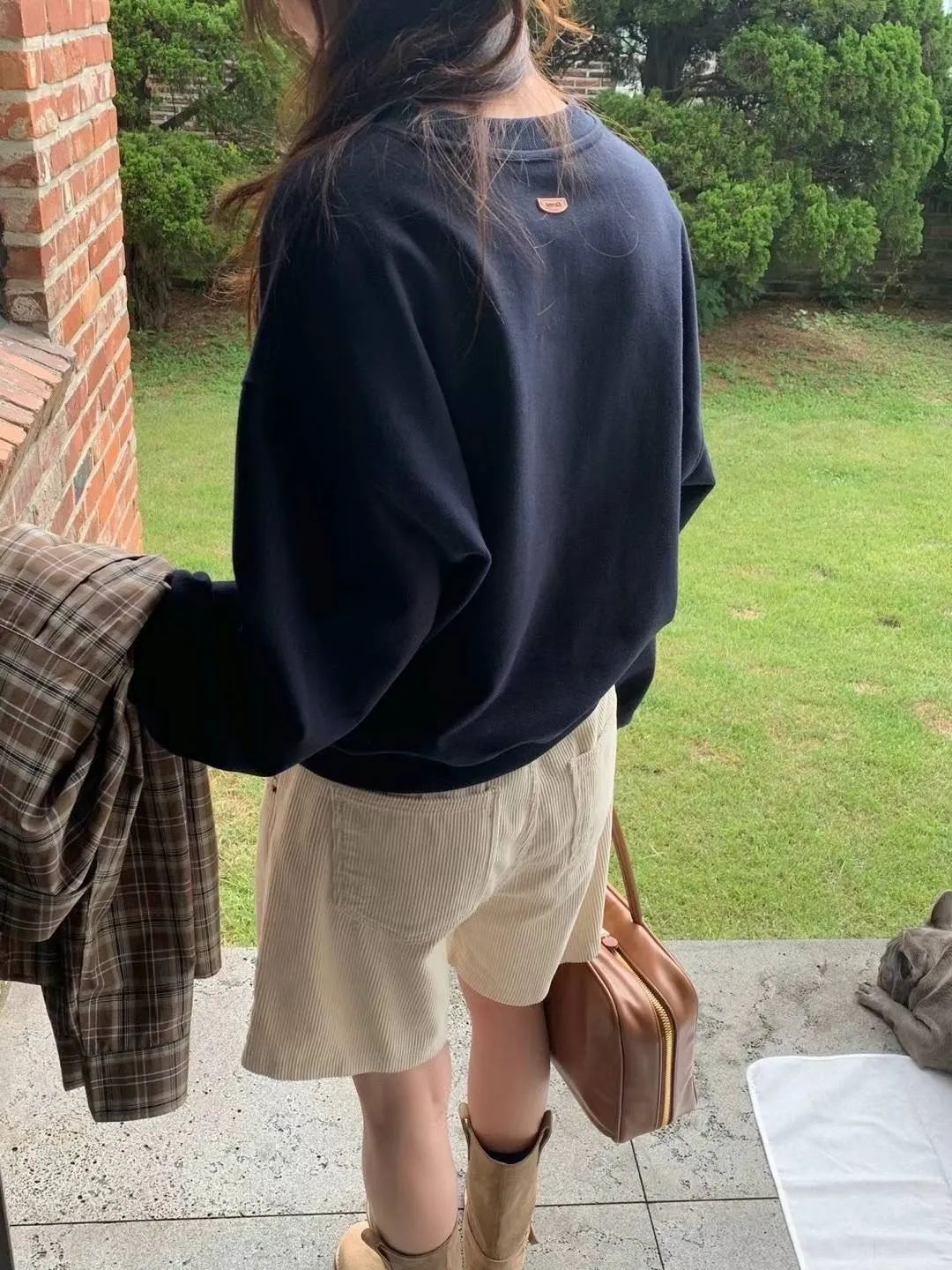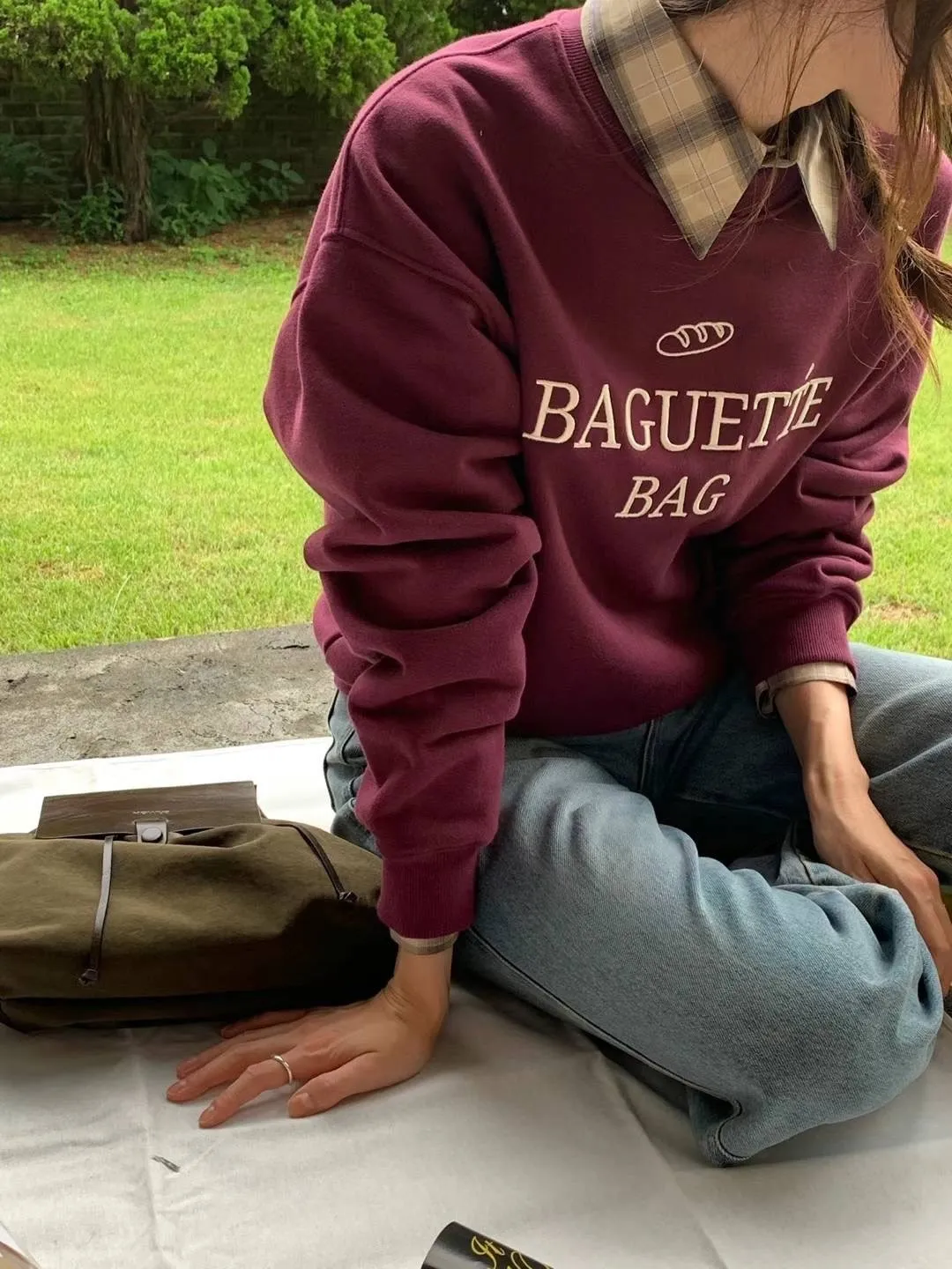 棉 落肩顯瘦 質感刺繡英文 背後小皮革標 空間感佳 下擺袖口鬆緊 無刷毛