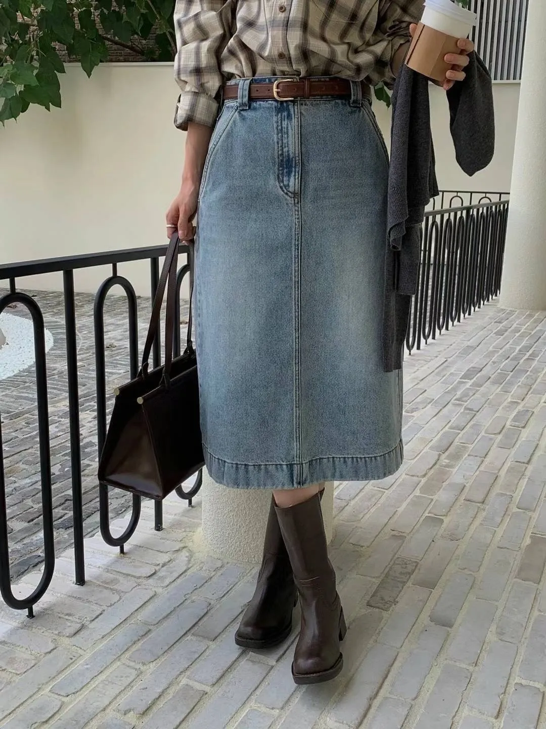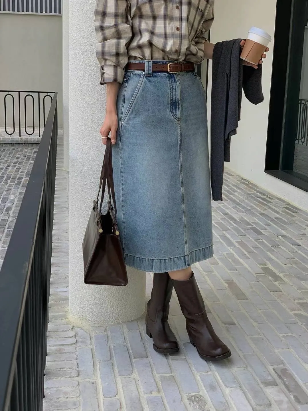 棉 復古刷色 視覺高級 後開叉 有口袋