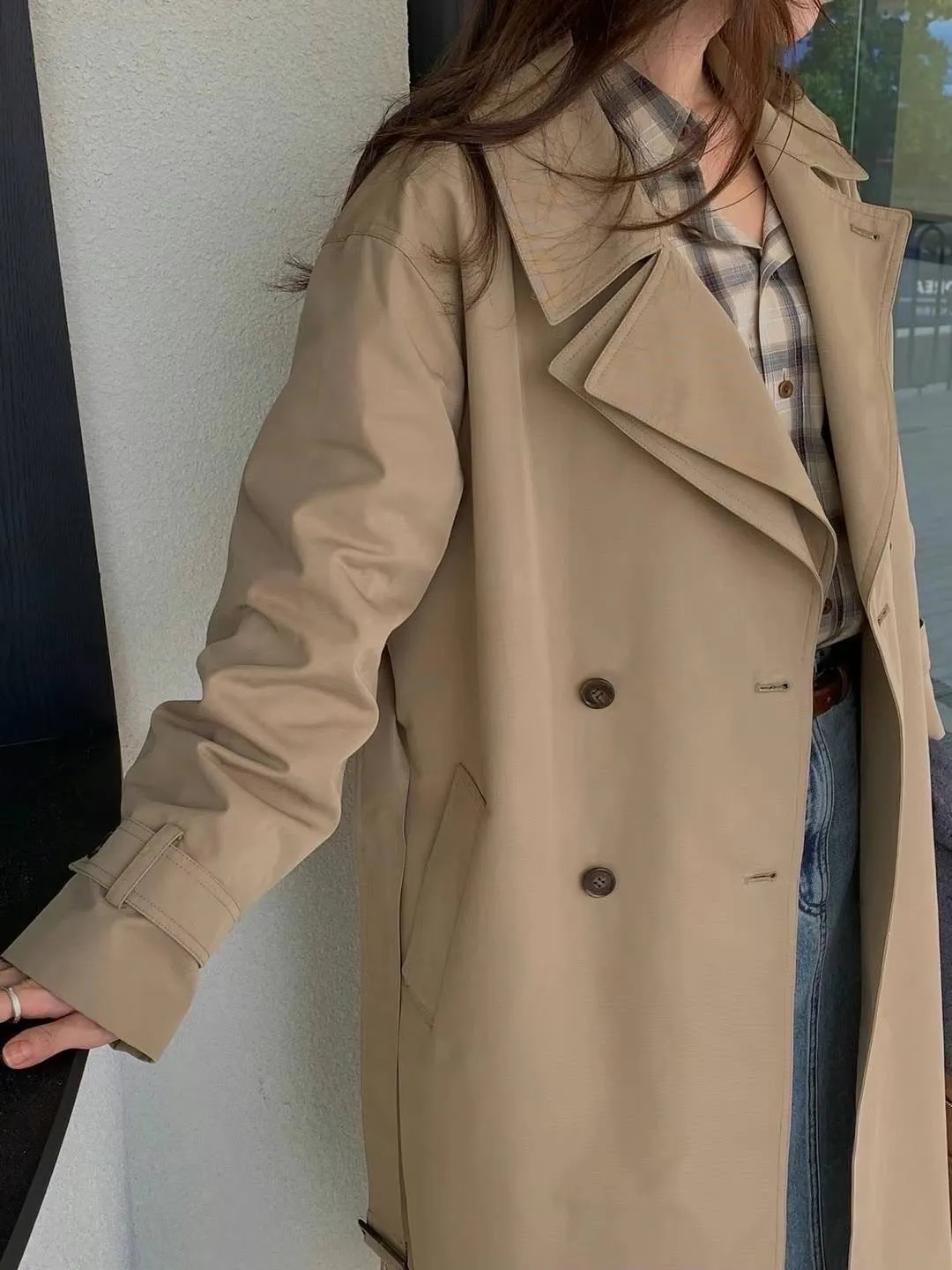 風衣面料 雙層翻領 有內理 後腰綁帶 有口袋