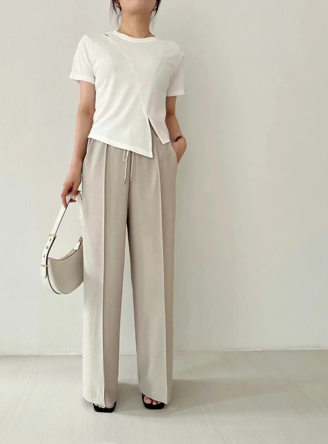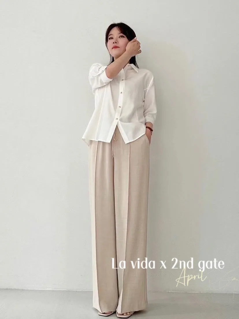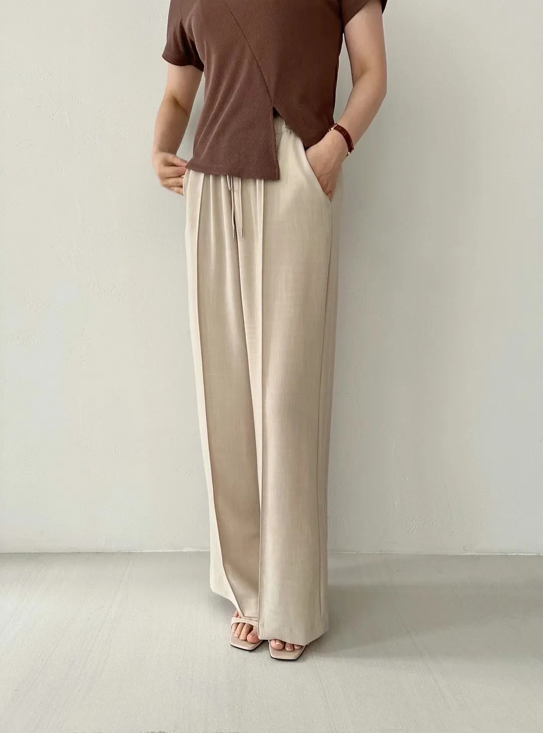 天絲+縲縈+聚酯+彈力 腰有鬆緊抽繩 適合全部身形 有口袋 自然垂墜
