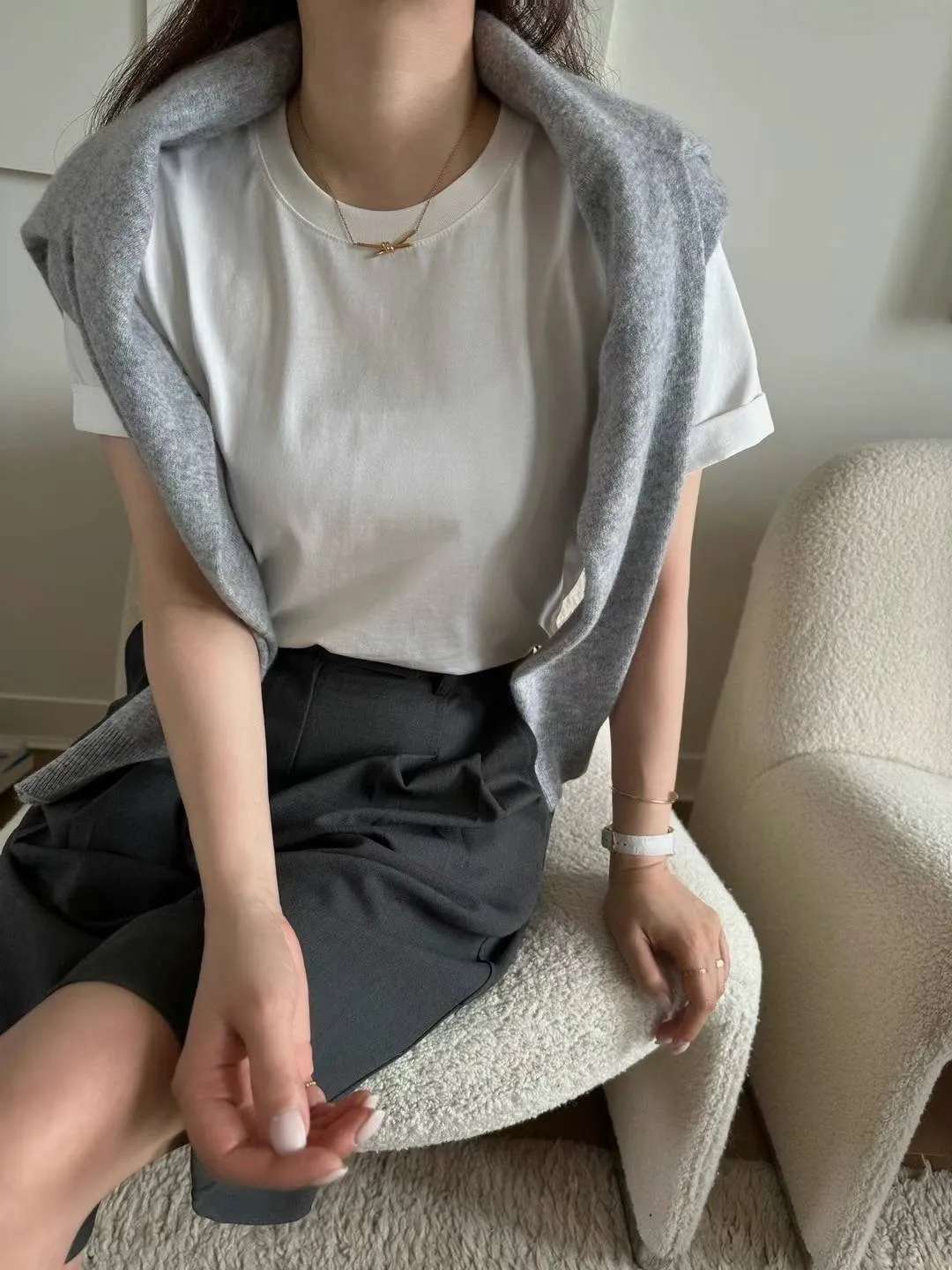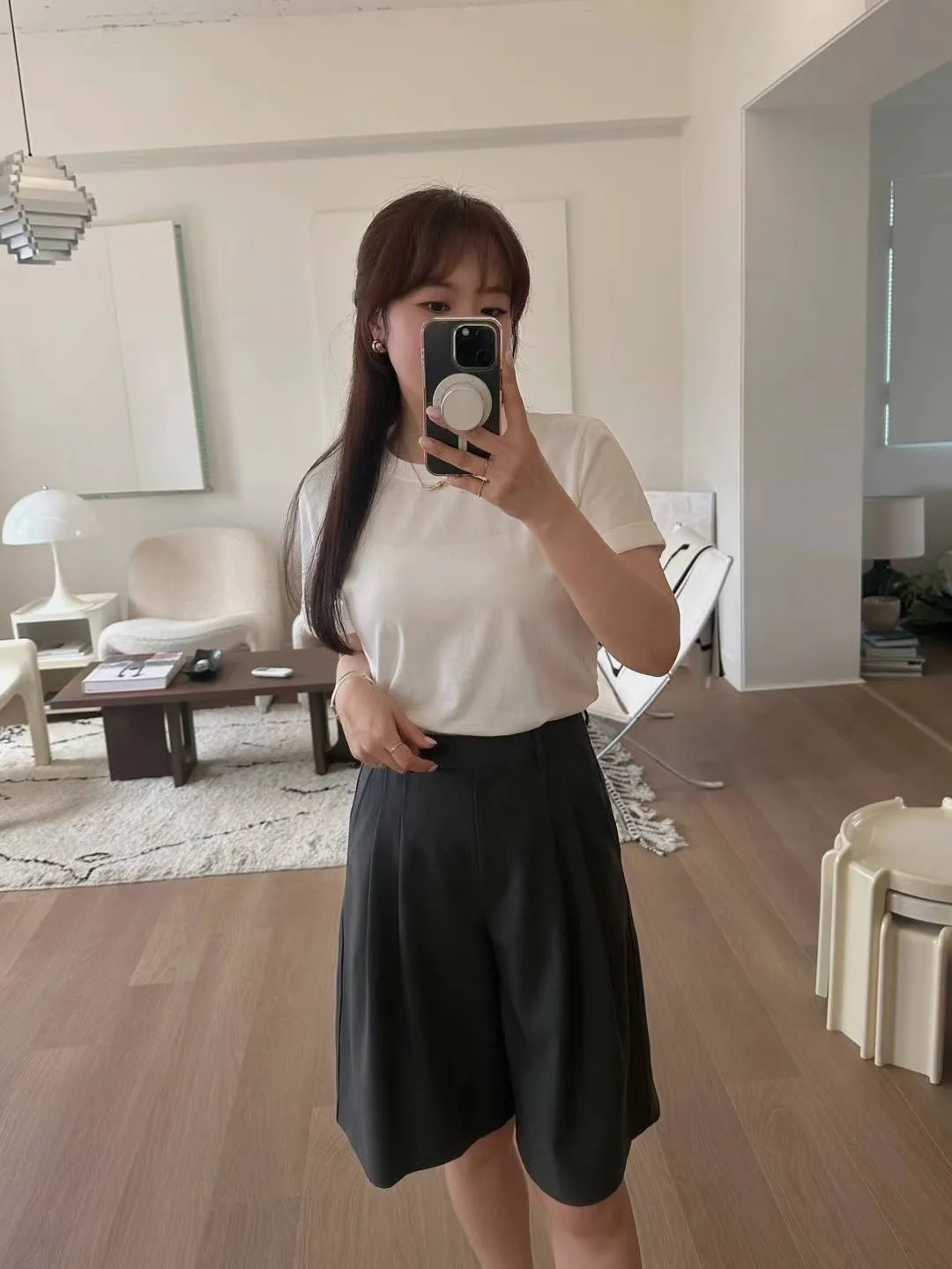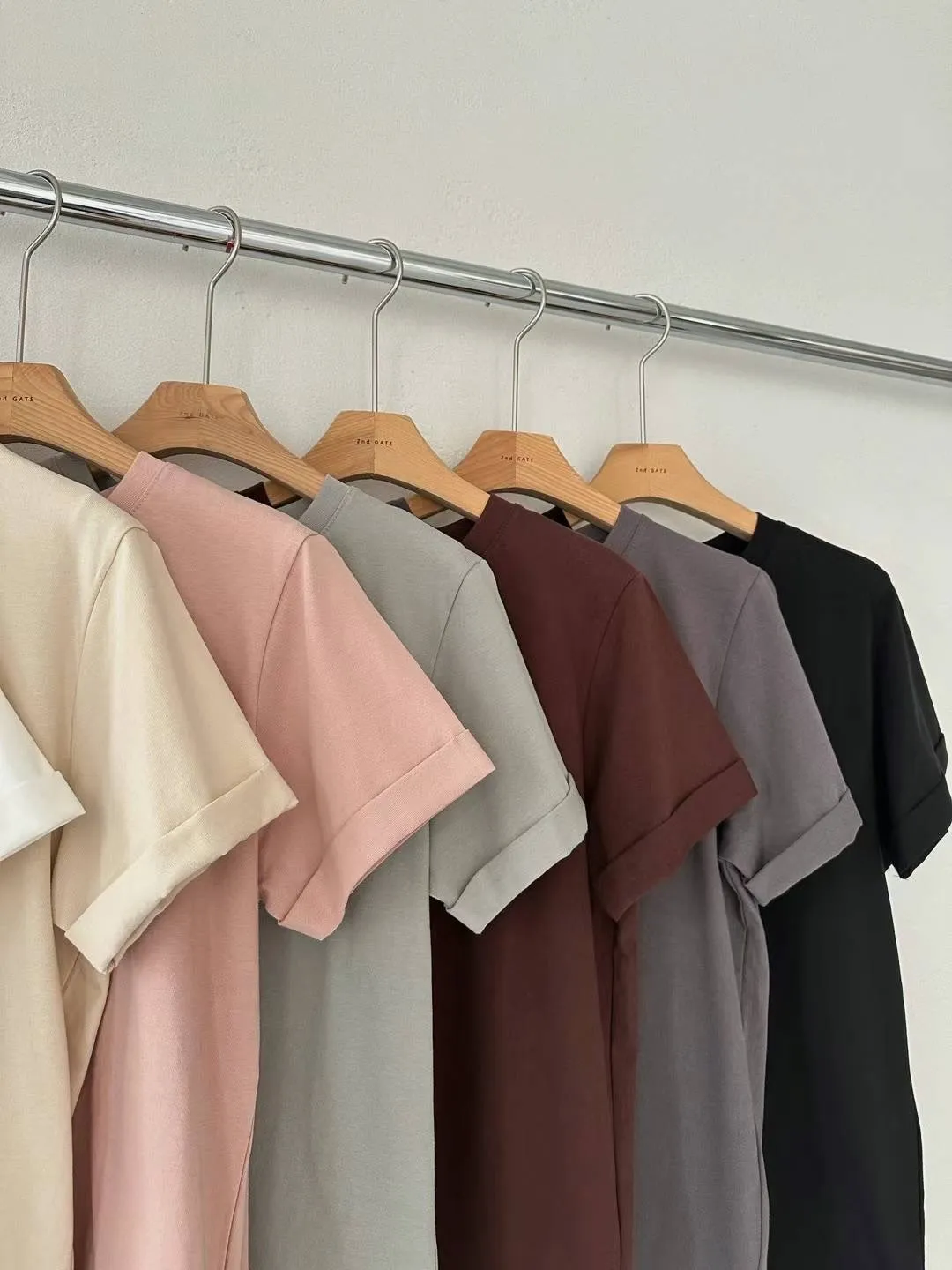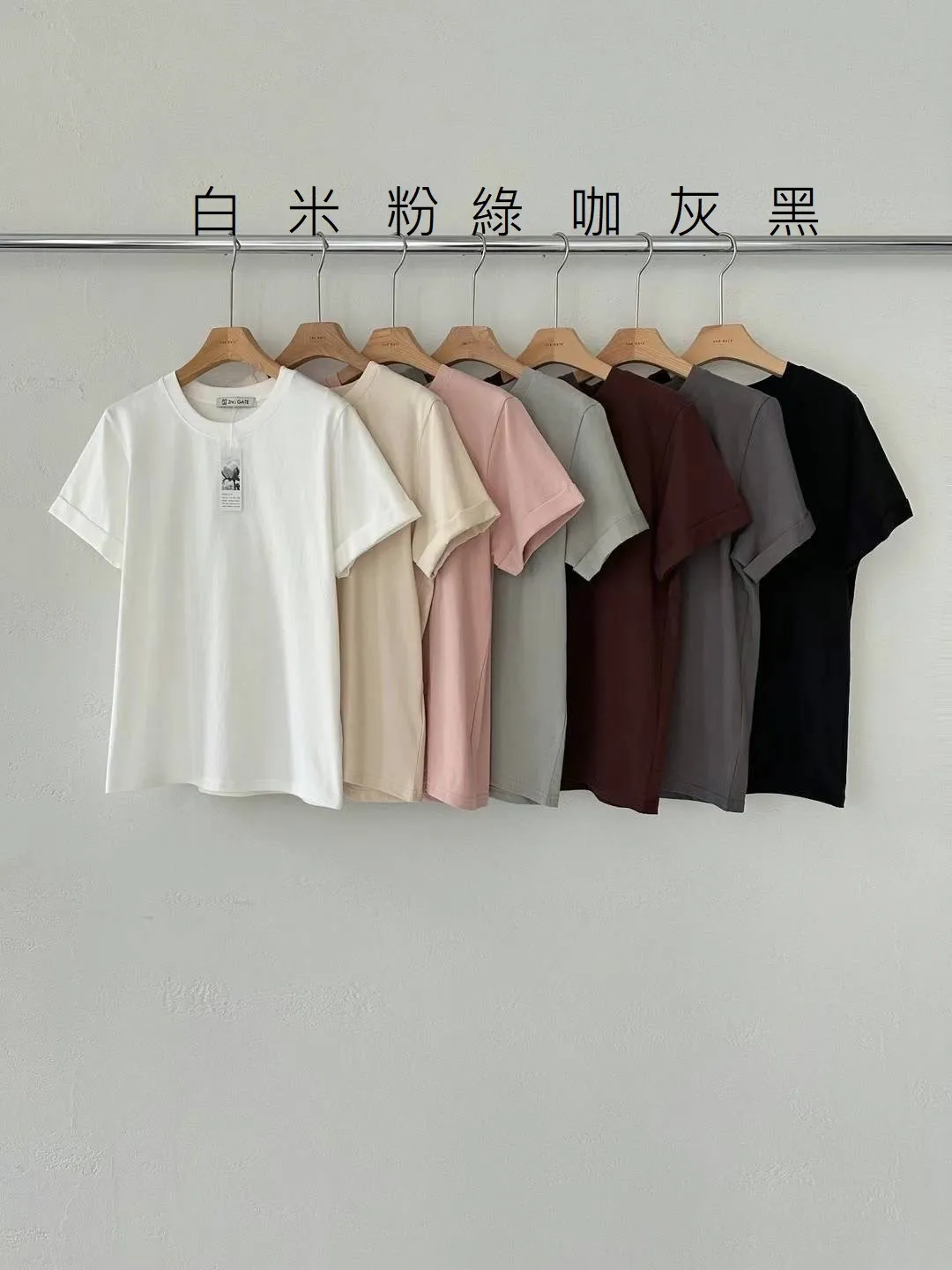 BS050推薦款高級純色反摺短袖Tshirt 白 米 粉 綠 咖 灰 黑 官網價$620 線上價$590