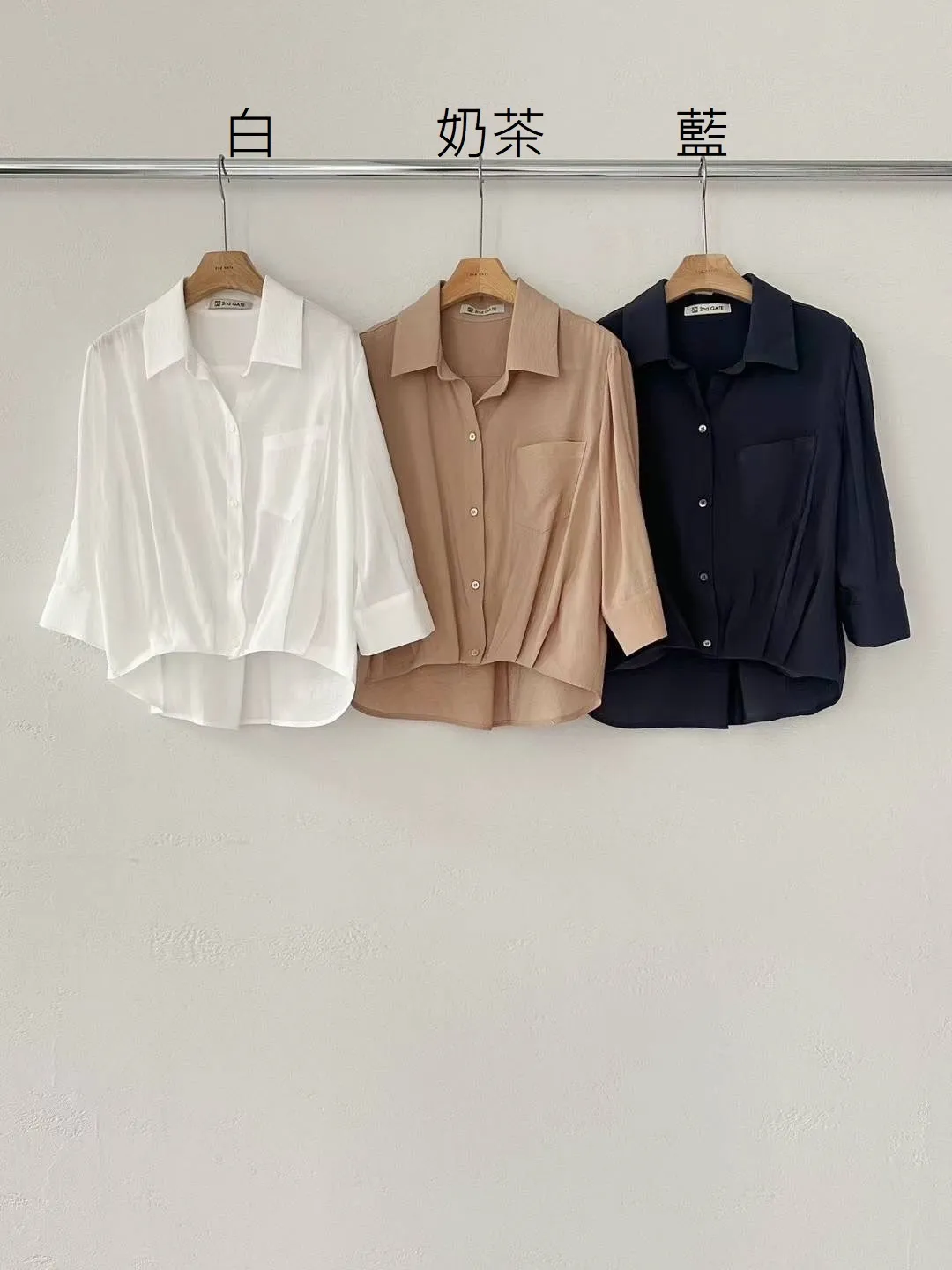BS058推薦款涼感翻領美皺褶上衣 白 藍 奶茶 官網價$1310 線上價$1280