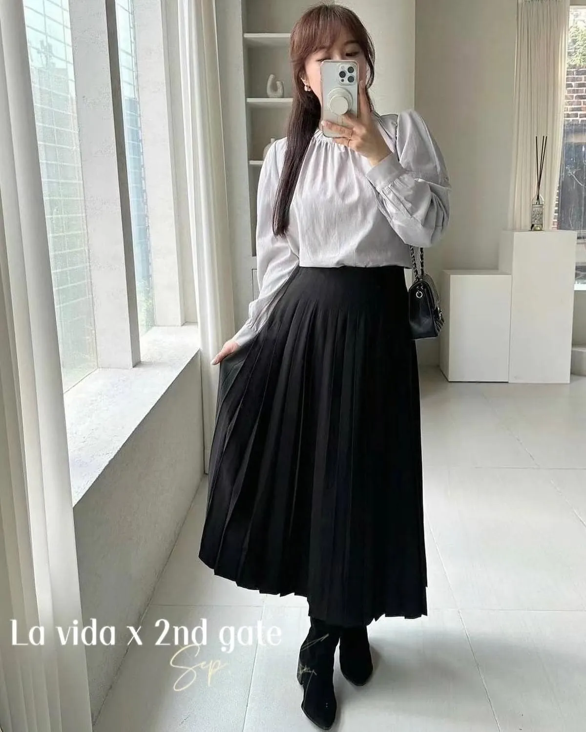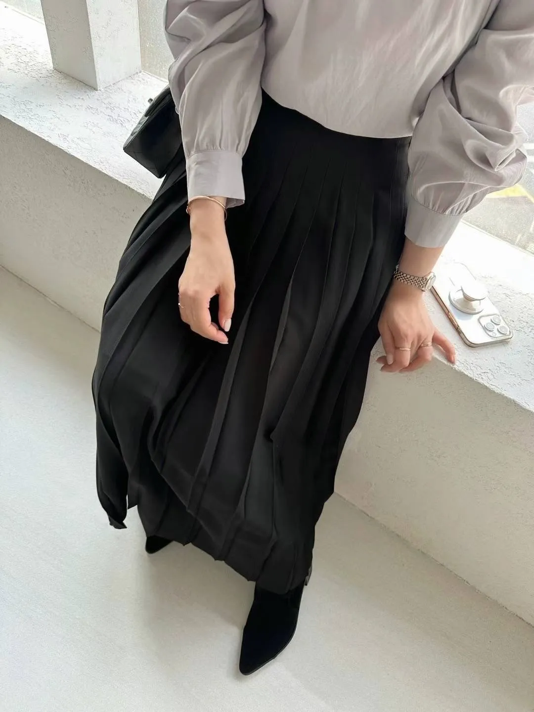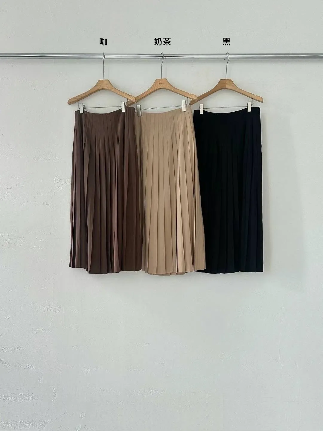 縲縈+聚酯 涼感舒適 細百摺飄逸傘擺 不易皺