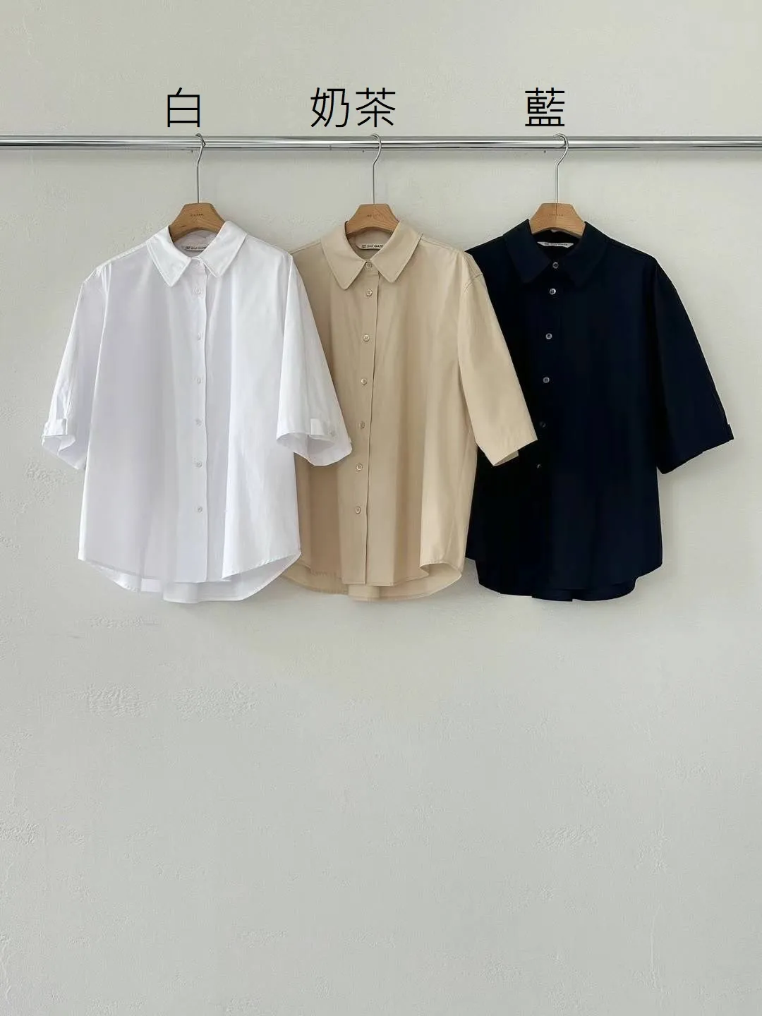 BS073質感日系涼爽短袖襯衫 白 藍 奶茶 官網價$1290 線上價$1260