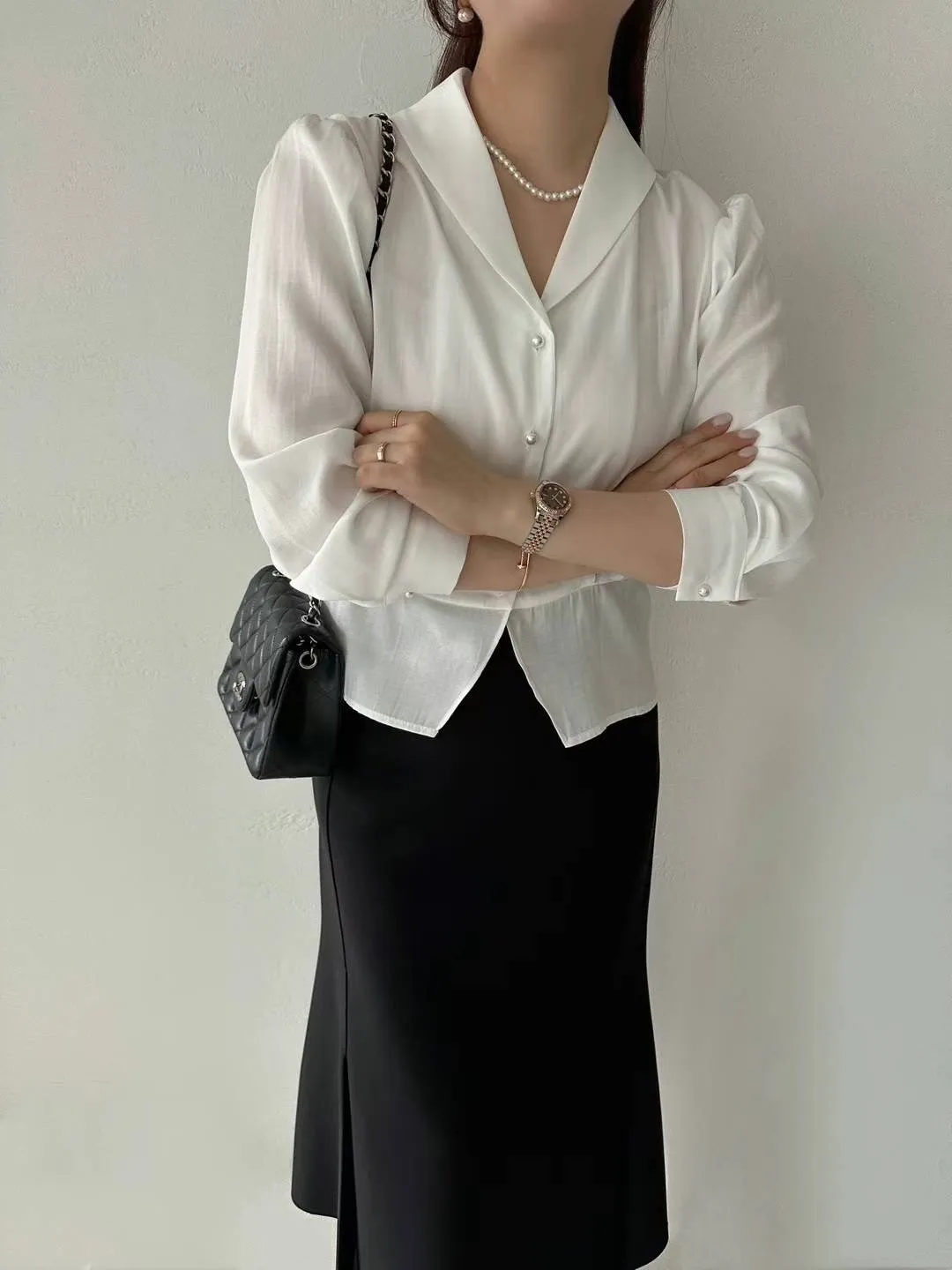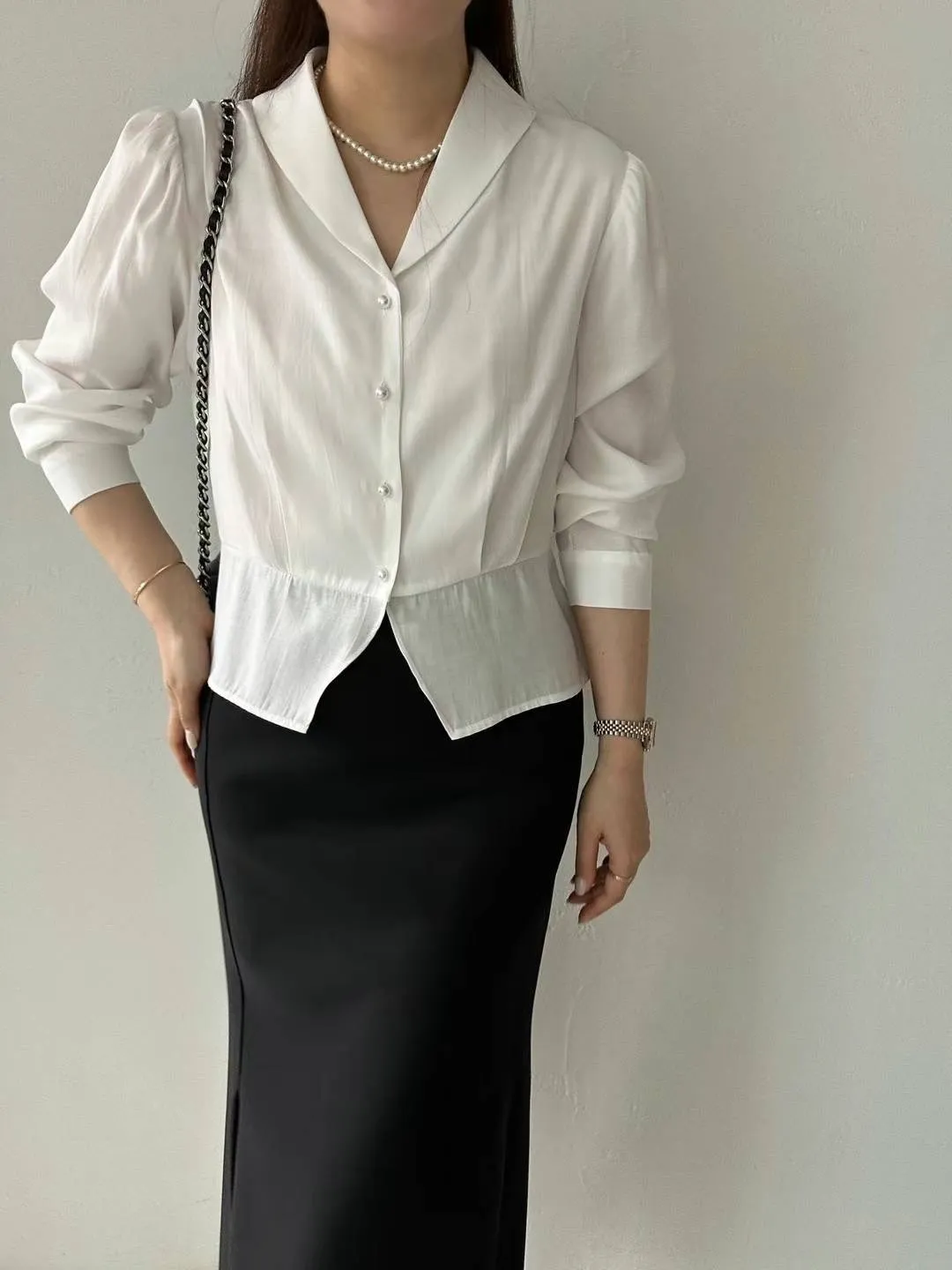 縲縈+聚酯 滑順觸感 珍珠光澤釦 不易皺 穿到M號