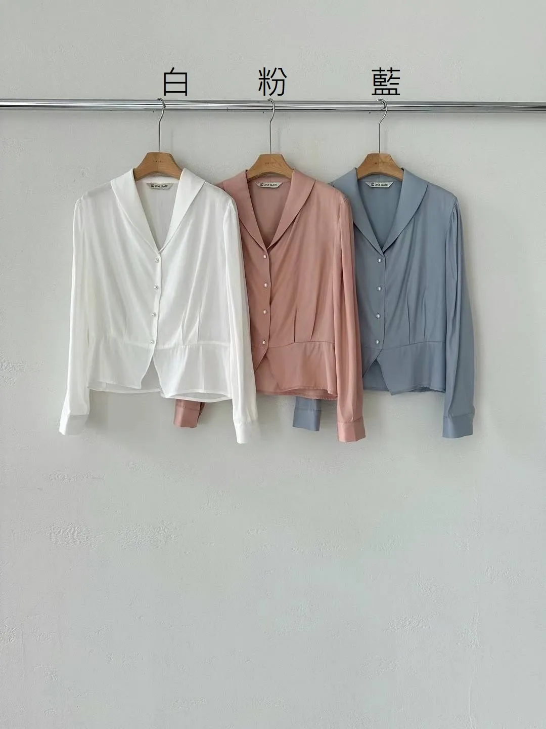 BS078氣質光澤感細腰翻領美衣 白 粉 藍 官網價$1220 線上價$1190