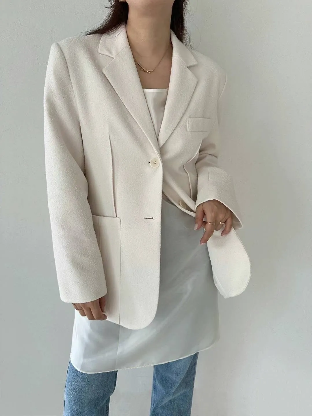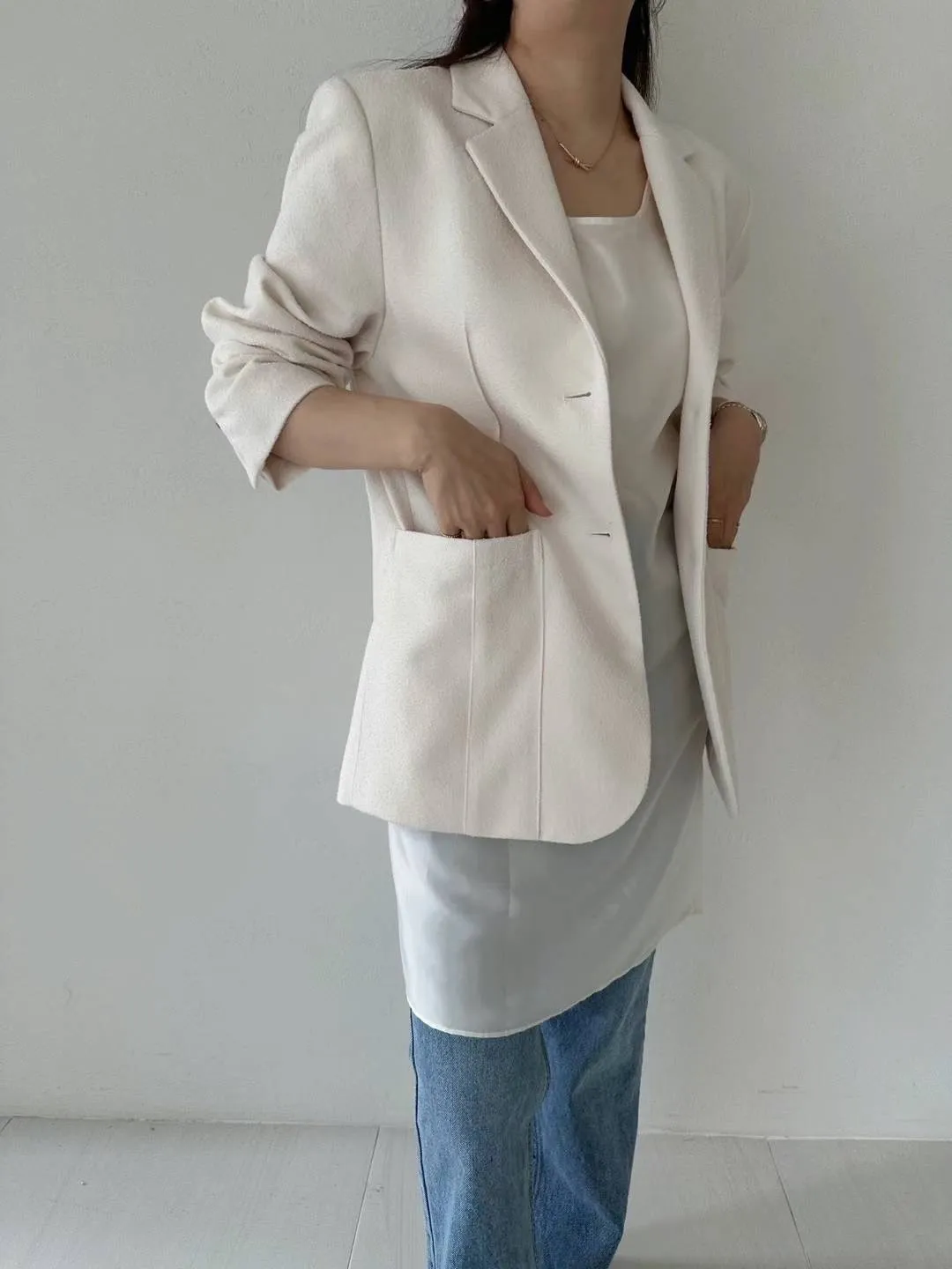 聚酯+縲縈+尼龍 有口袋 雙釦穿脫 手袖印章釦不可開 有內理 微墊肩