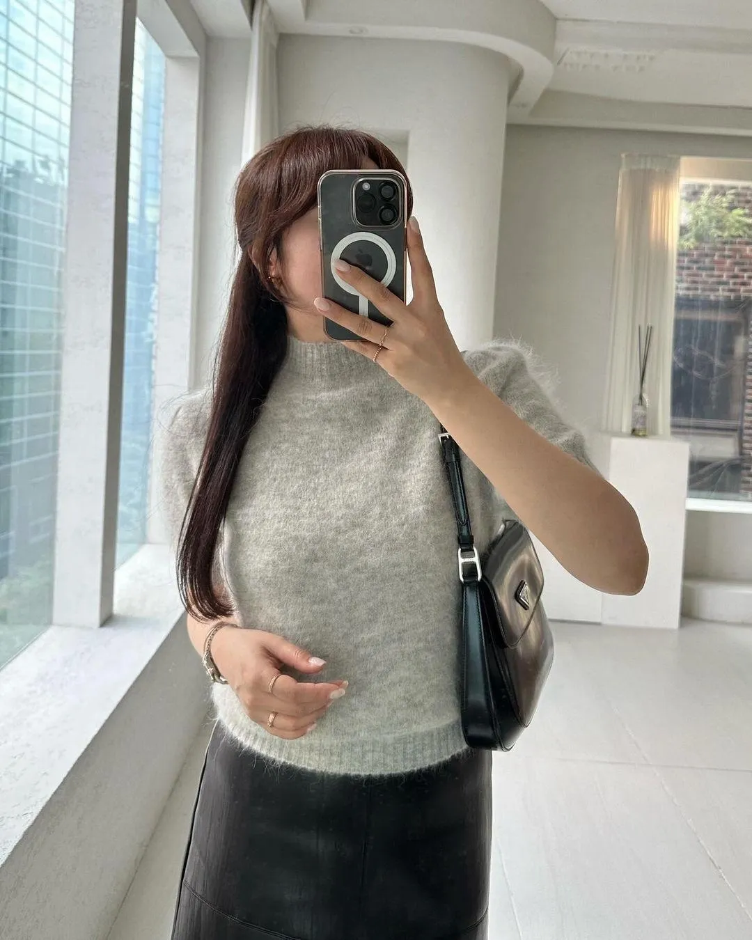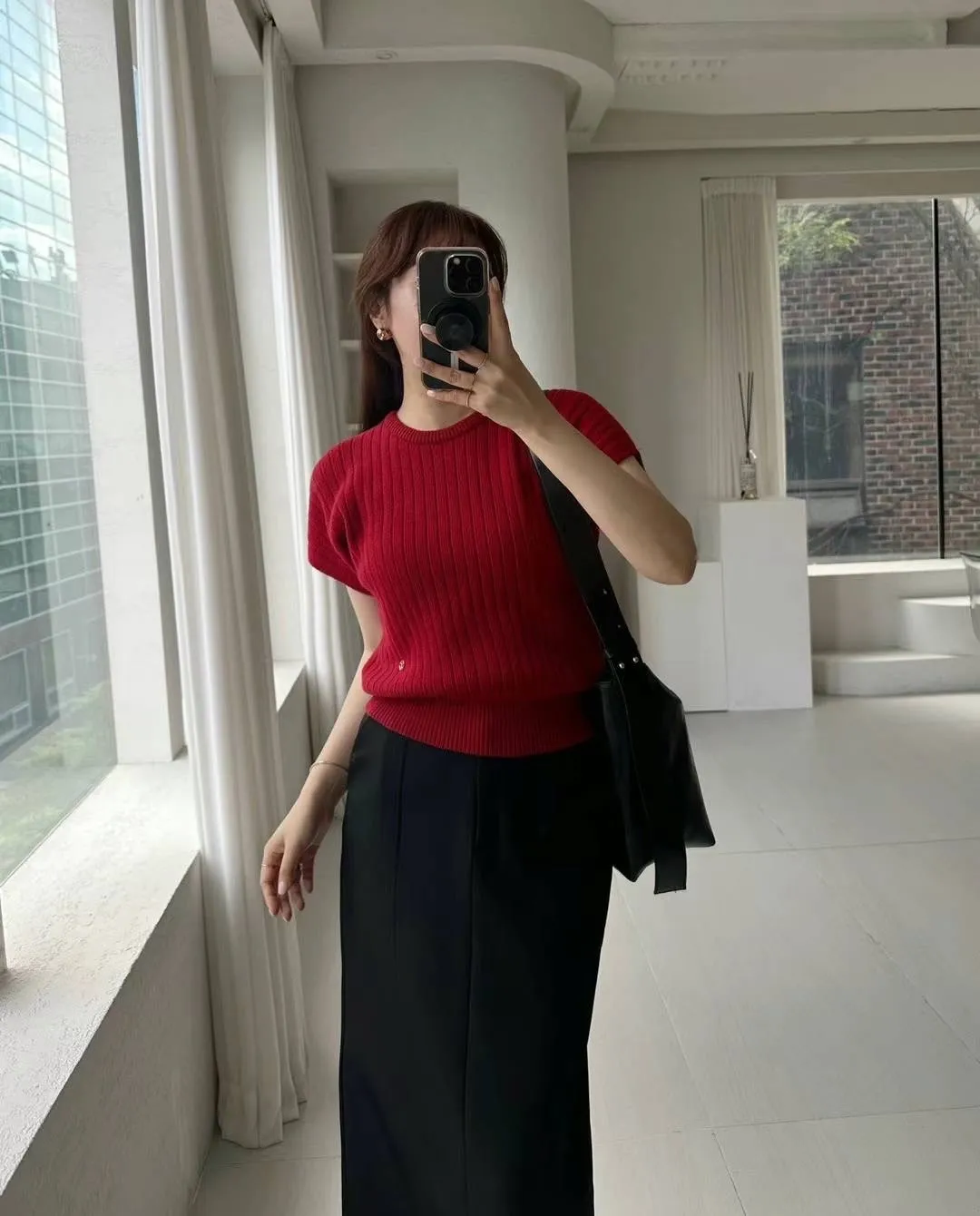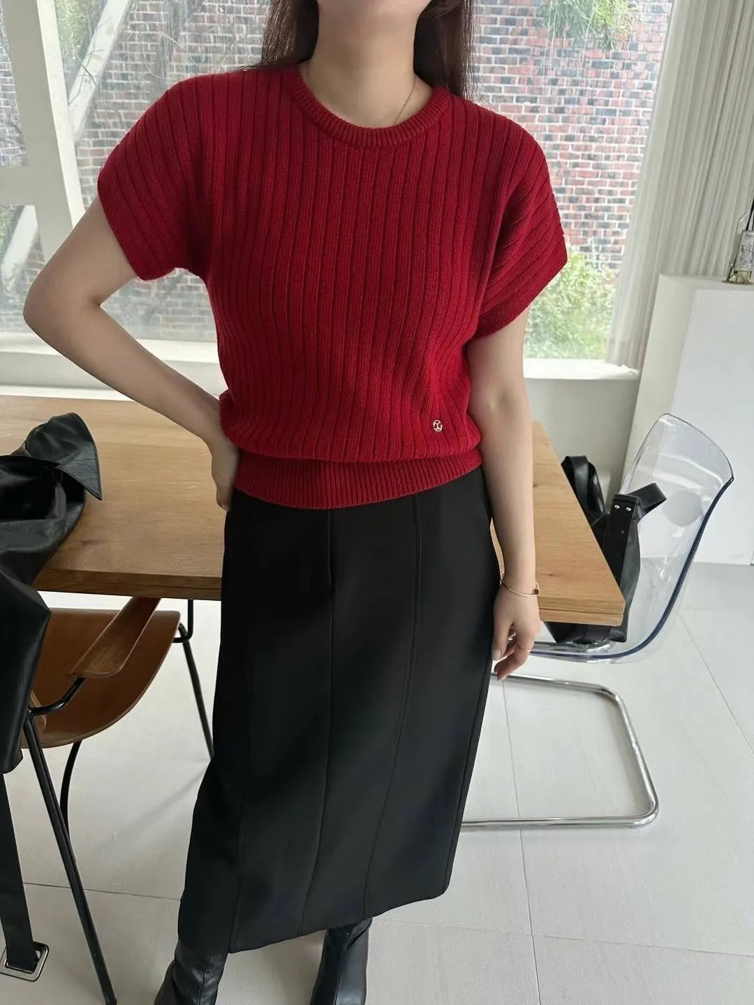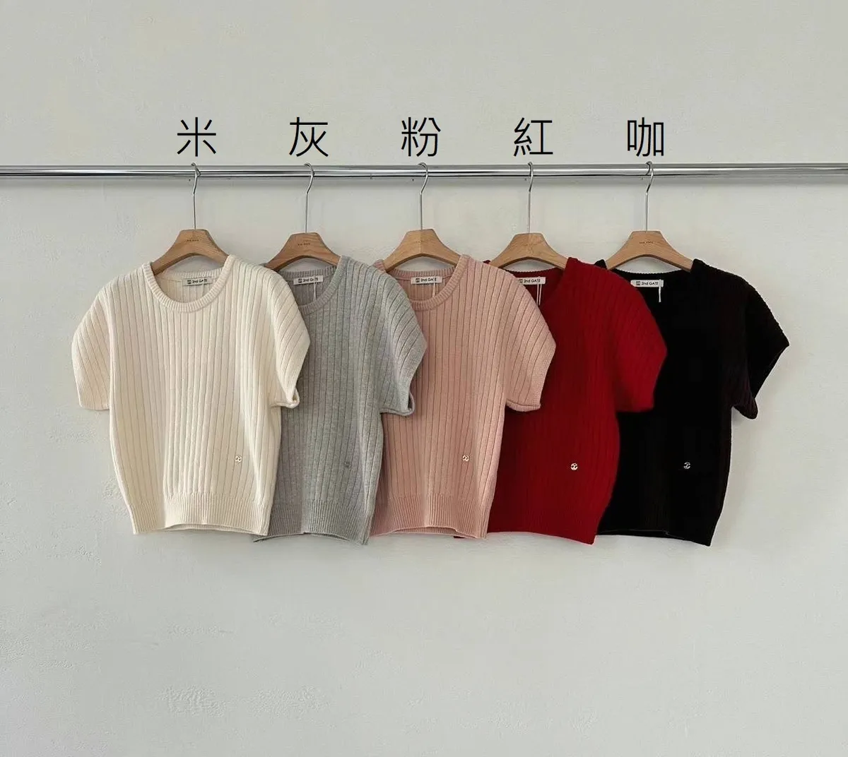 BS081羊毛坑條短袖上衣 米 灰 粉 紅 咖 官網價$1120 線上價$1090