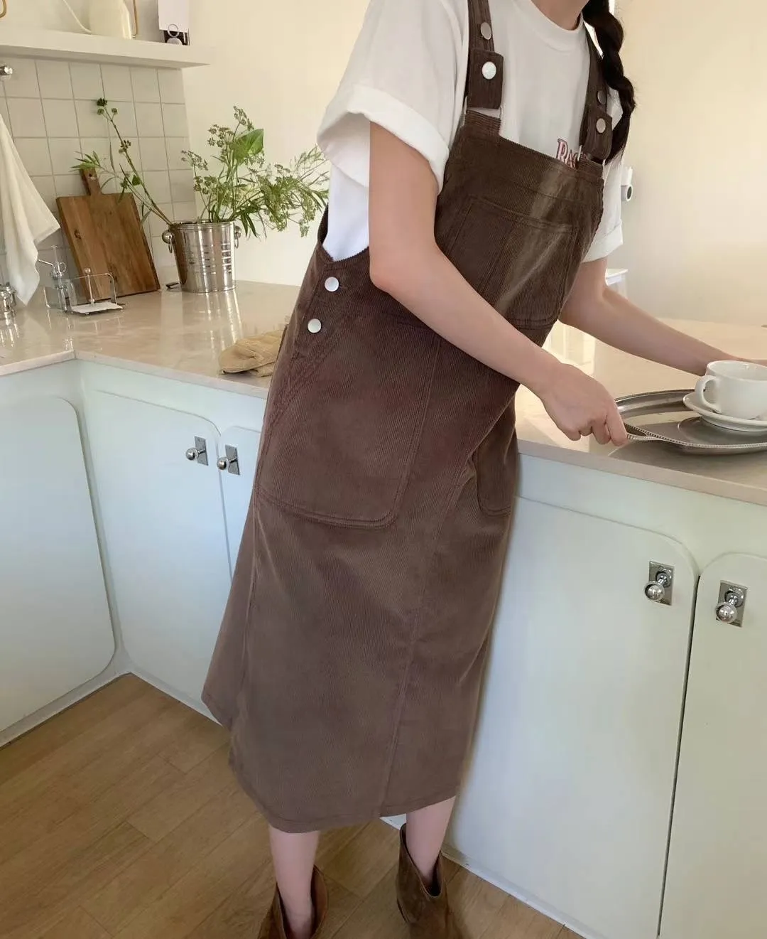 棉 肩帶可調 有口袋 腰很有空間 側腰有釦 後開叉 穿到小L