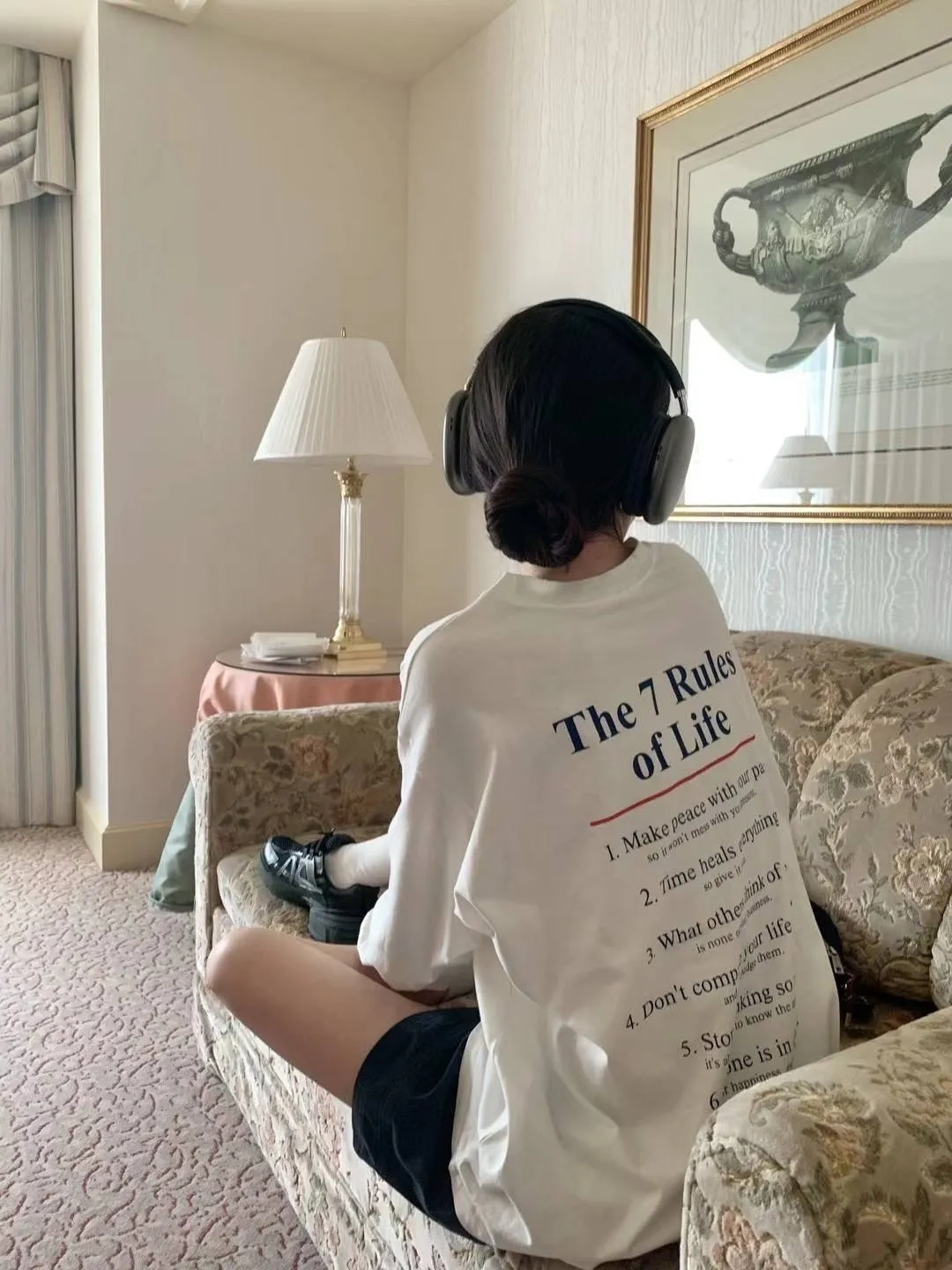 棉 薄款 輕盈舒適 落肩寬鬆舒適 背後英文字 適合夏天