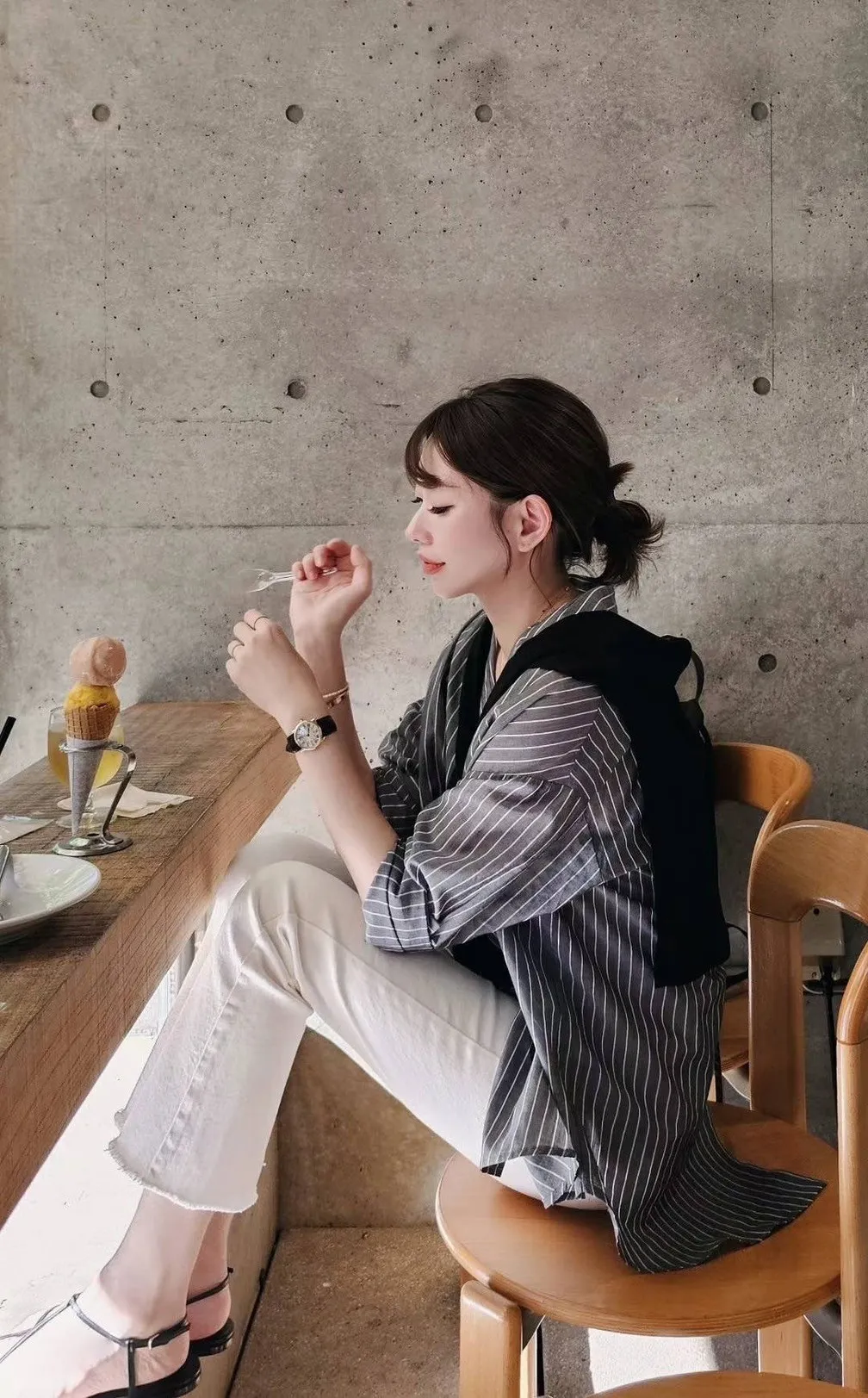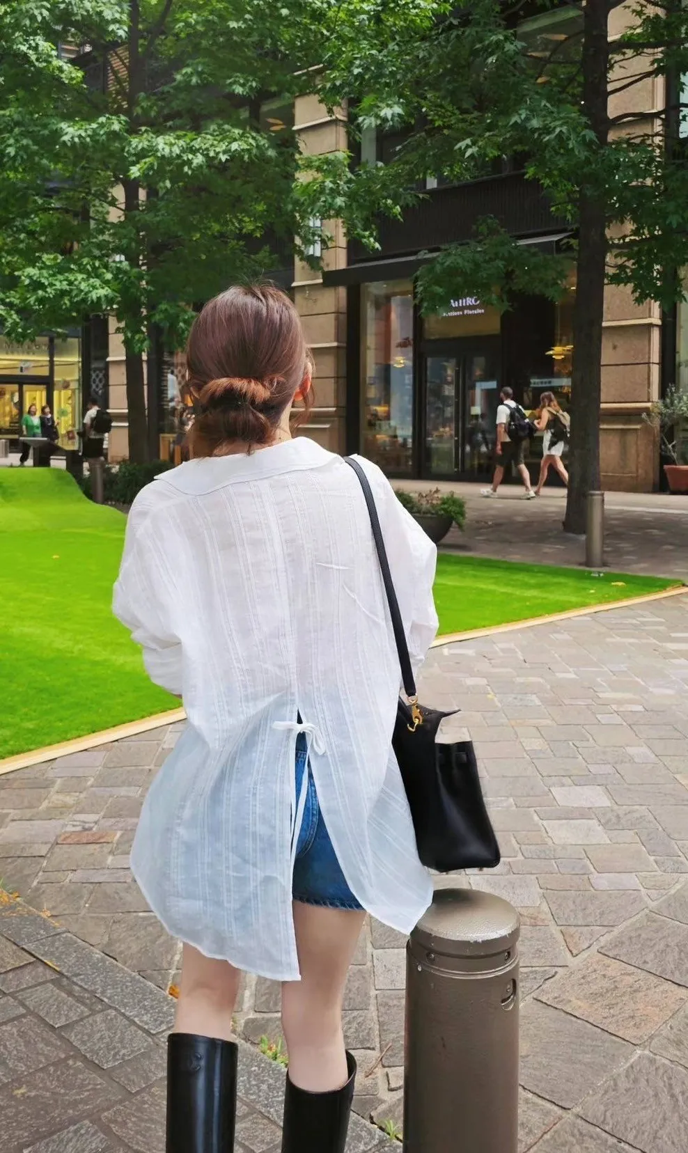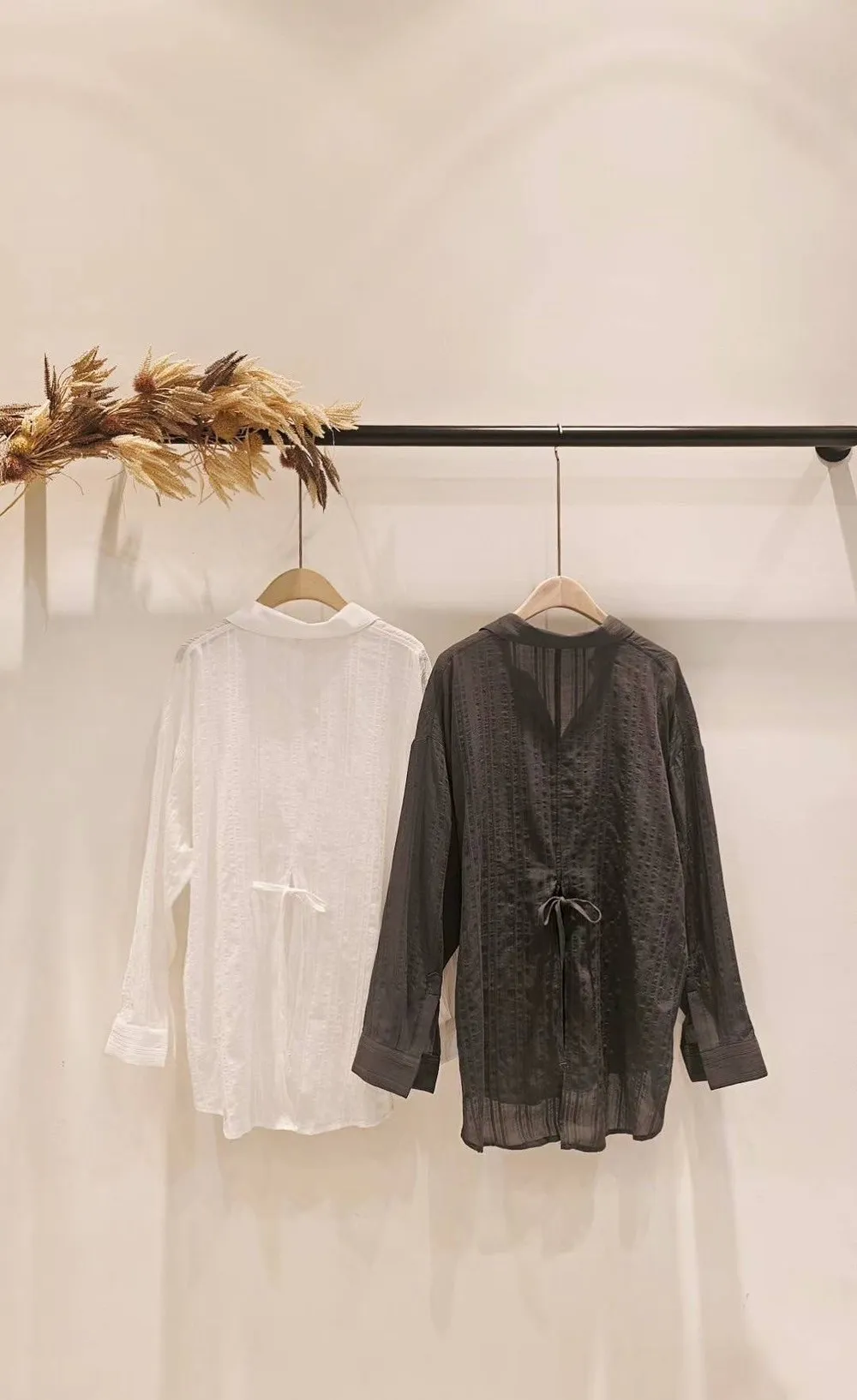 天絲60%+棉 柔軟舒適 細緻天絲紋 輕盈薄款 後腰綁帶開叉 宋慧喬同款