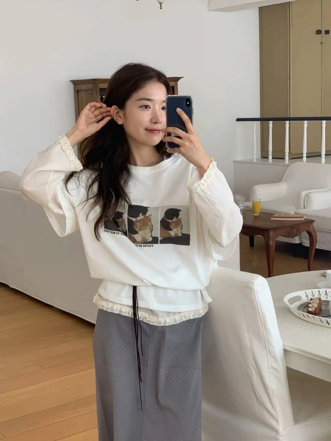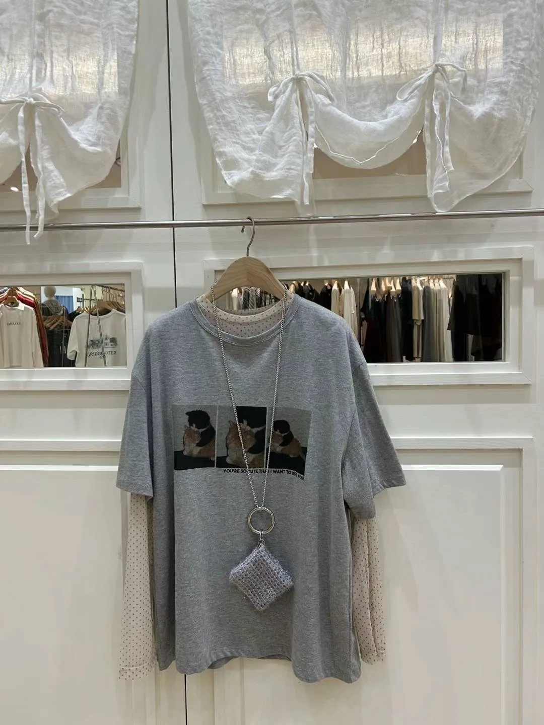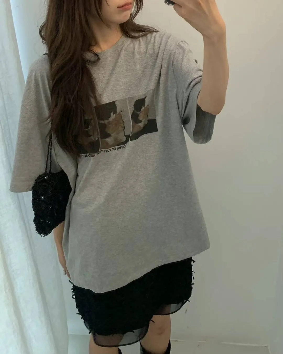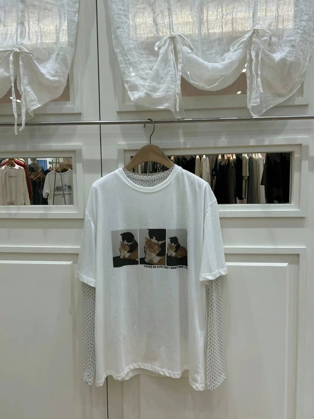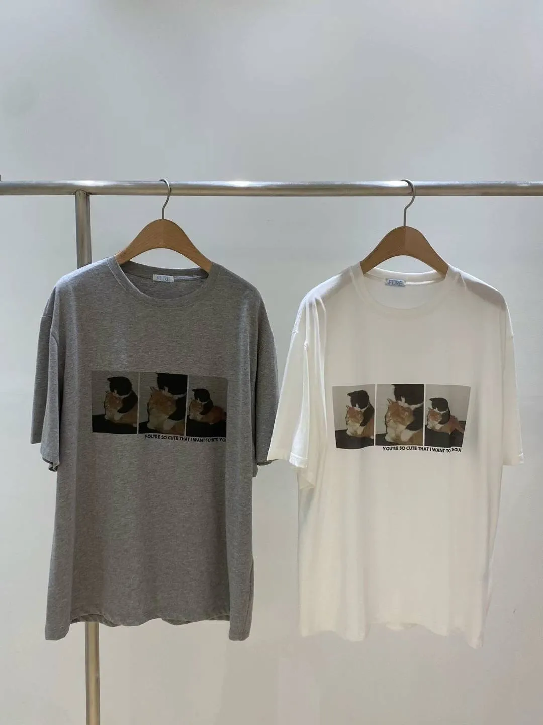 BS310可愛貓咪抱抱短袖Tshirt 白 灰 官網價$729 線上價$699