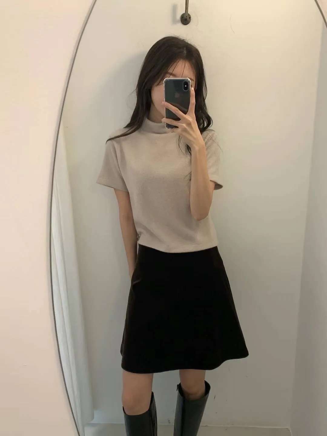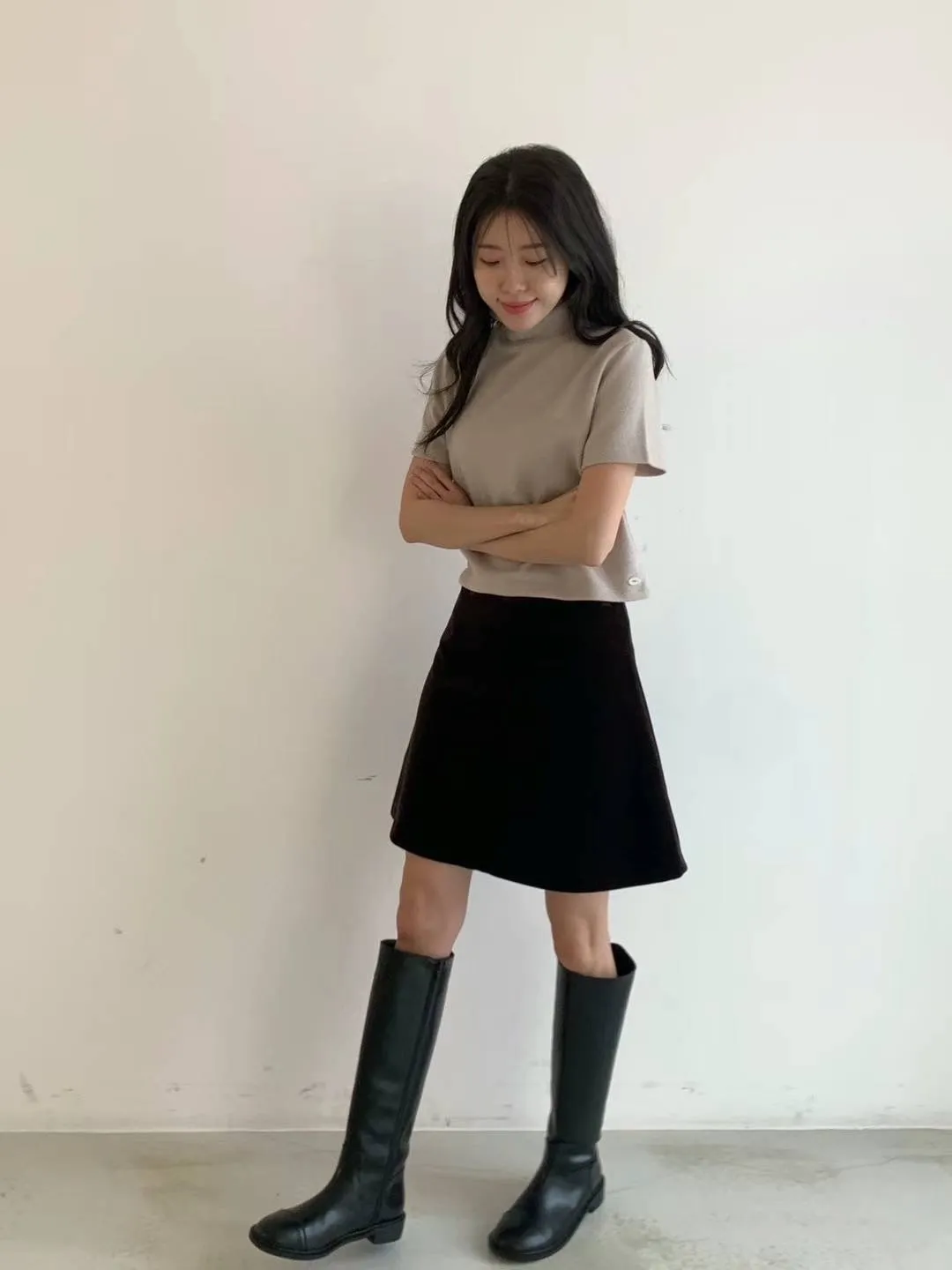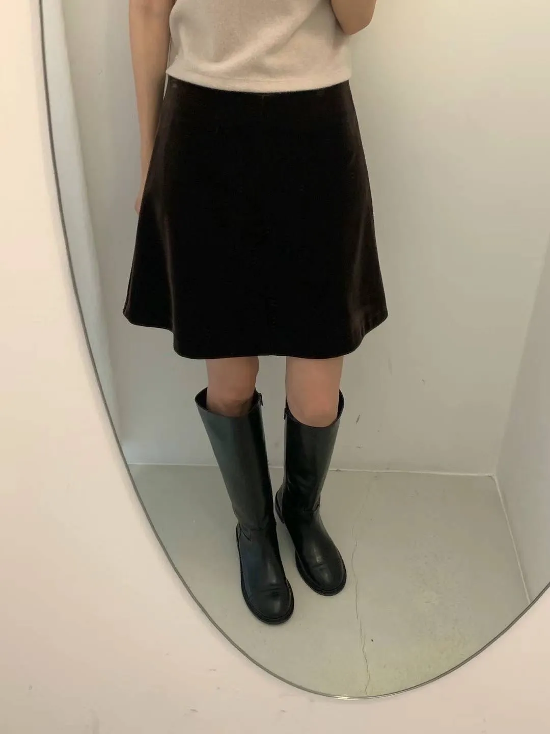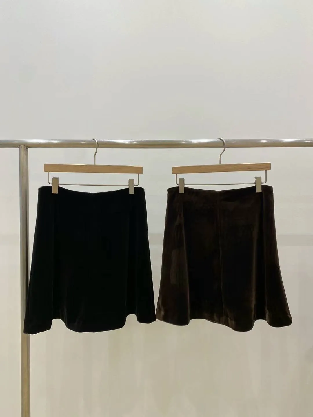BS319天鵝絨質感微光澤裙子 咖 黑 S M 官網價$980 線上價$950
