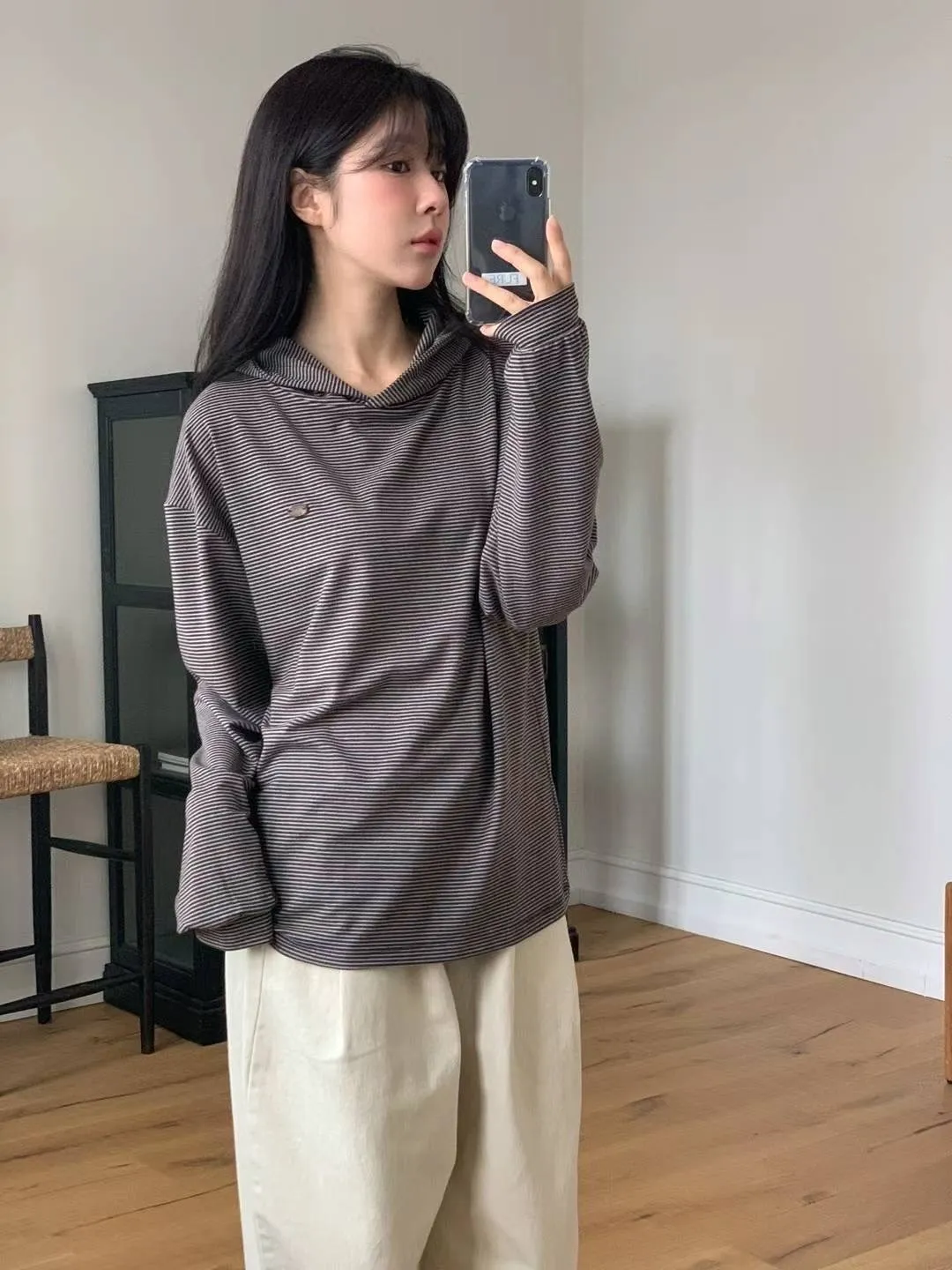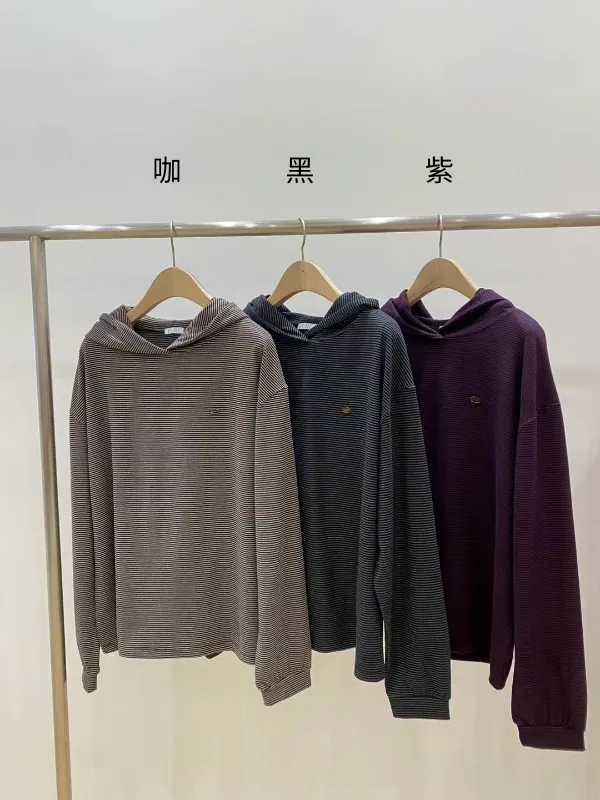 BS320細緻條紋軟綿綿好舒服小標帽T 咖 黑 紫 官網價$950 線上價$920