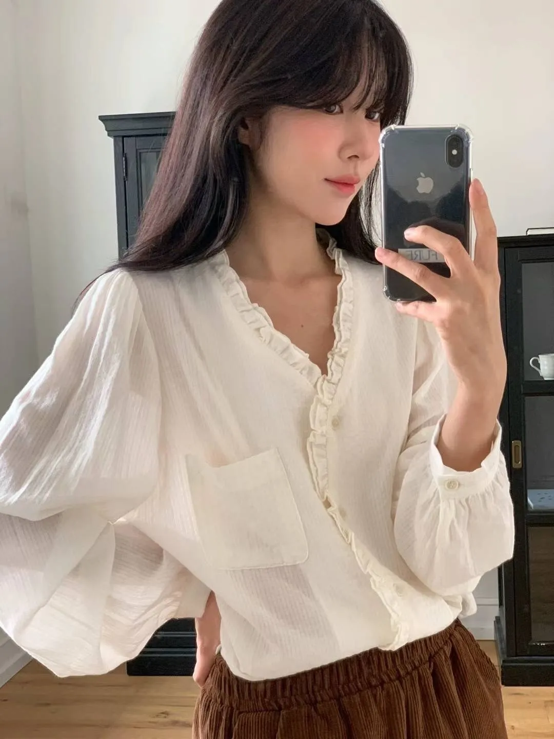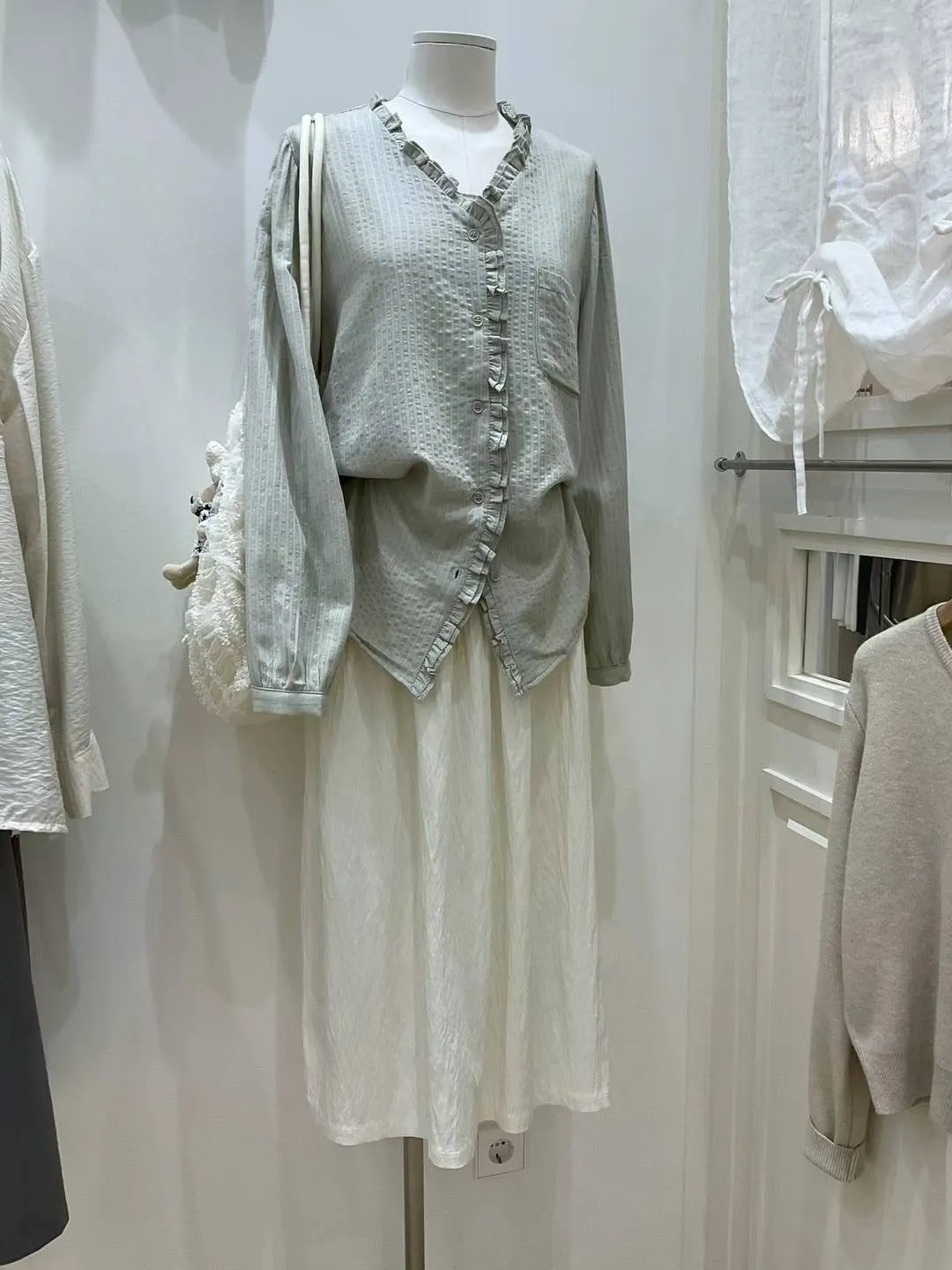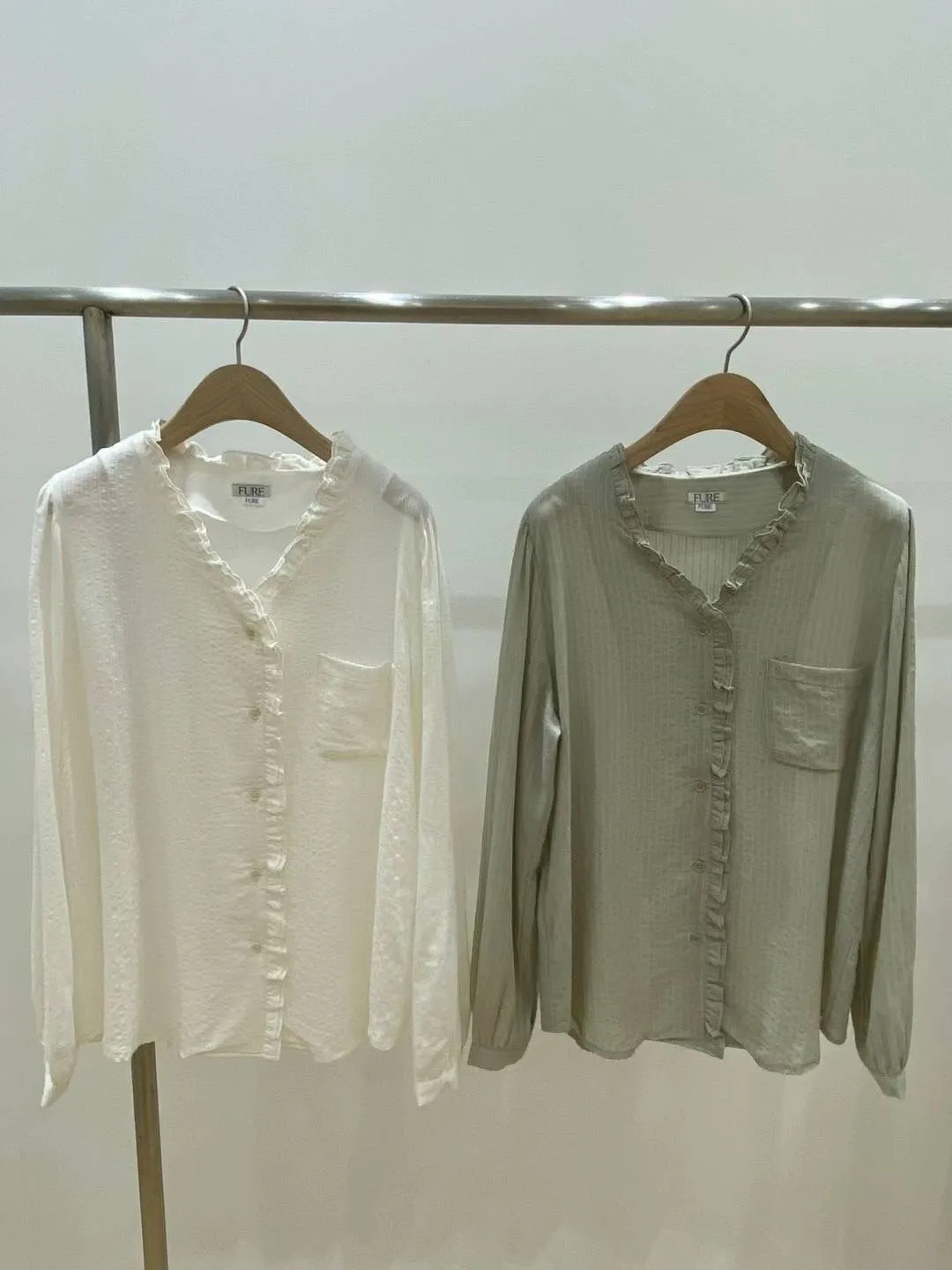 BS333特價花朵領單口袋氣質上衣 米 綠 原價$990 特價$690