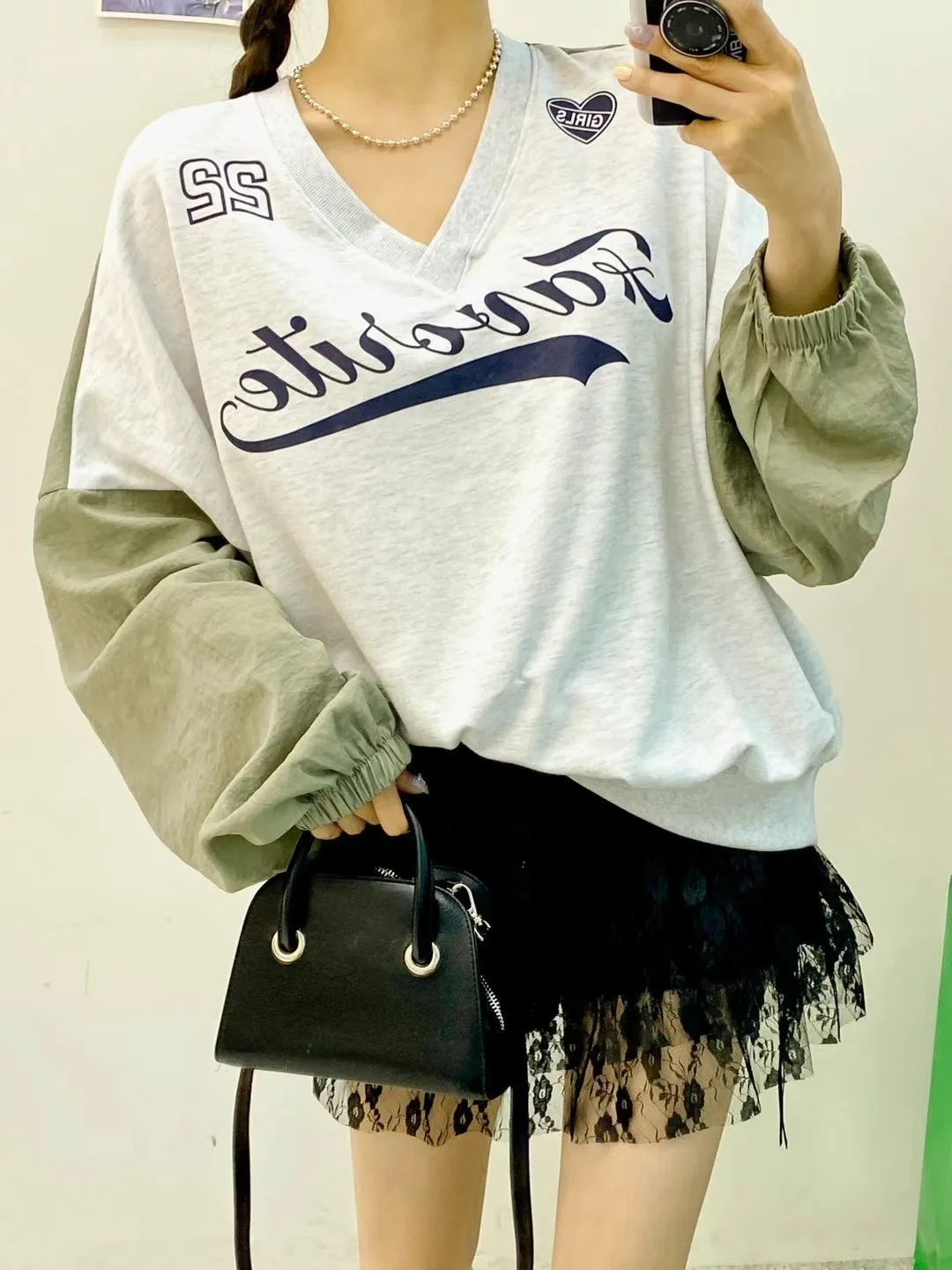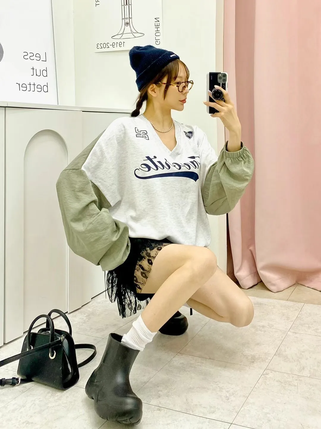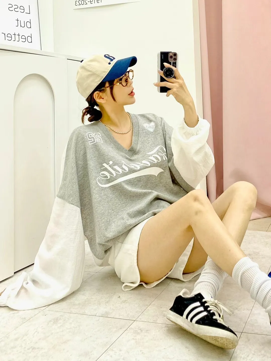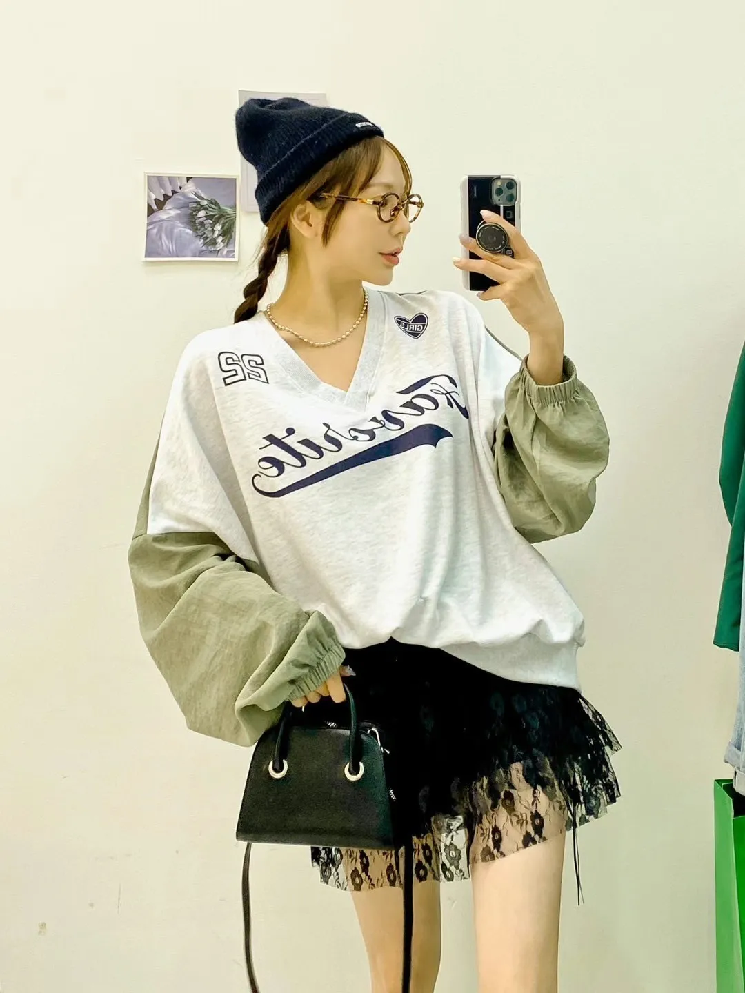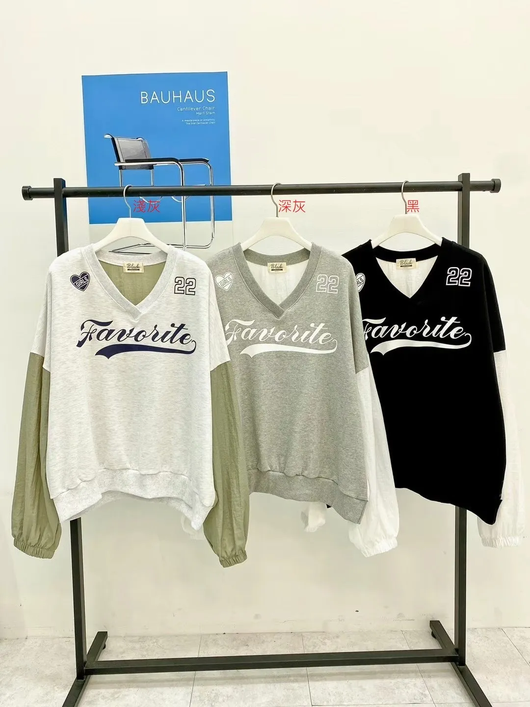 BS341運動風V領拼接上衣 淺灰 深灰 黑 官網價$480 線上價$450
