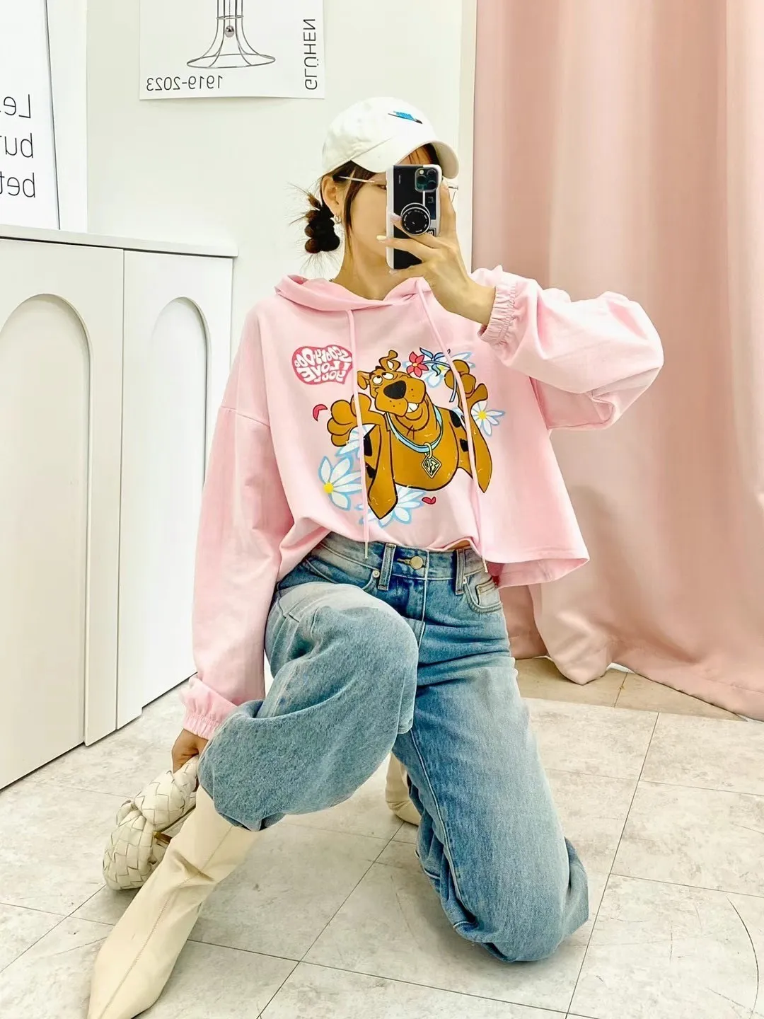 BS343美式狗狗快樂開花帽T 粉 淺灰 深灰 官網價$380 線上價$350