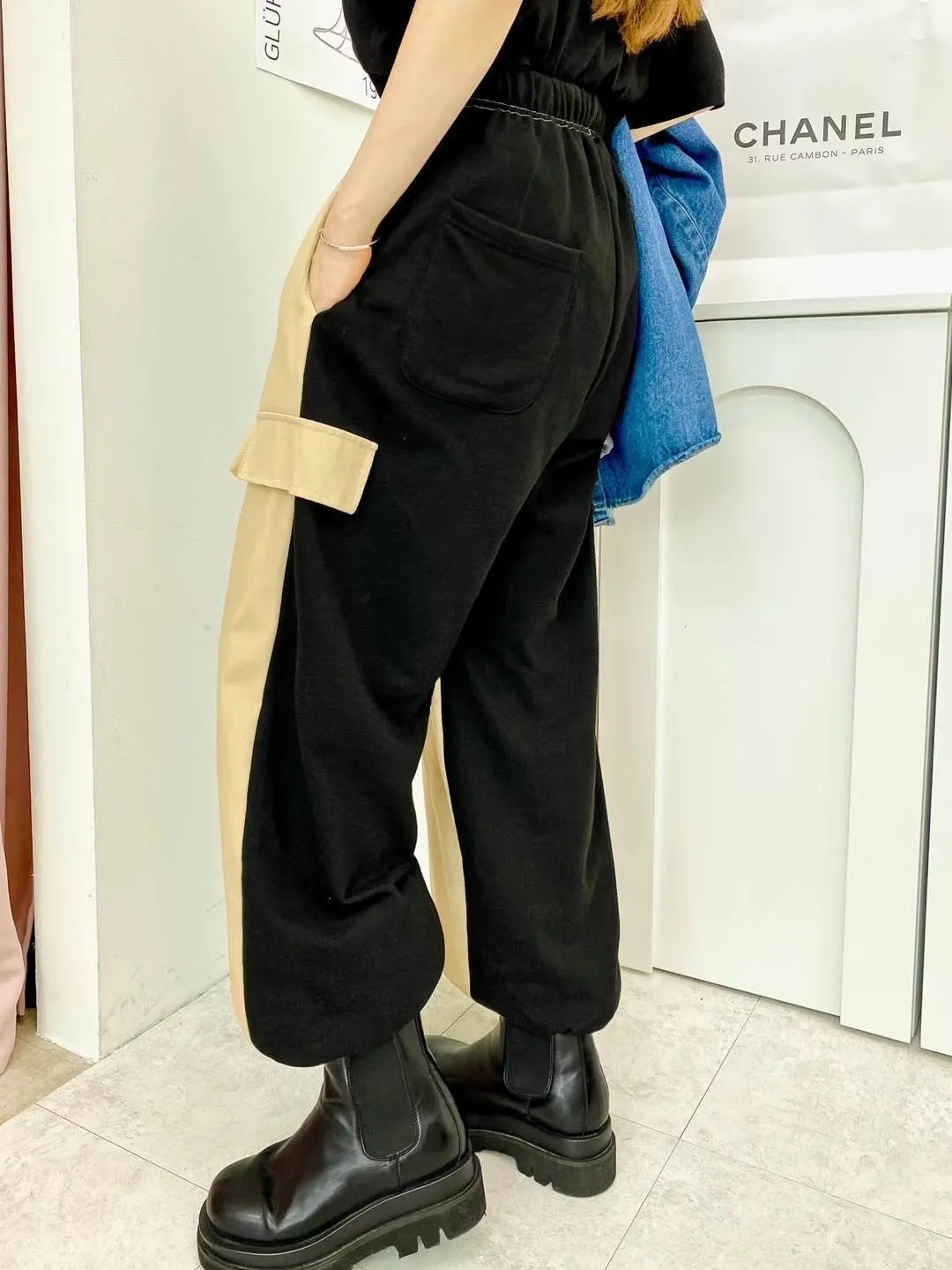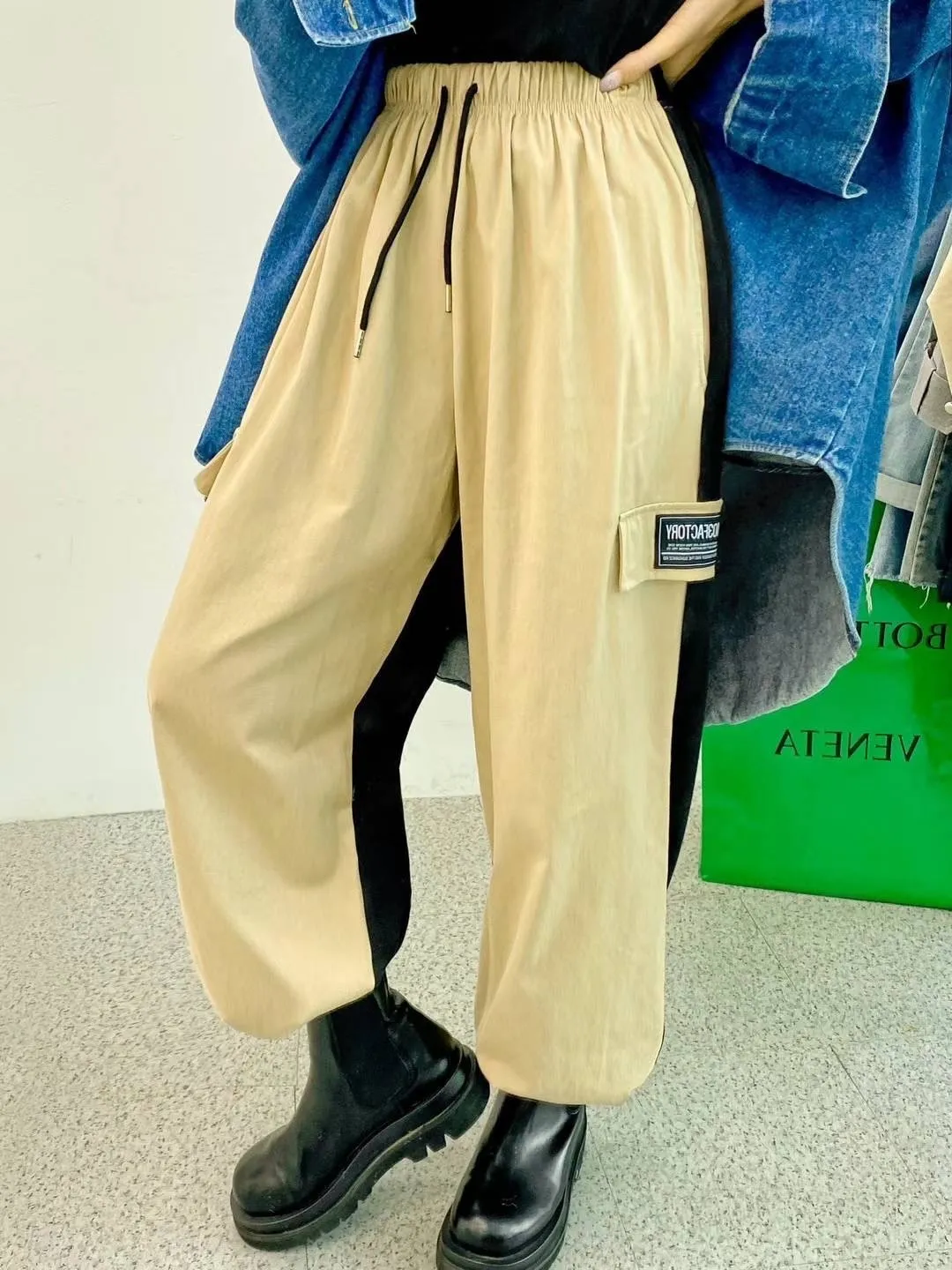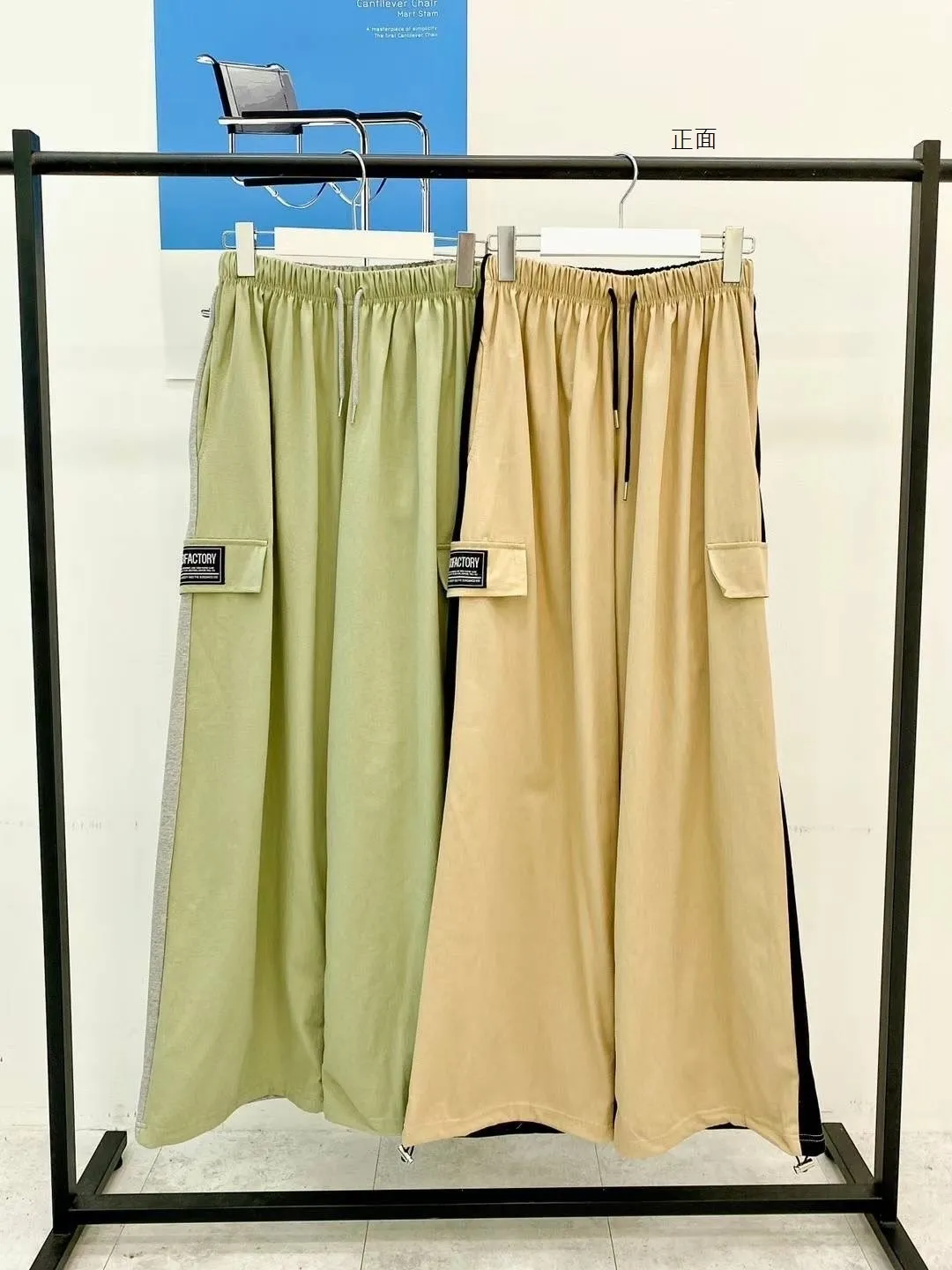 BS345潮流雙拼色工裝長褲(前分色) 綠 奶茶 官網價$729 線上價$699