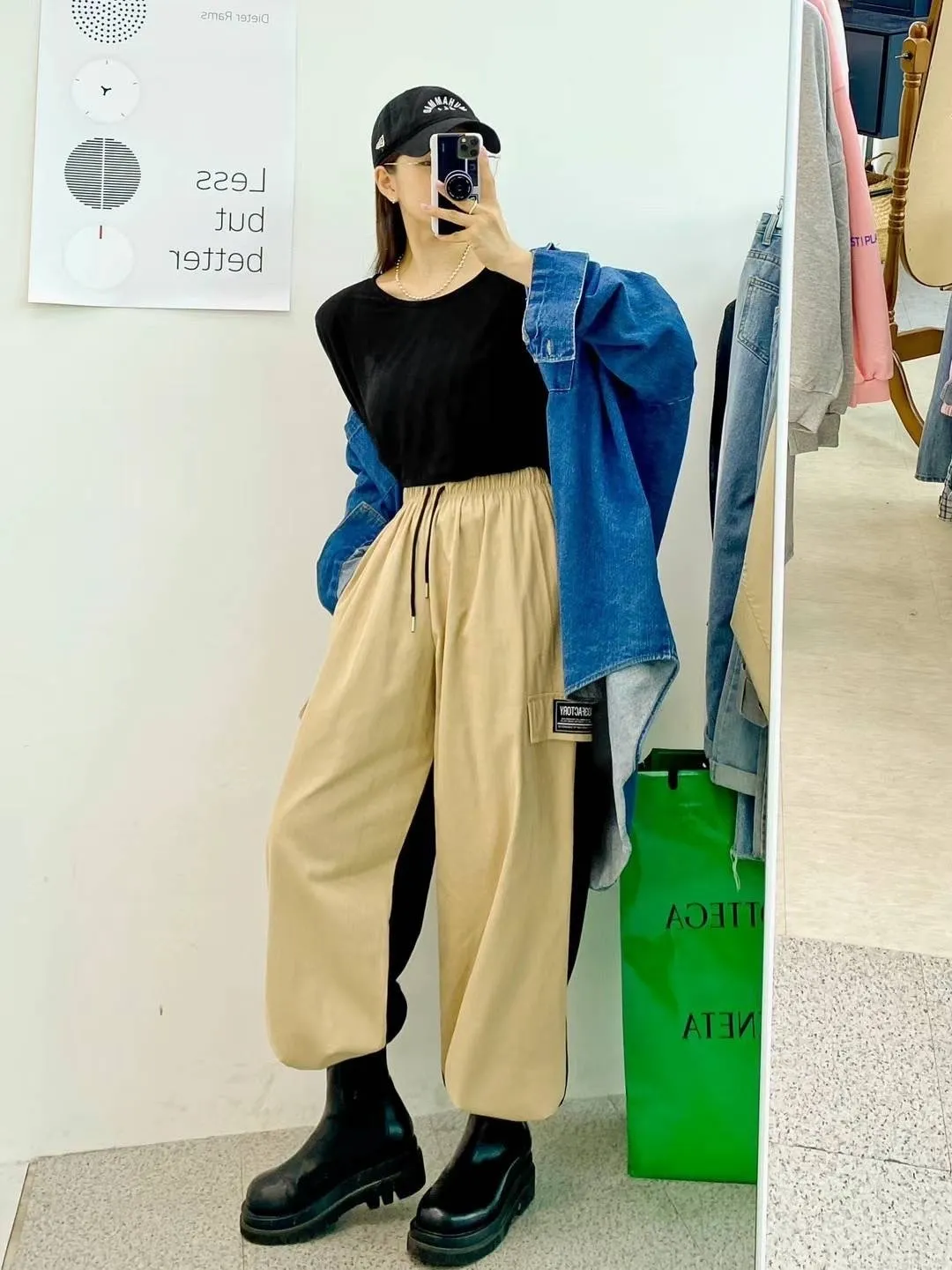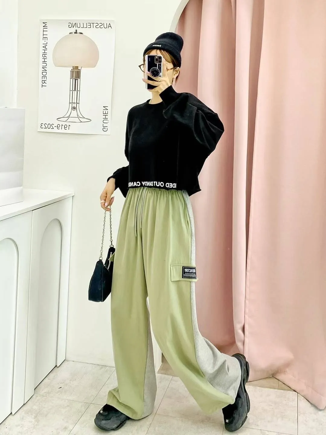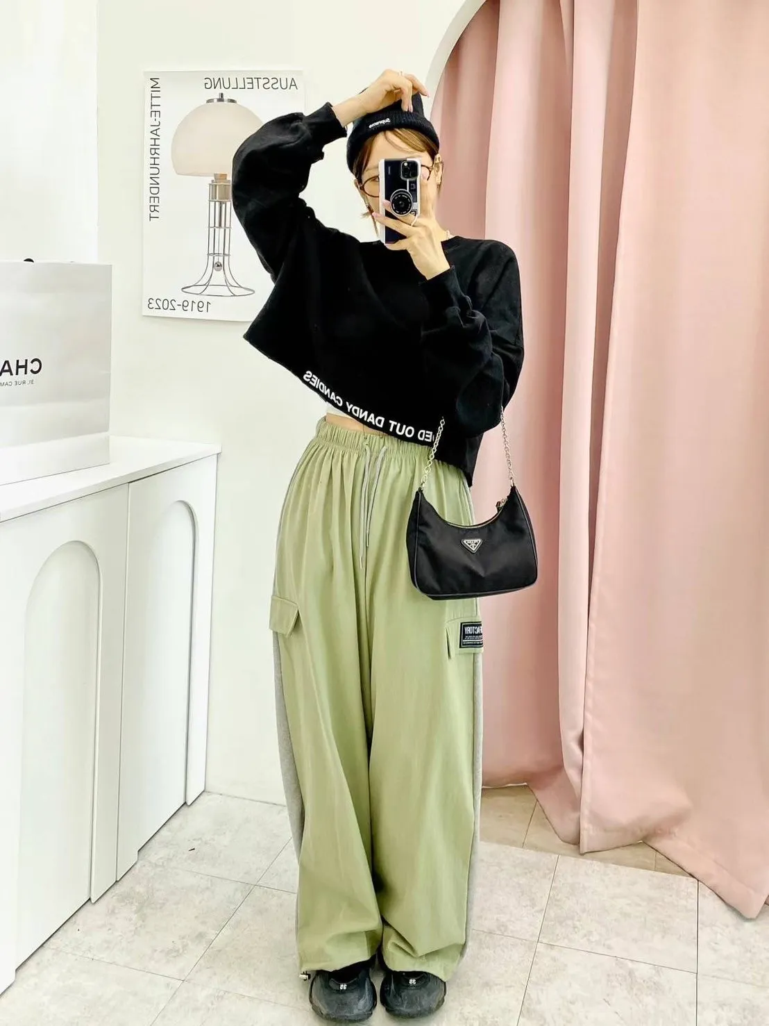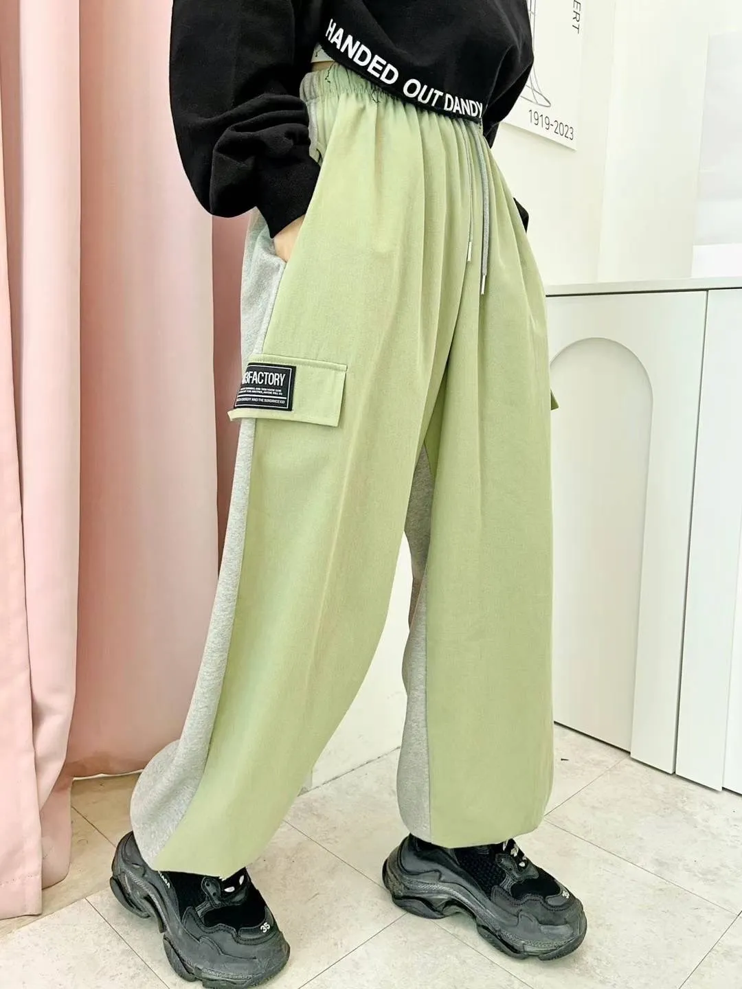 BS345潮流雙拼色工裝長褲(前分色) 綠 奶茶 官網價$729 線上價$699