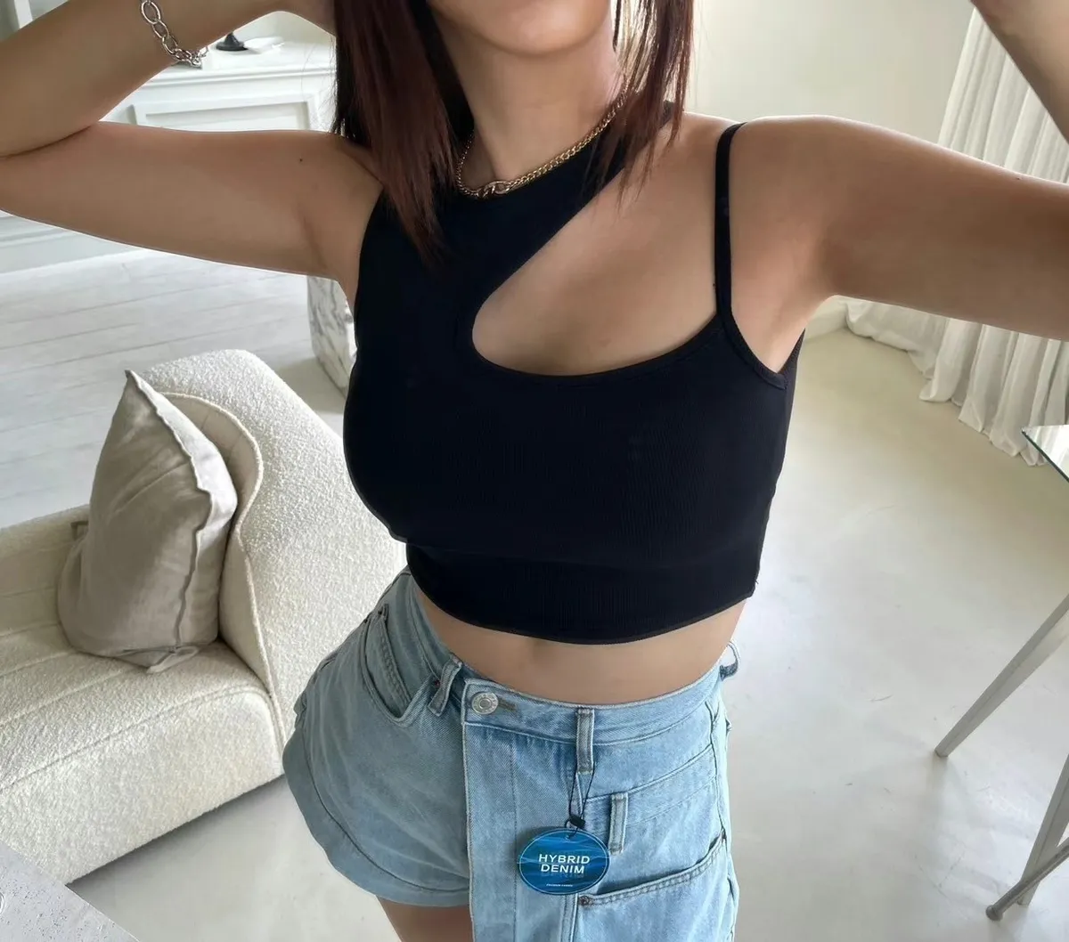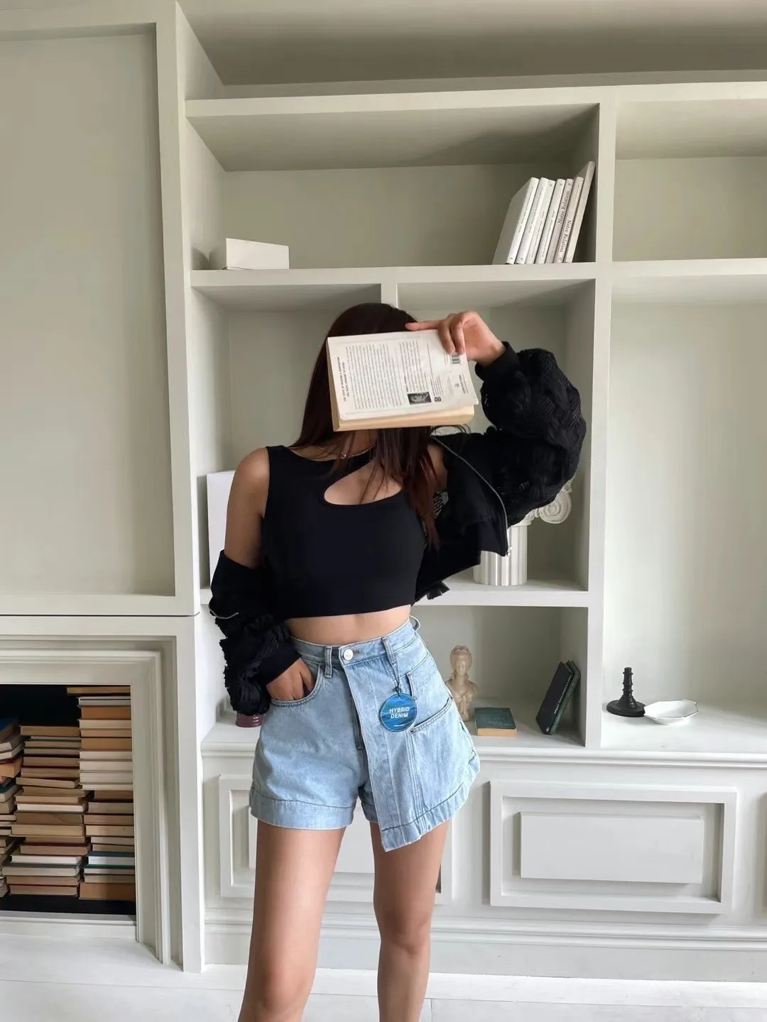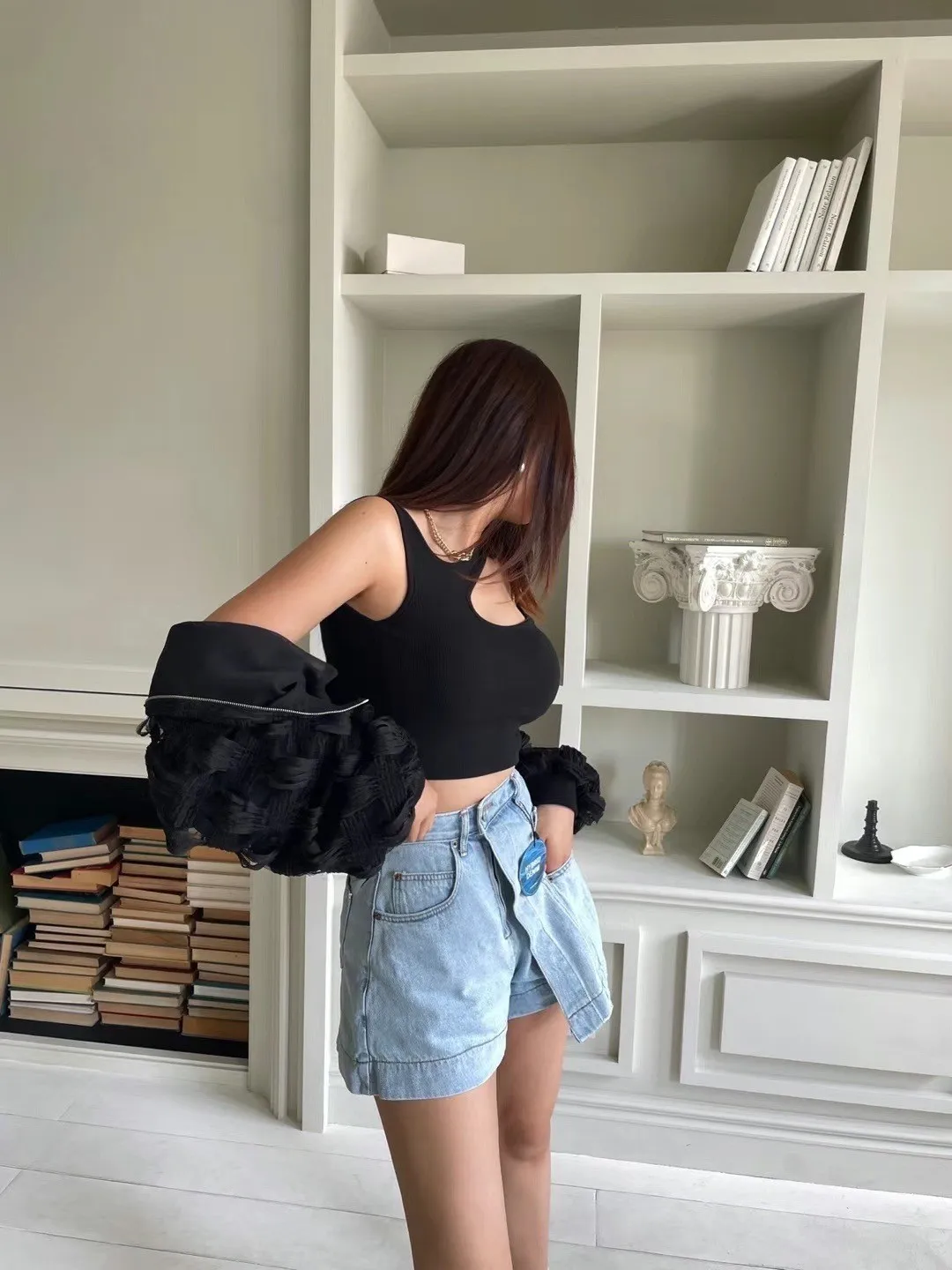 BS369清爽淺藍斜釦層次設計牛仔短褲 S M L 官網價$1129 線上價$1099