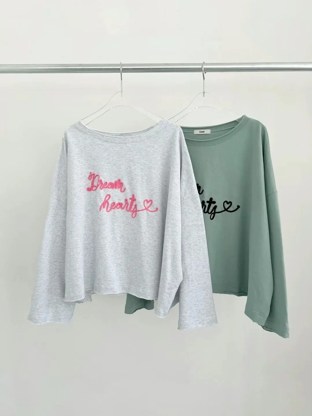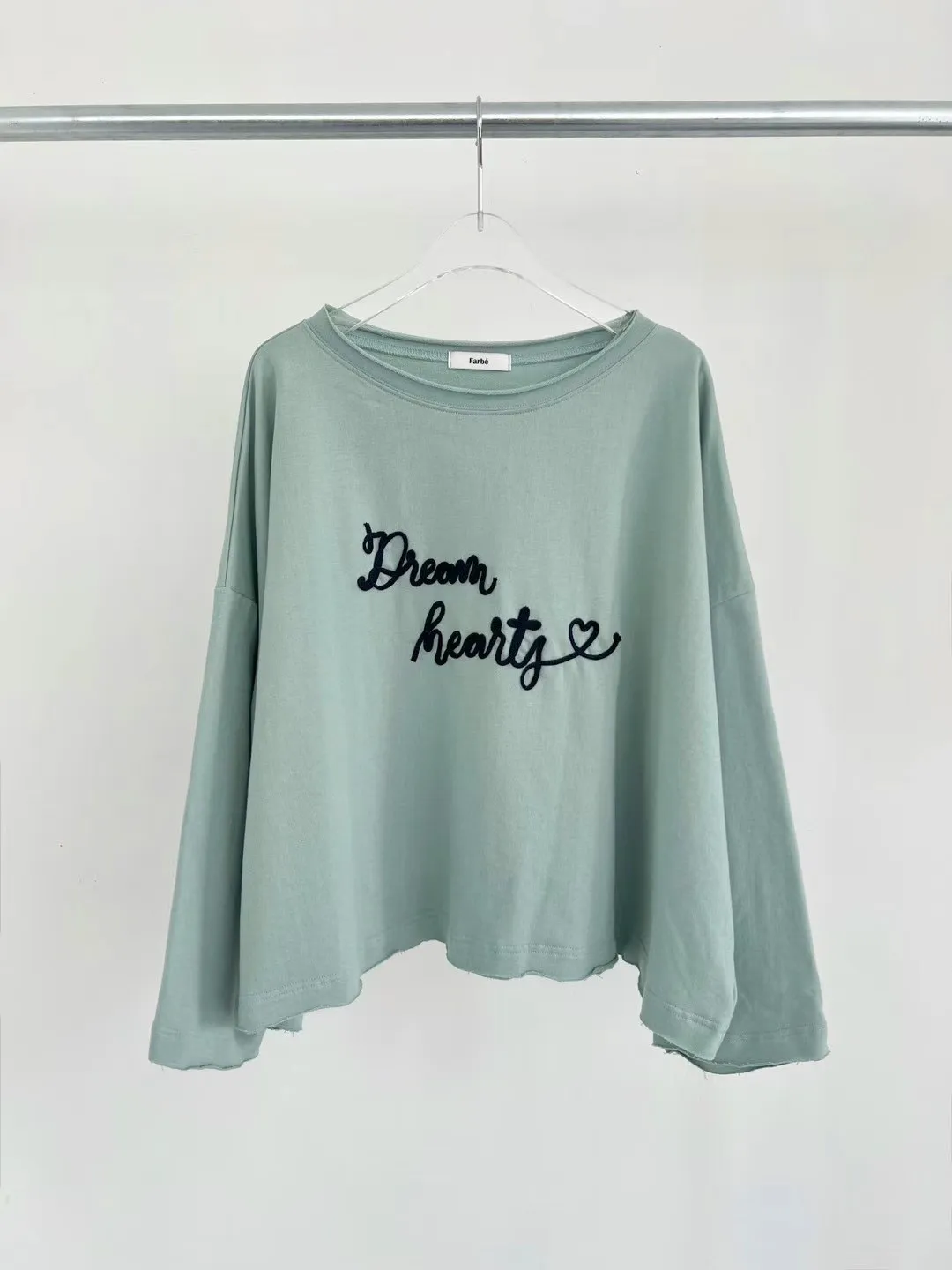 BS373不收邊寬領立體草寫英文上衣 灰 綠 官網價$950 線上價$920
