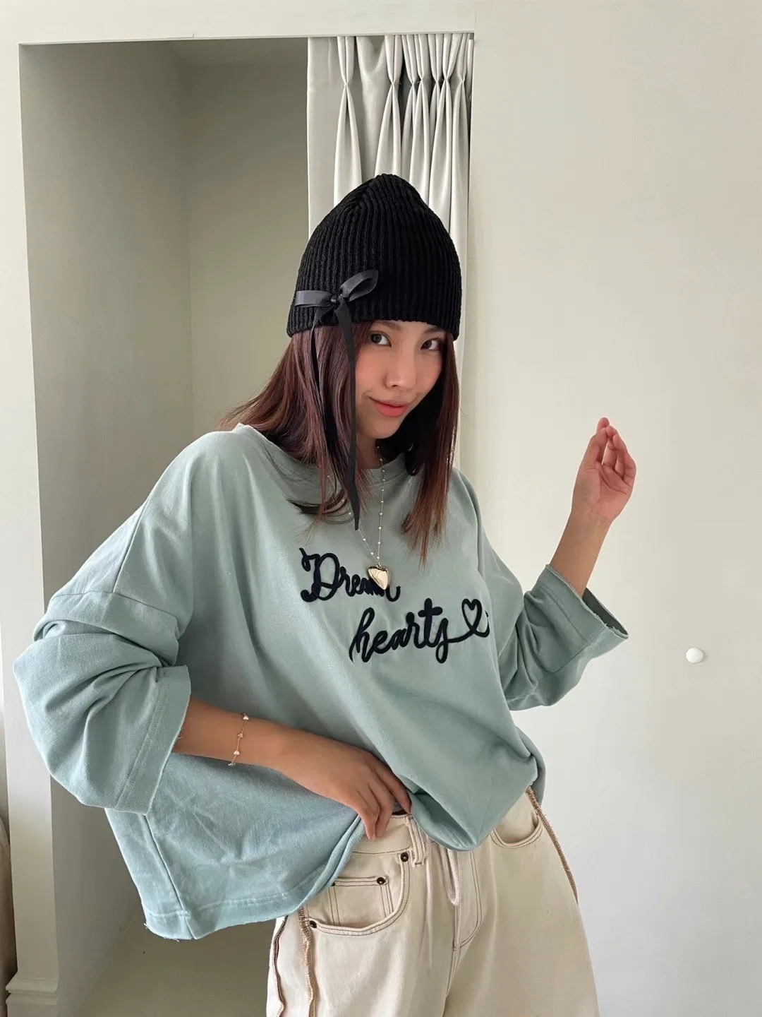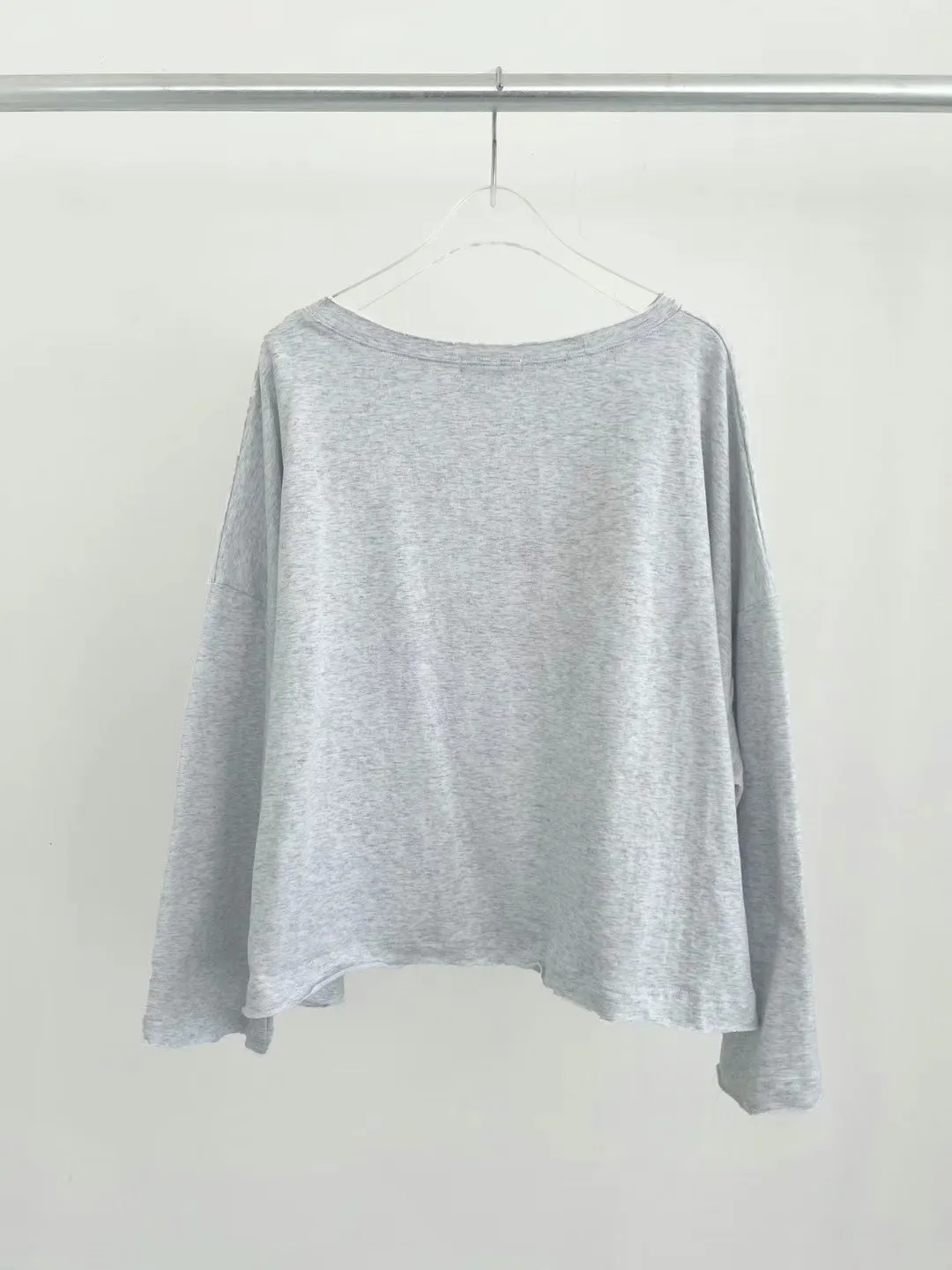 棉 薄款 親膚舒適無刷毛 不收邊袖口下擺微設計 落肩顯瘦 寬領可斜肩