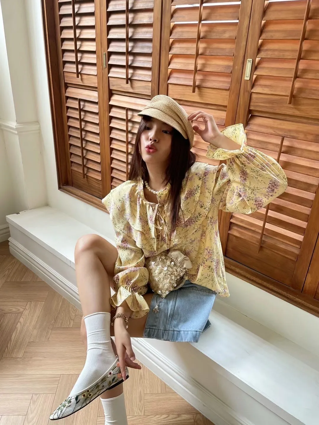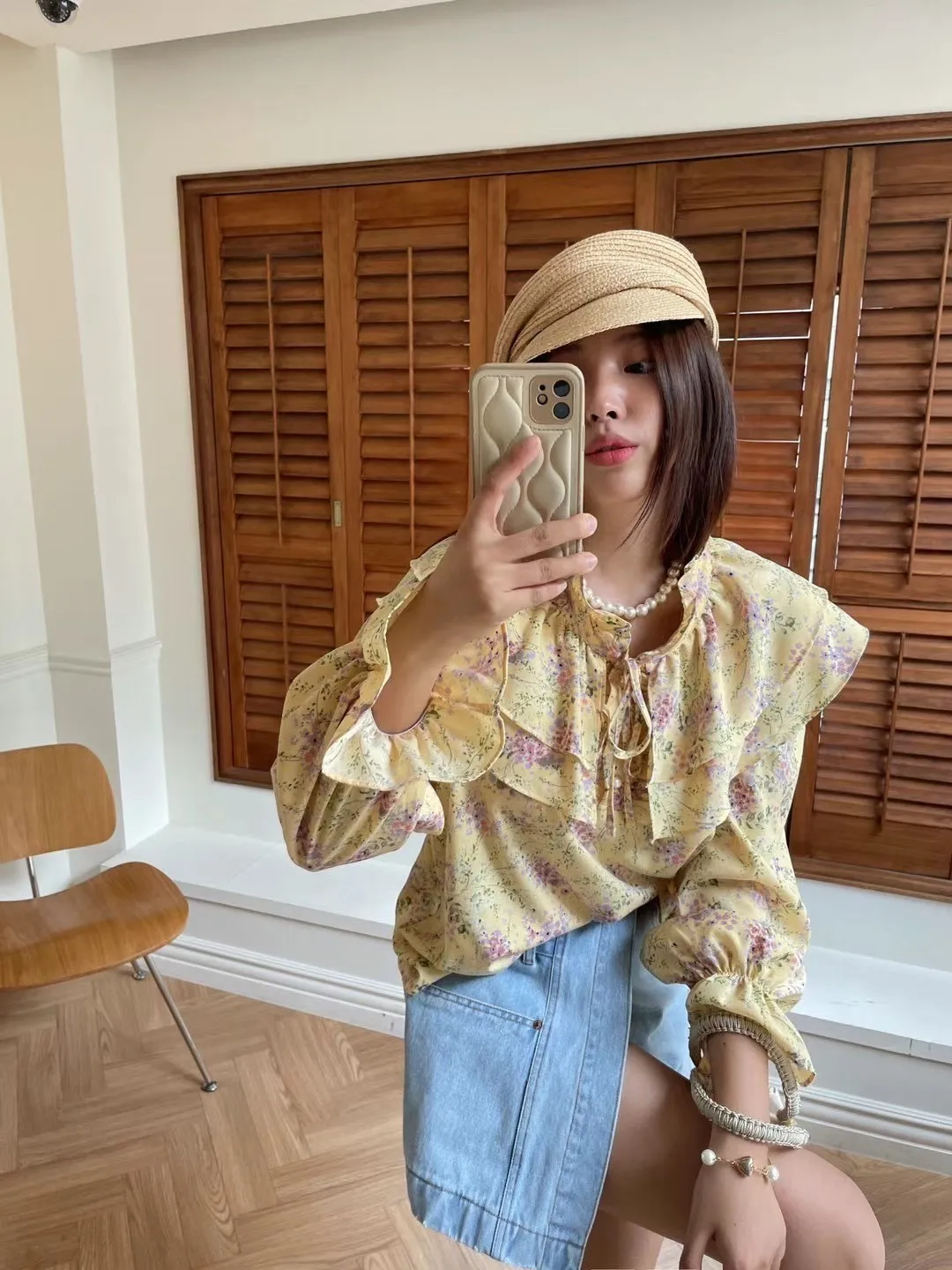 BS375碎花層次領輕盈美衣 白 黃 官網價$1280 線上價$1250