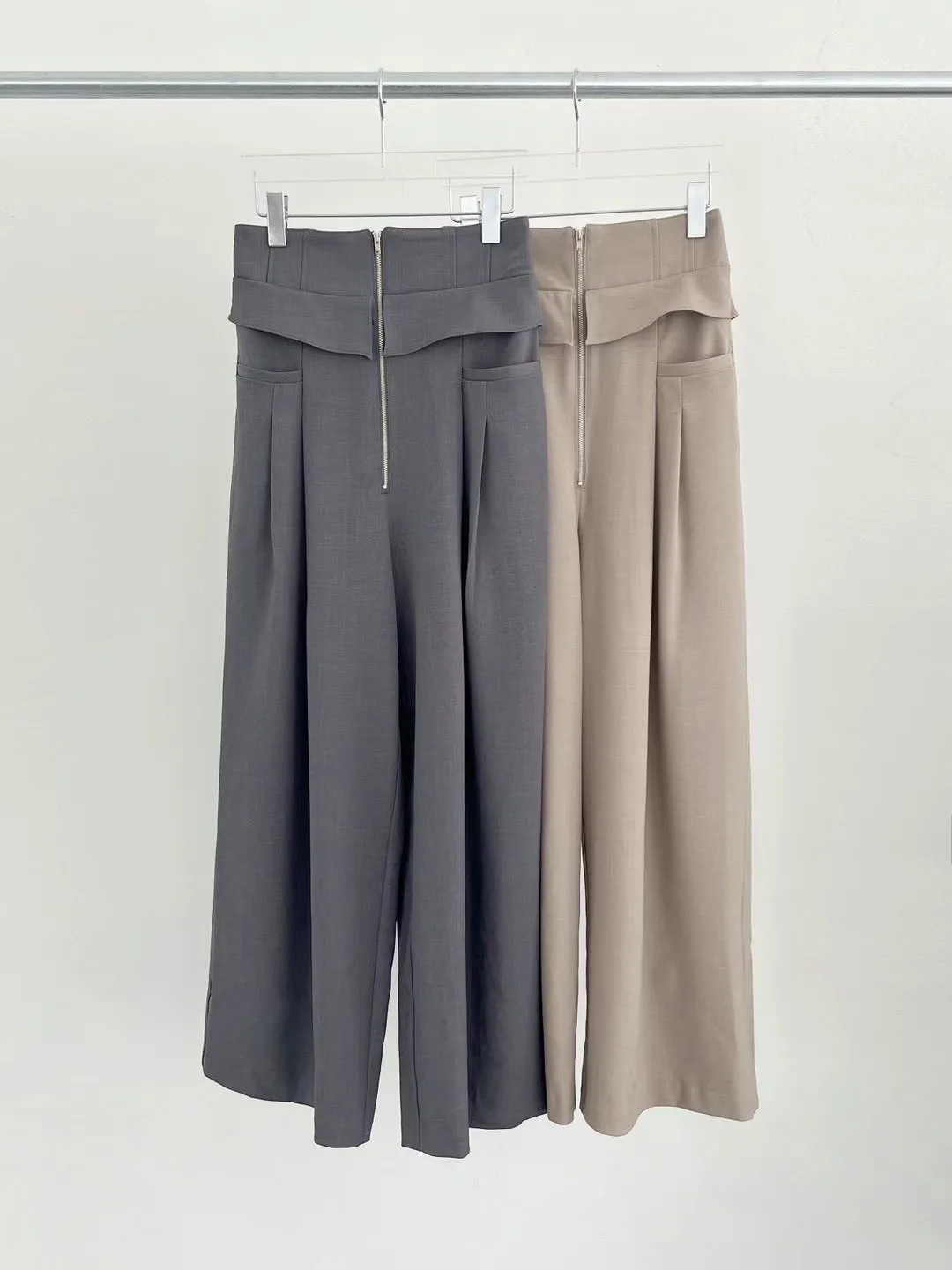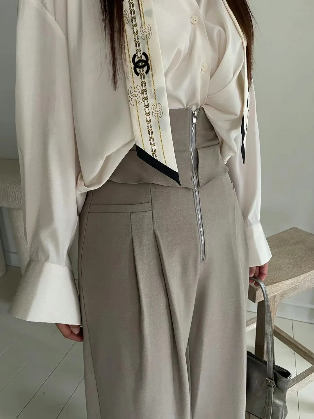 BS377雪紡翻腰設計垂墜感長褲 深灰 淺咖 官網價$1420 線上價$1390