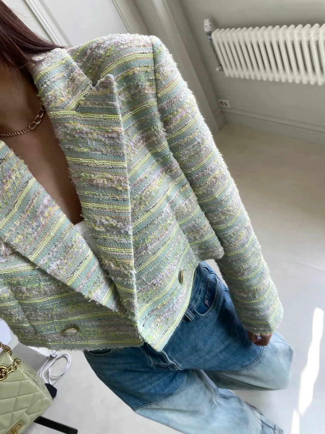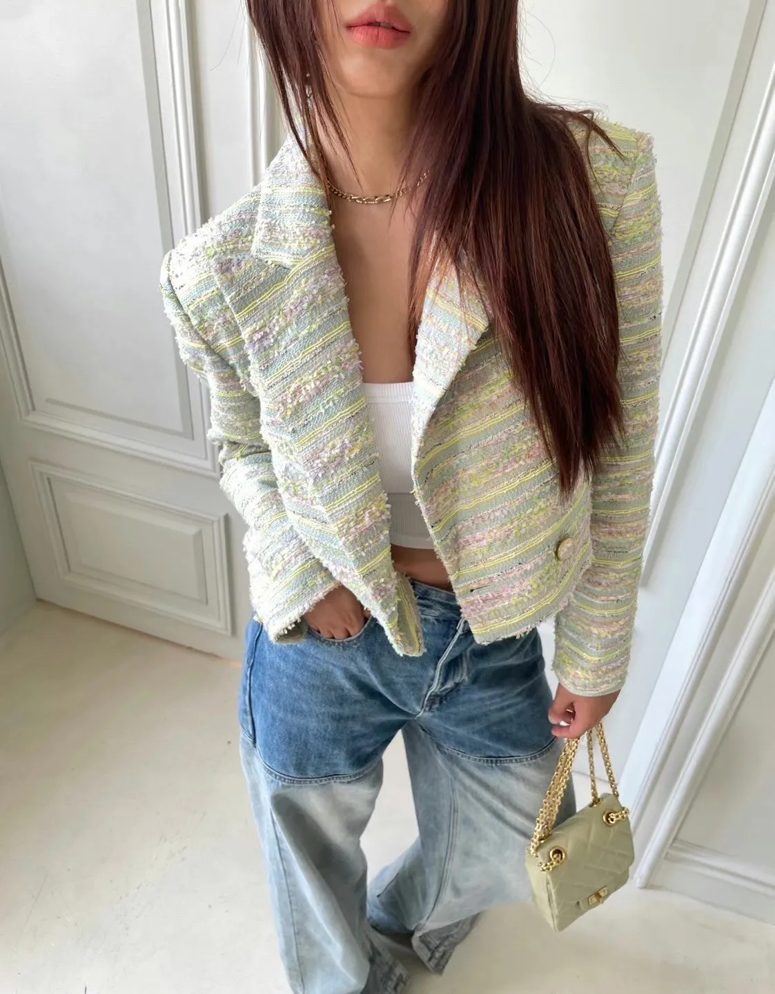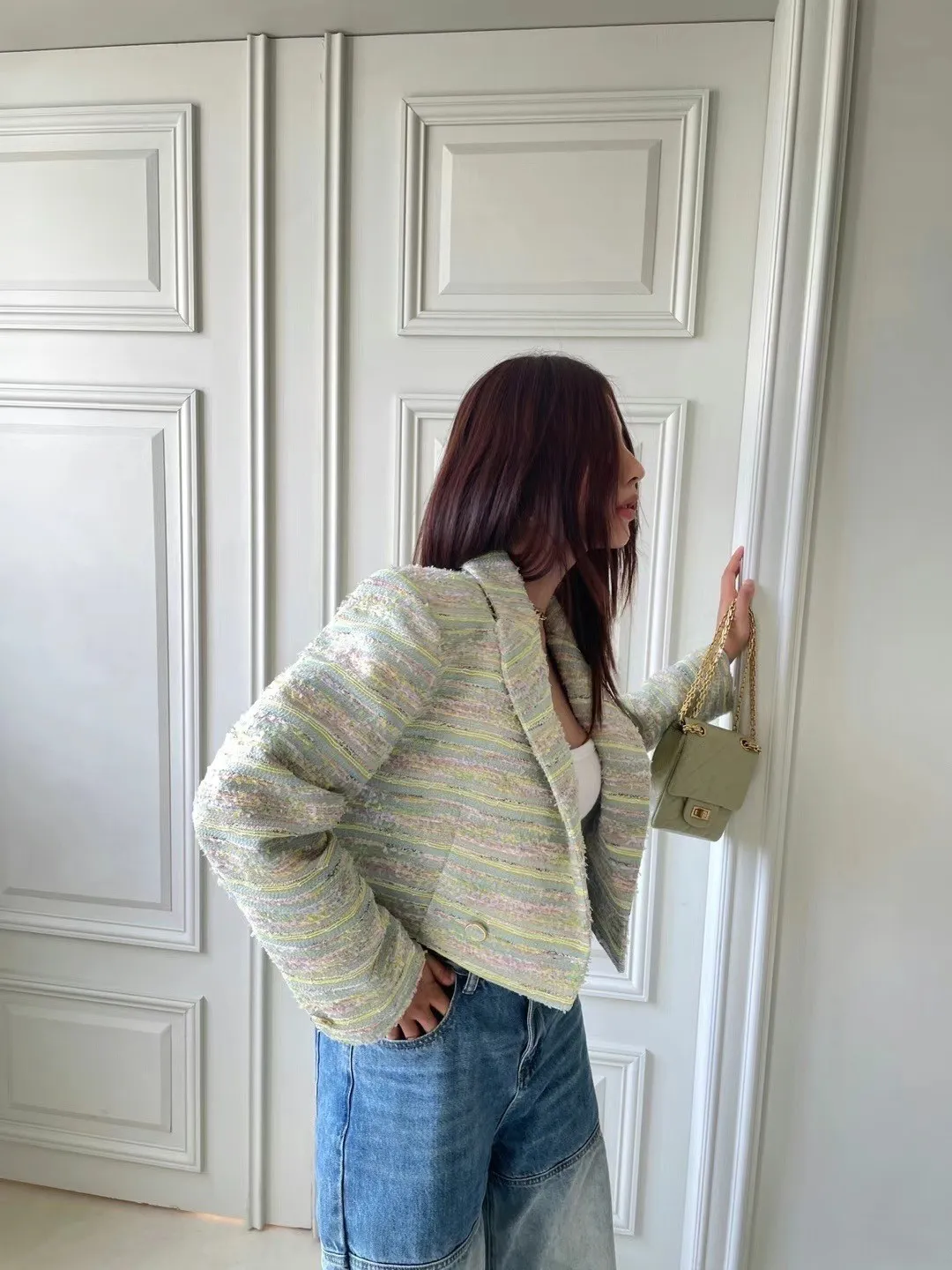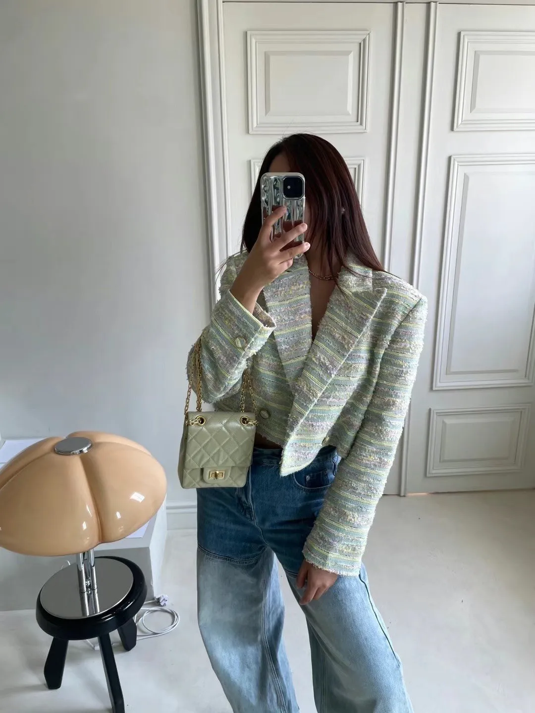 BS379潮流色調小香風短版外套 綠 藍 官網價$1770 線上價$1740