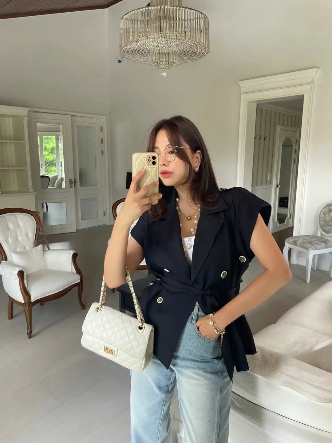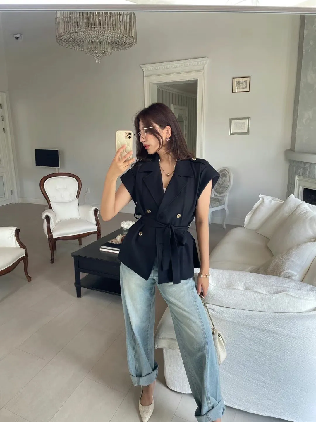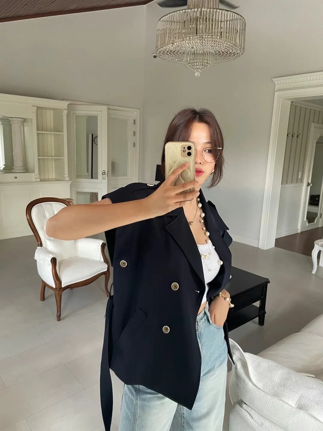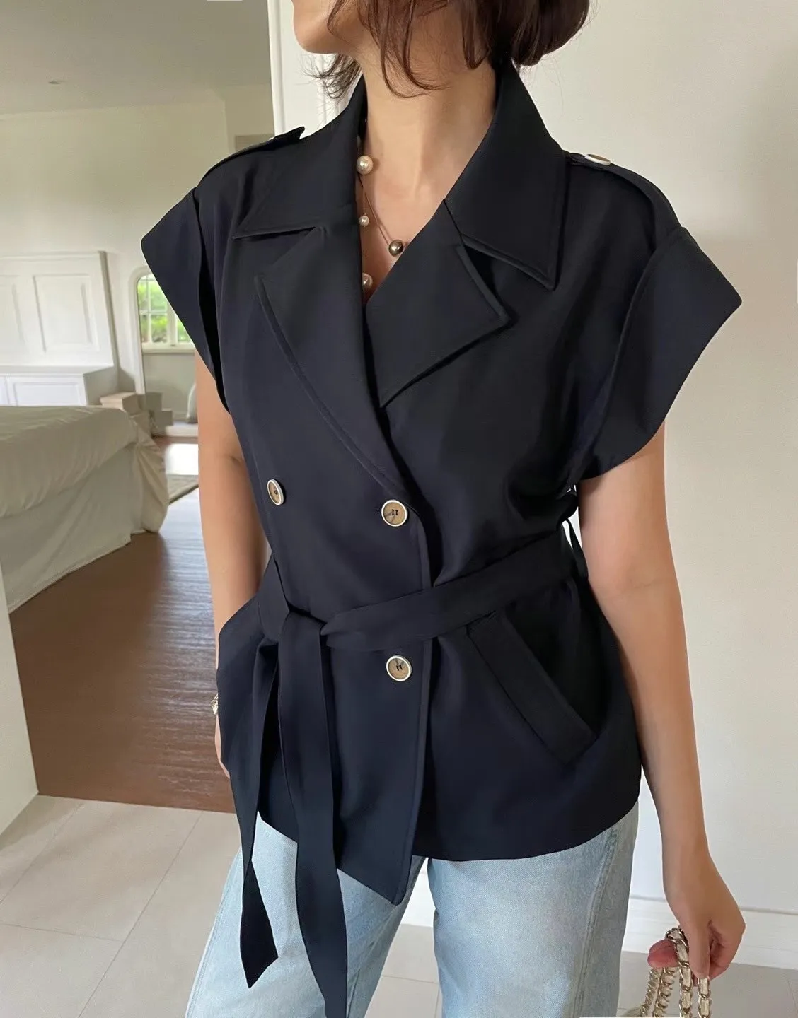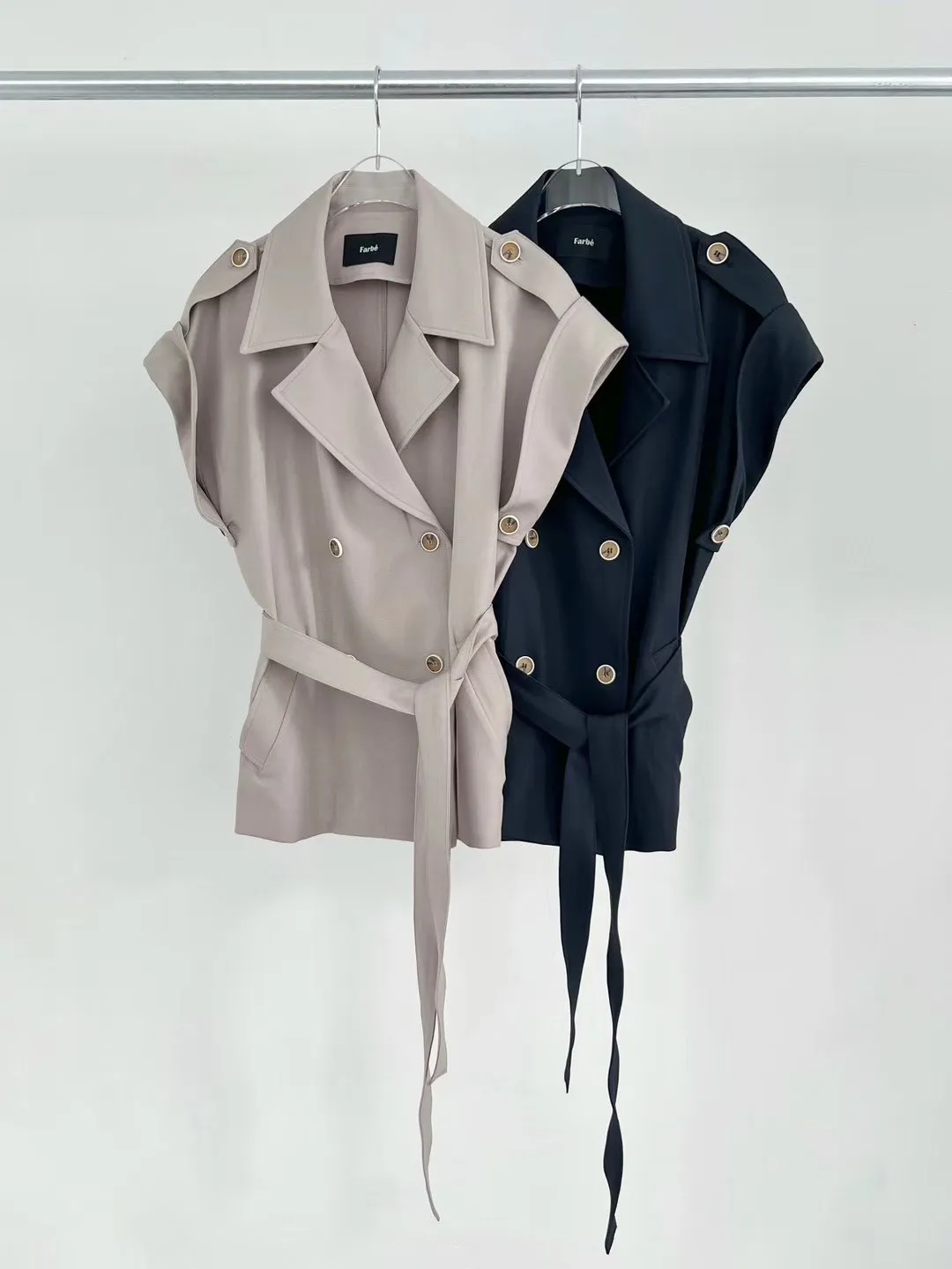 BS382巴黎街頭微袖風衣背心 可可 深藍 官網價$1860 線上價$1830