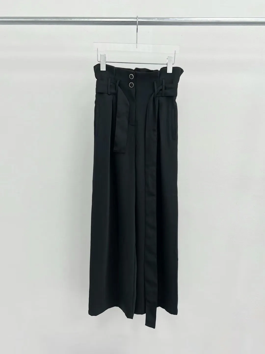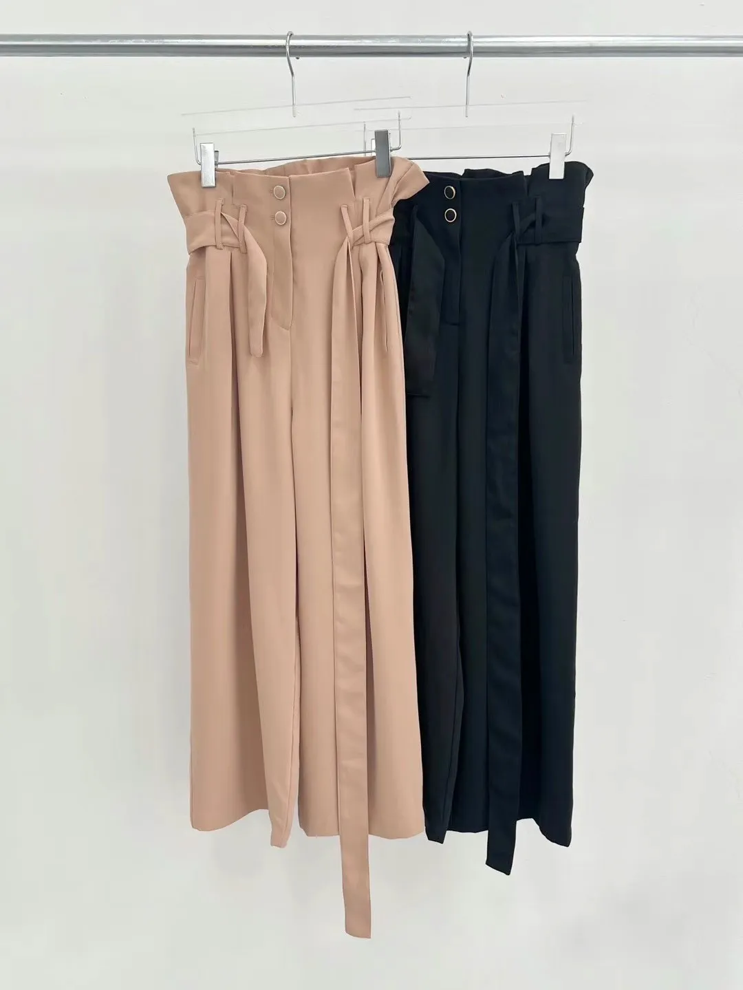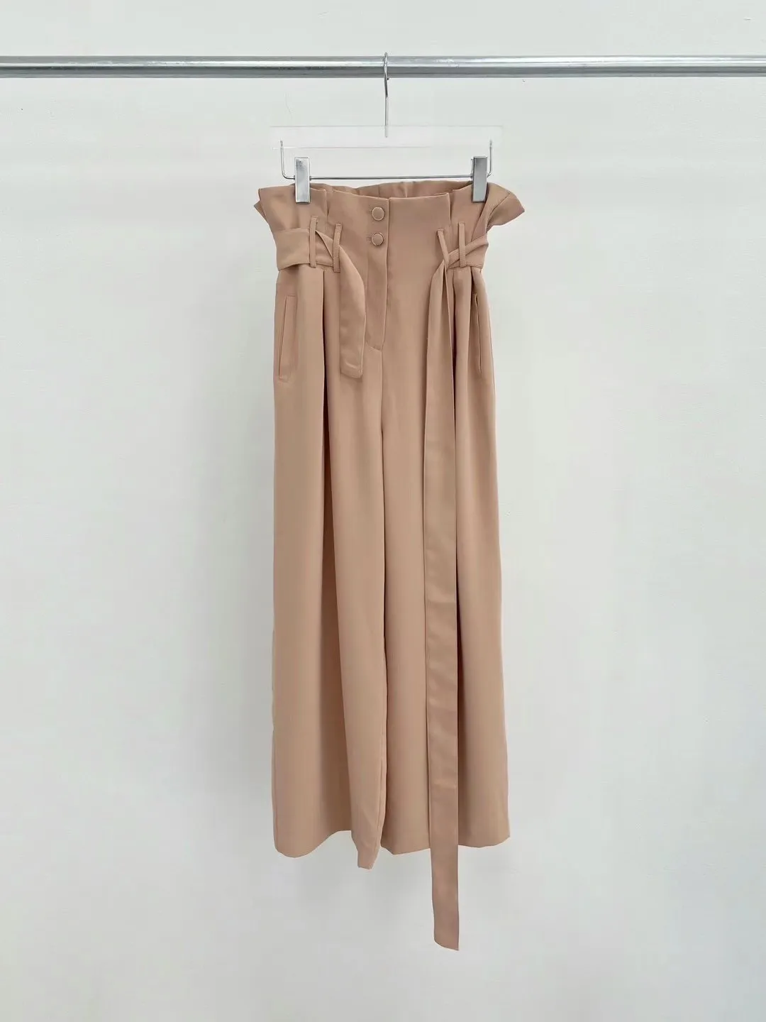雪紡 腰鬆緊有綁帶 釦鍊穿脫 花苞高腰 有口袋 垂墜直腿感