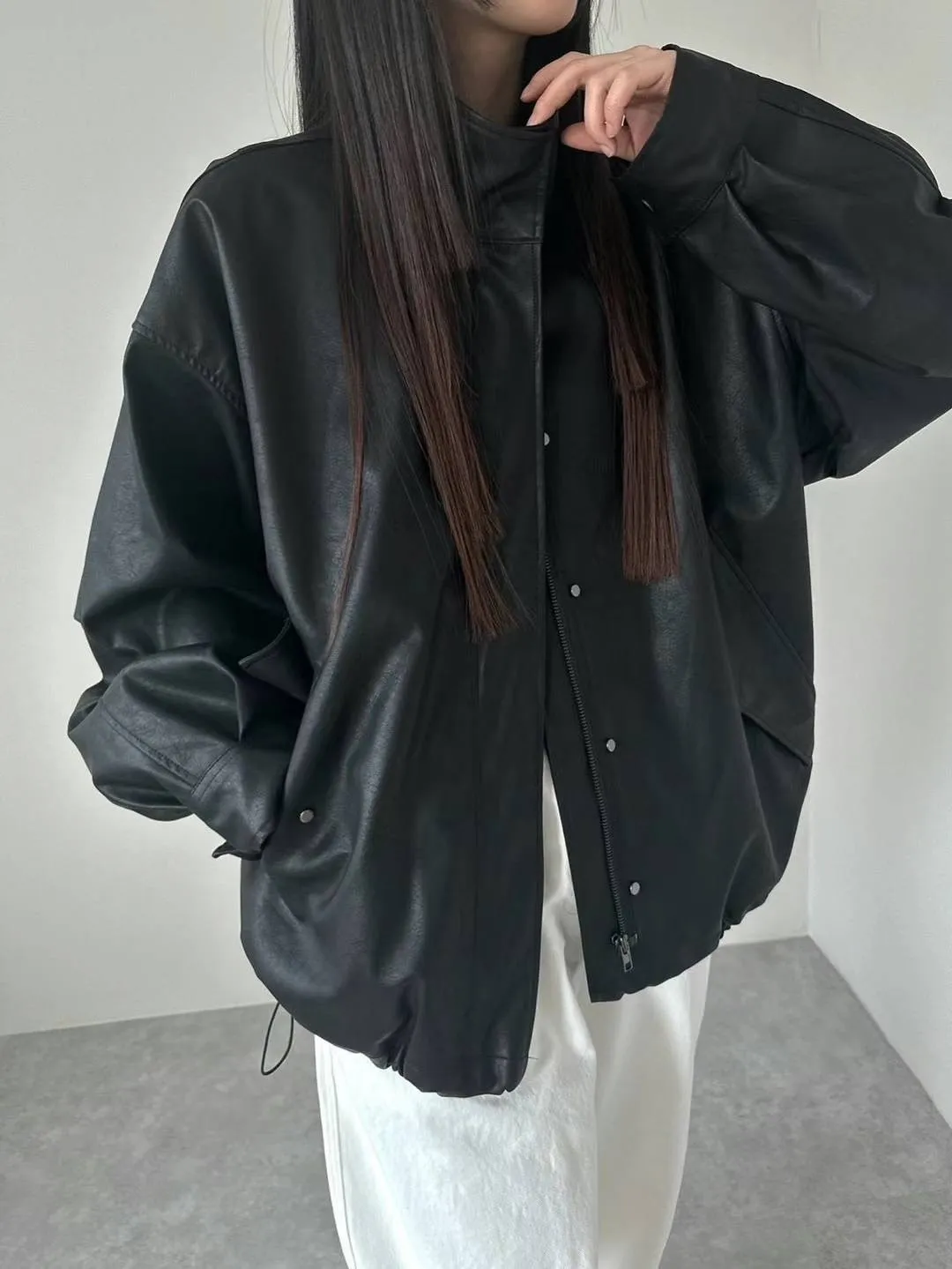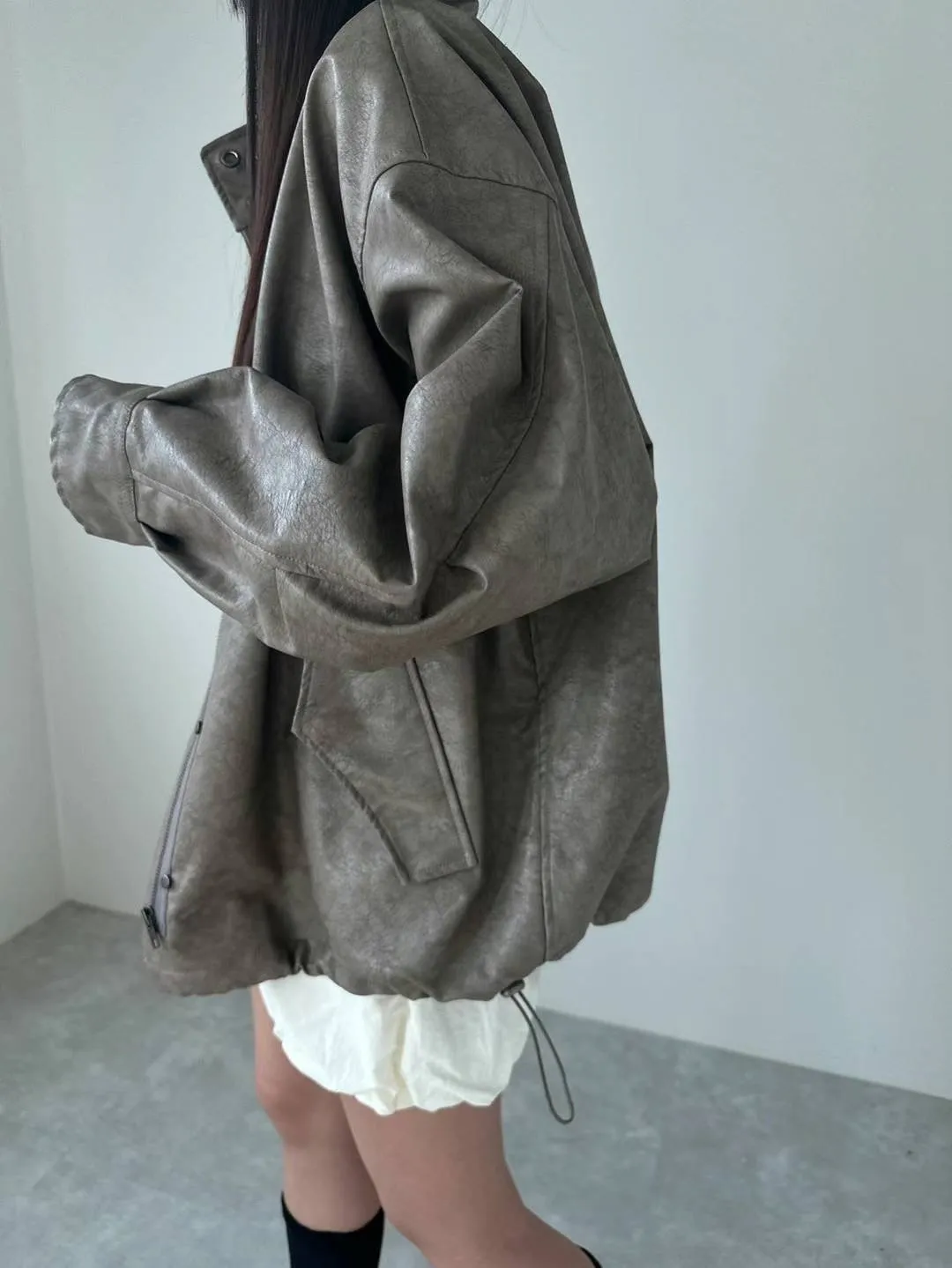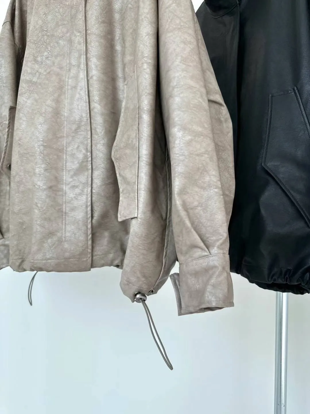 合成皮革 秋款釦穿脫 側腰抽繩 袖口釦 有內理有口袋