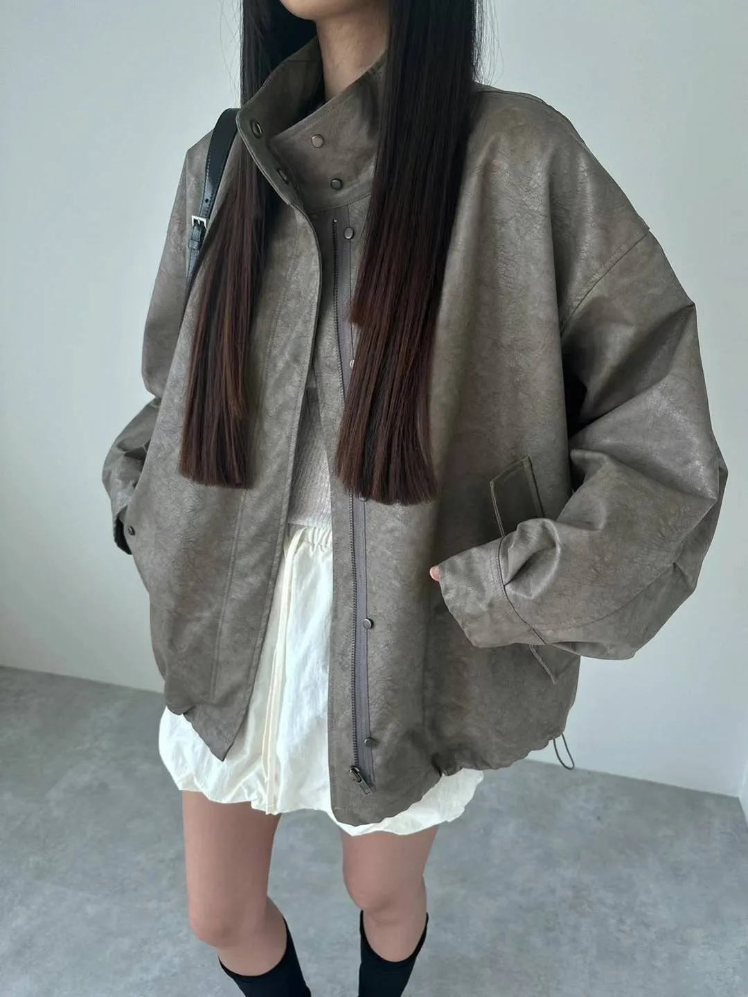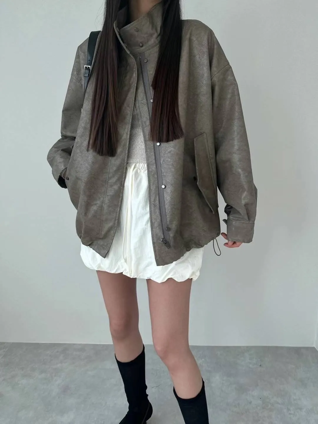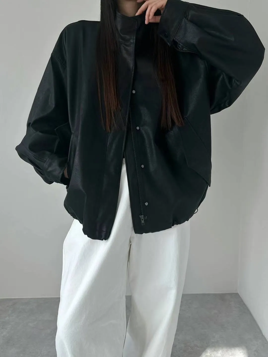 合成皮革 秋款釦穿脫 側腰抽繩 袖口釦 有內理有口袋