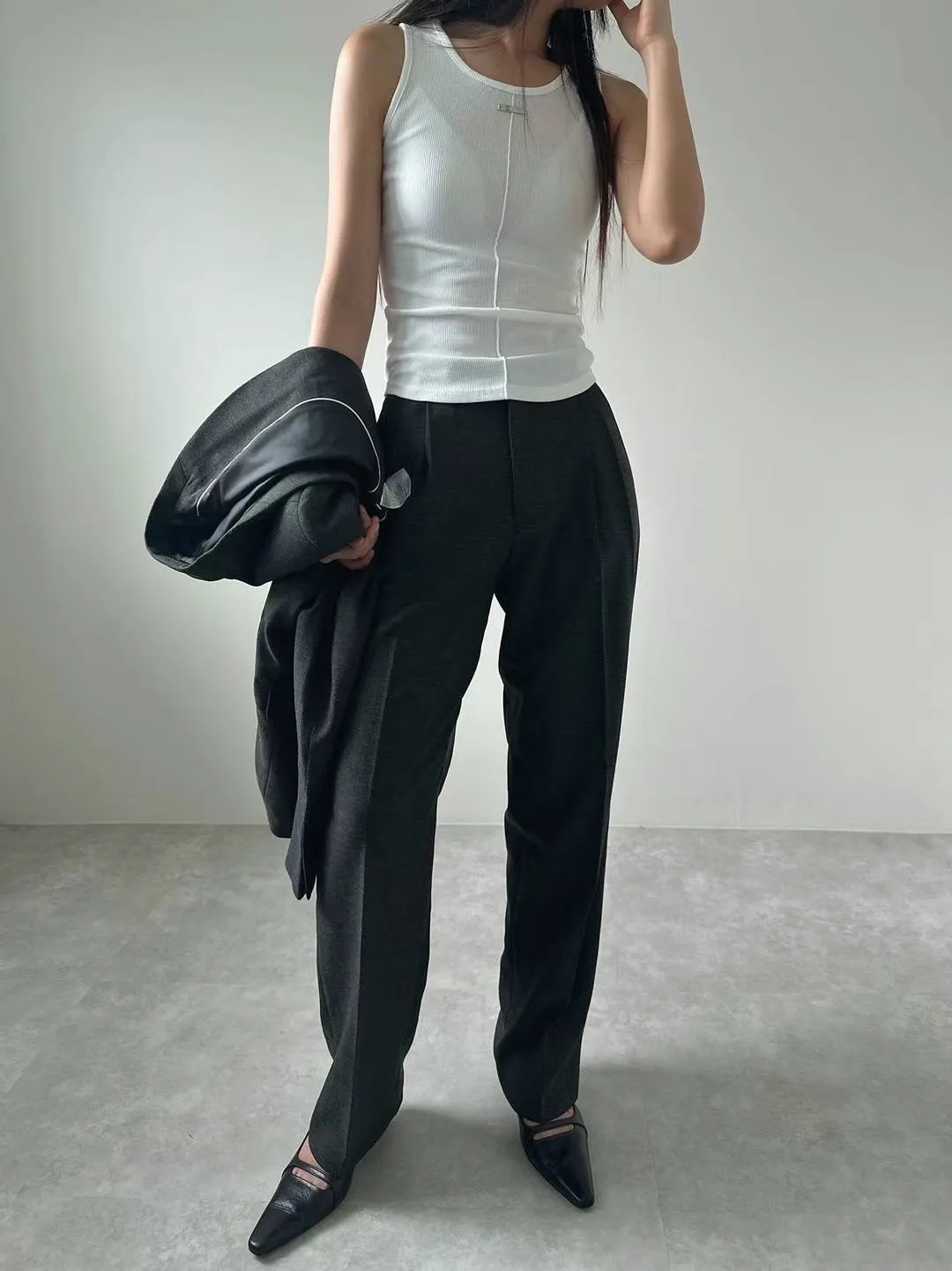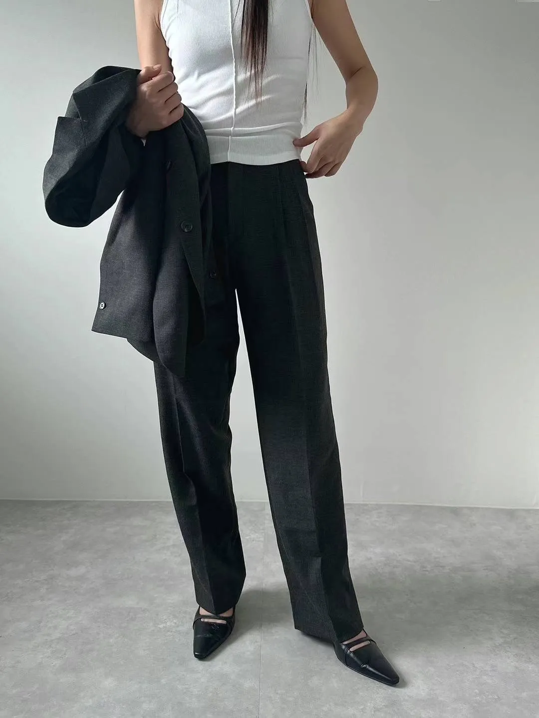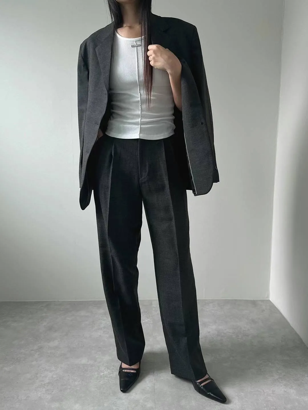 西裝面料+縲縈 藏釦鍊穿脫 有口袋 小直筒