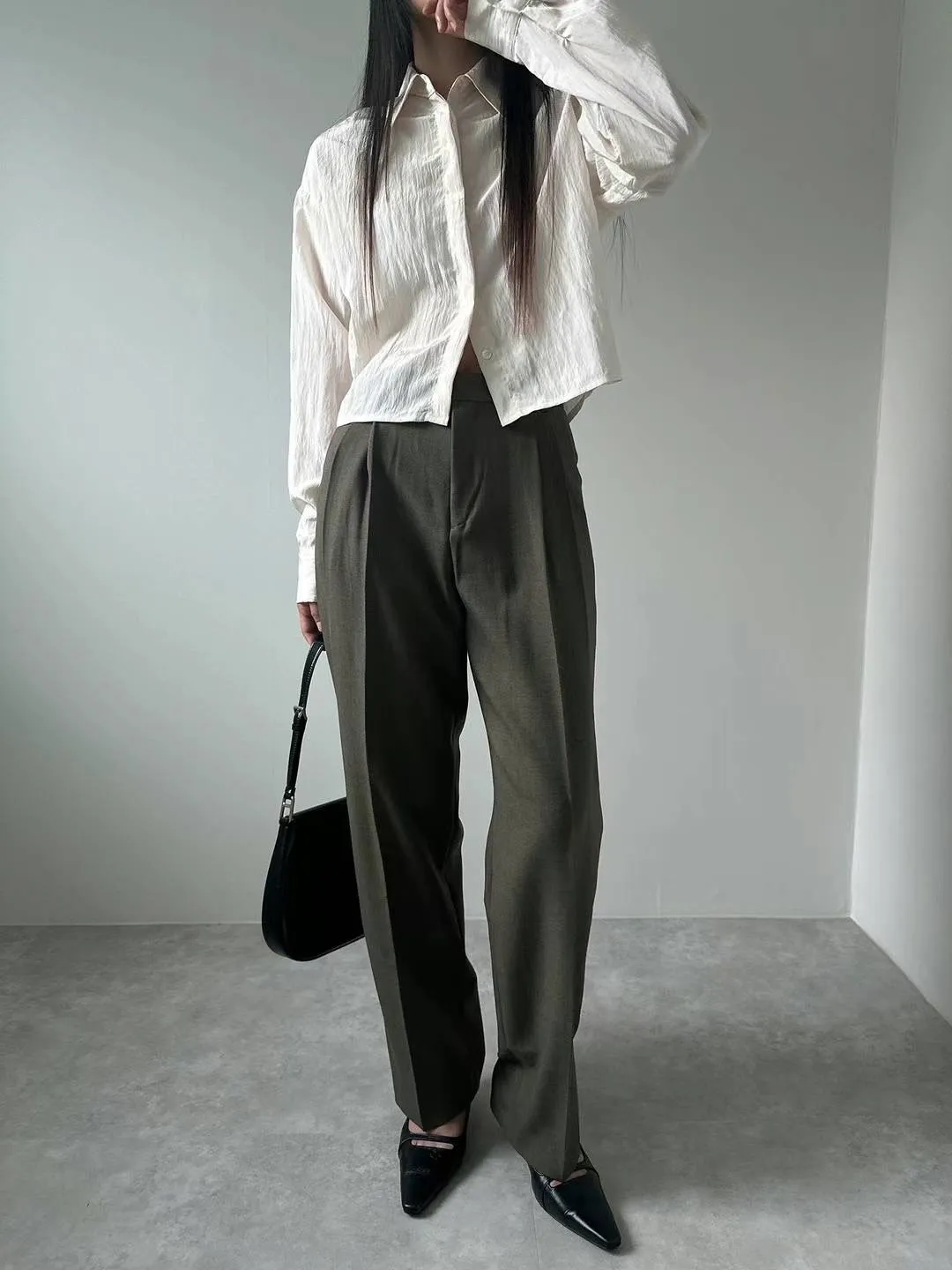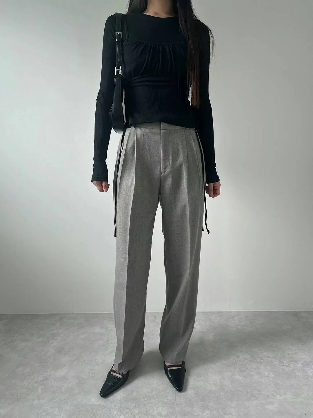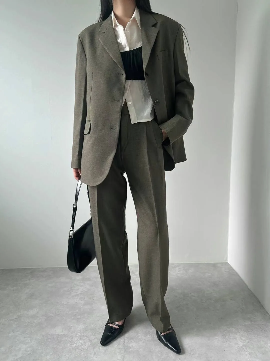 西裝面料+縲縈 藏釦鍊穿脫 有口袋 小直筒